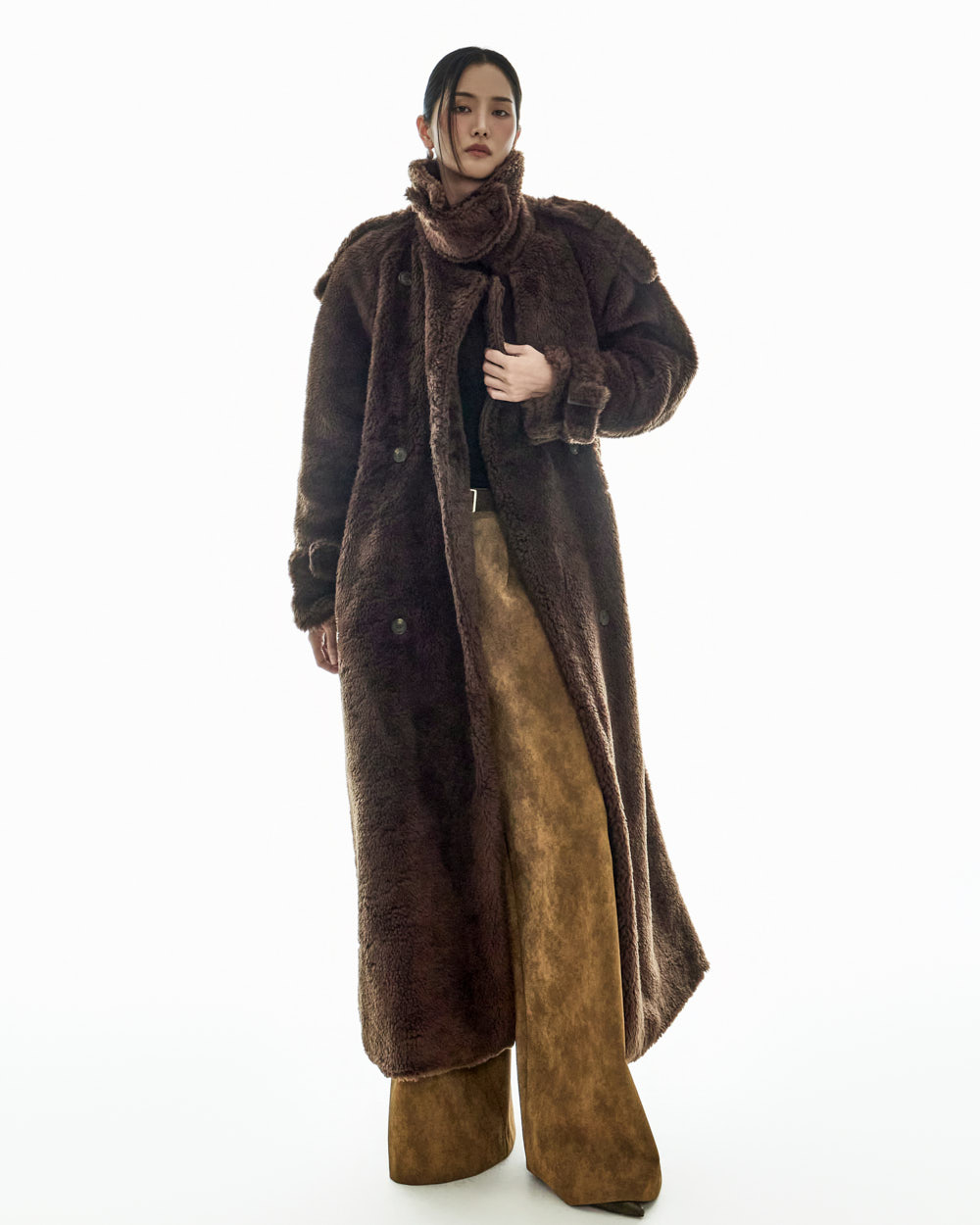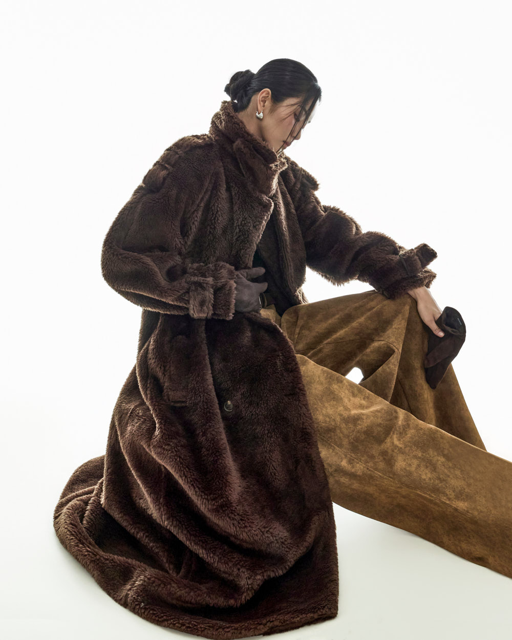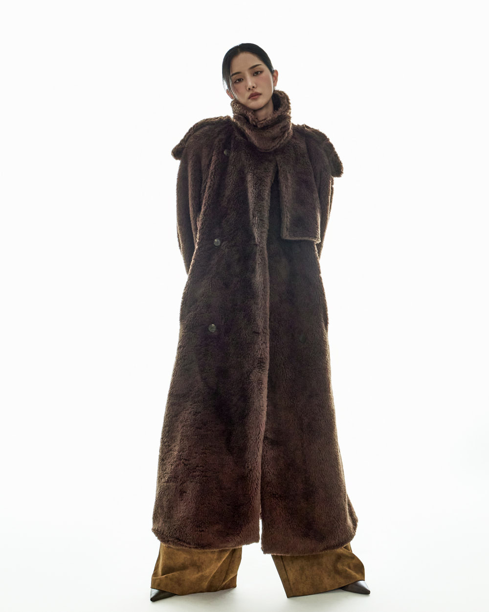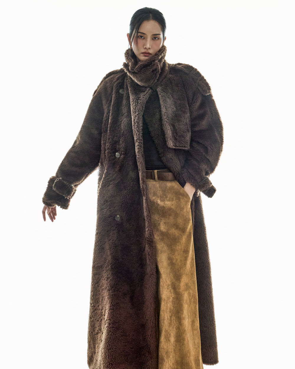 173CM 模特穿着 ONE 尺码,DARK BROWN 颜色。