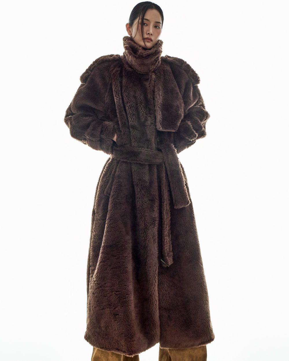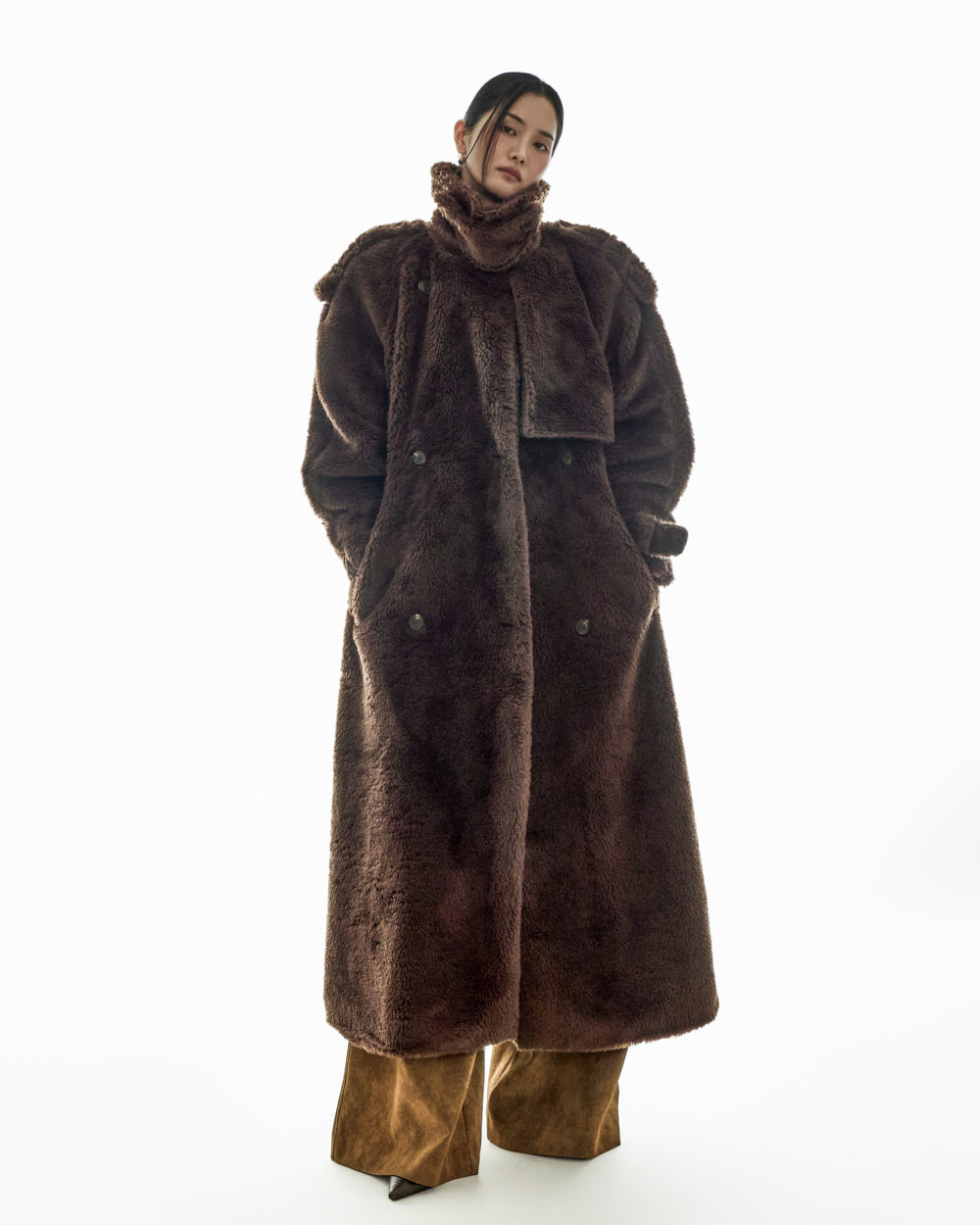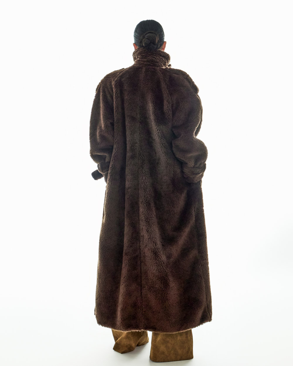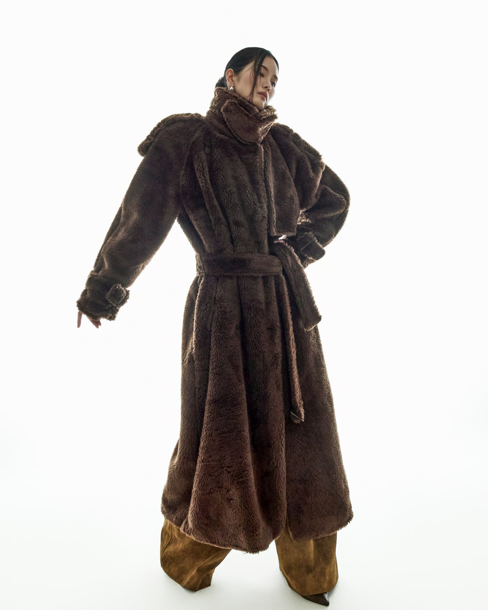 173CM 模特穿着 ONE 尺码,DARK BROWN 颜色。