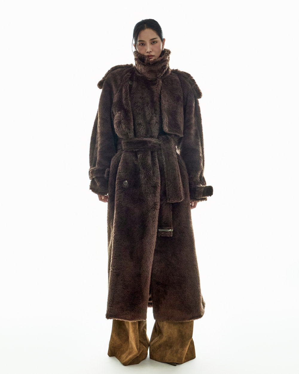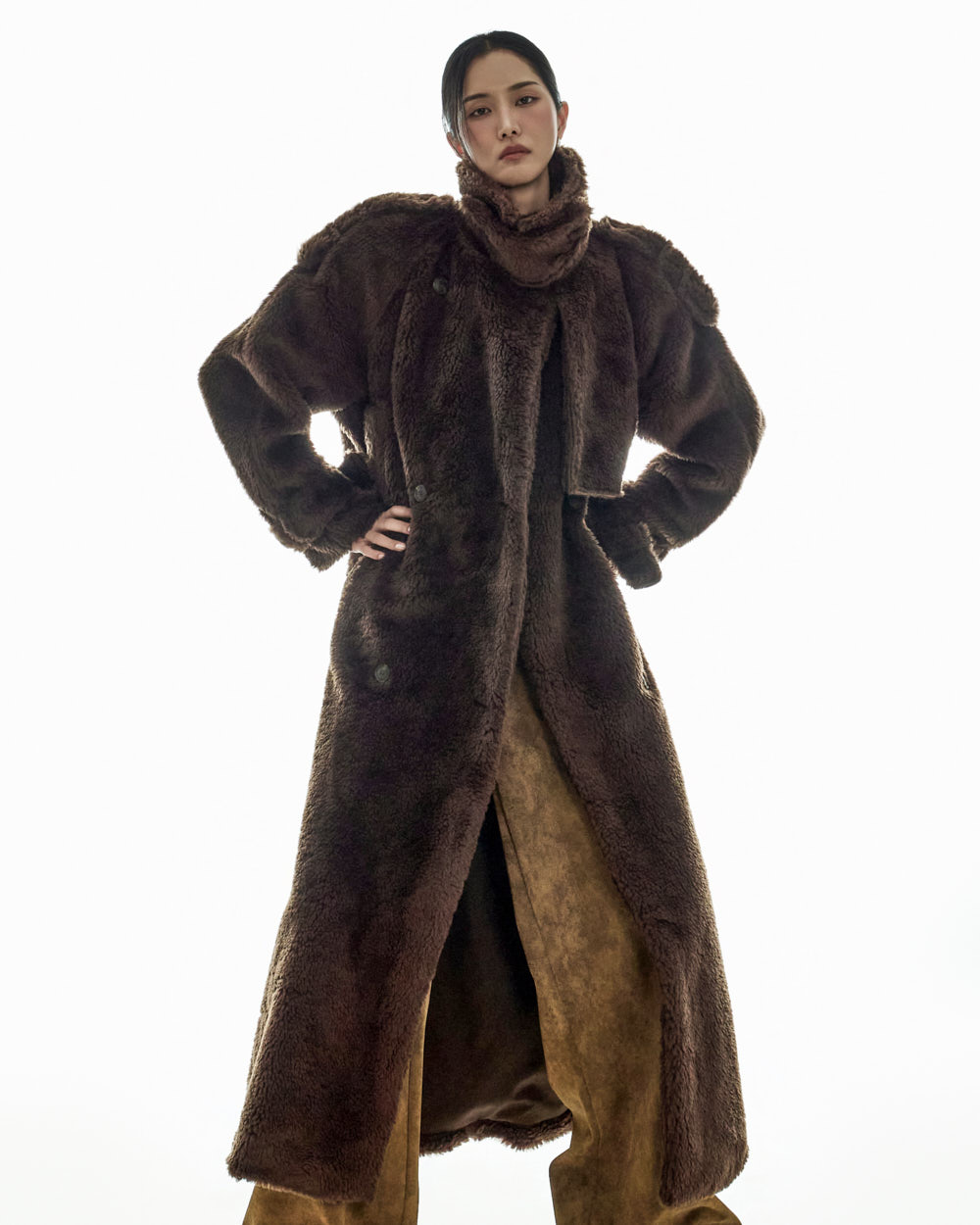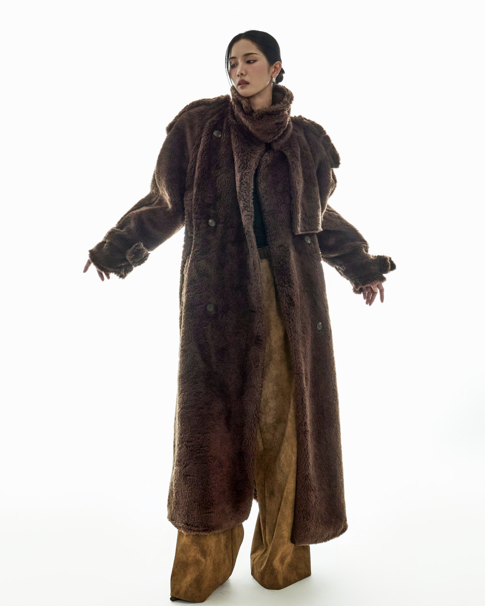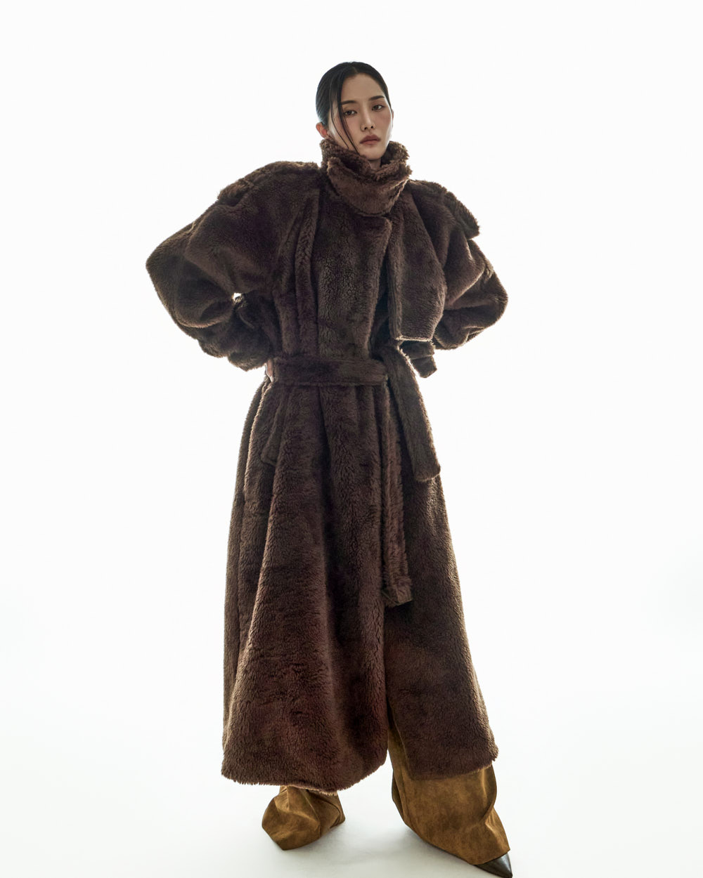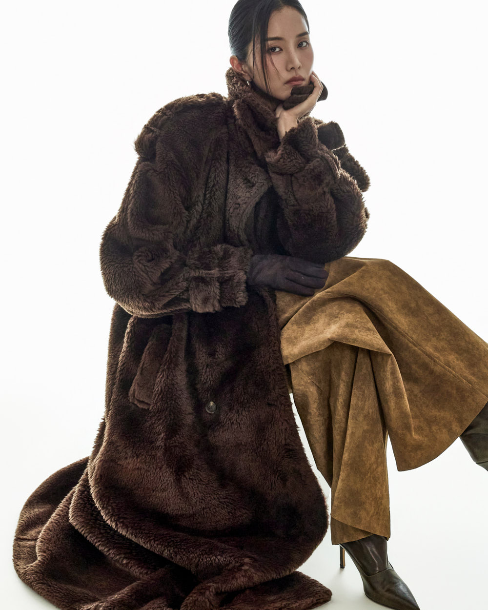 173CM 模特穿着 ONE 尺码,DARK BROWN 颜色。