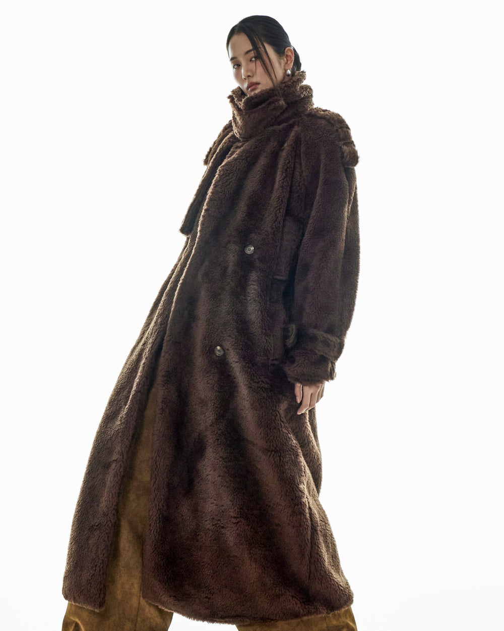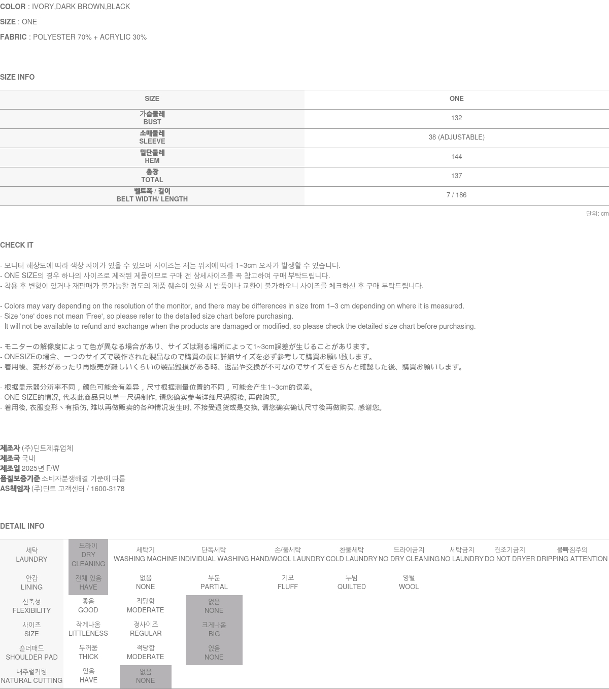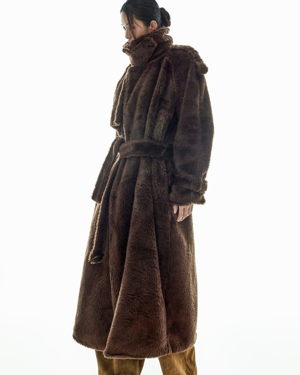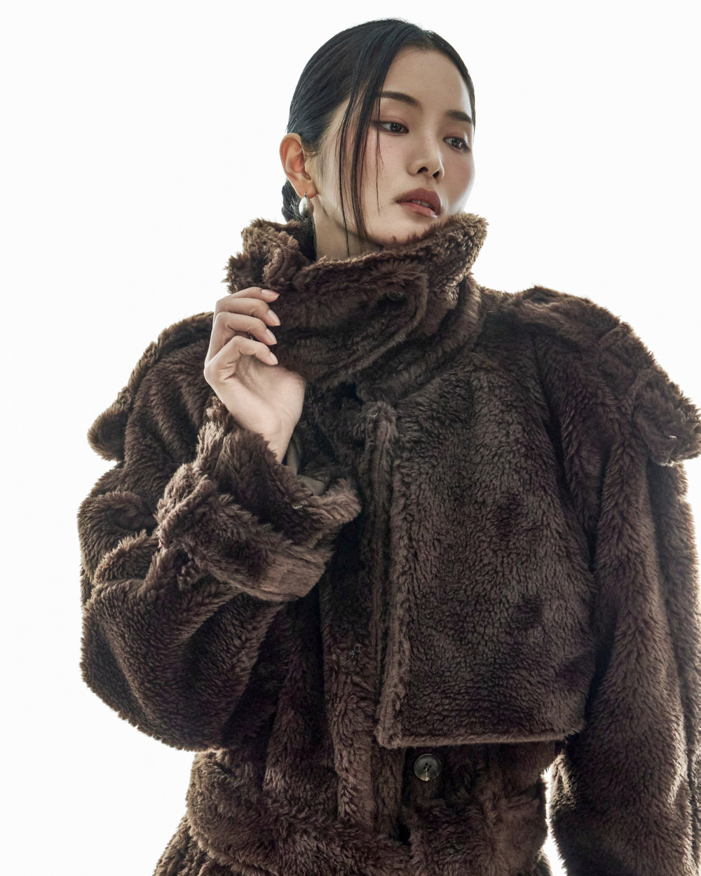 173CM 模特穿着 ONE 尺码,DARK BROWN 颜色。