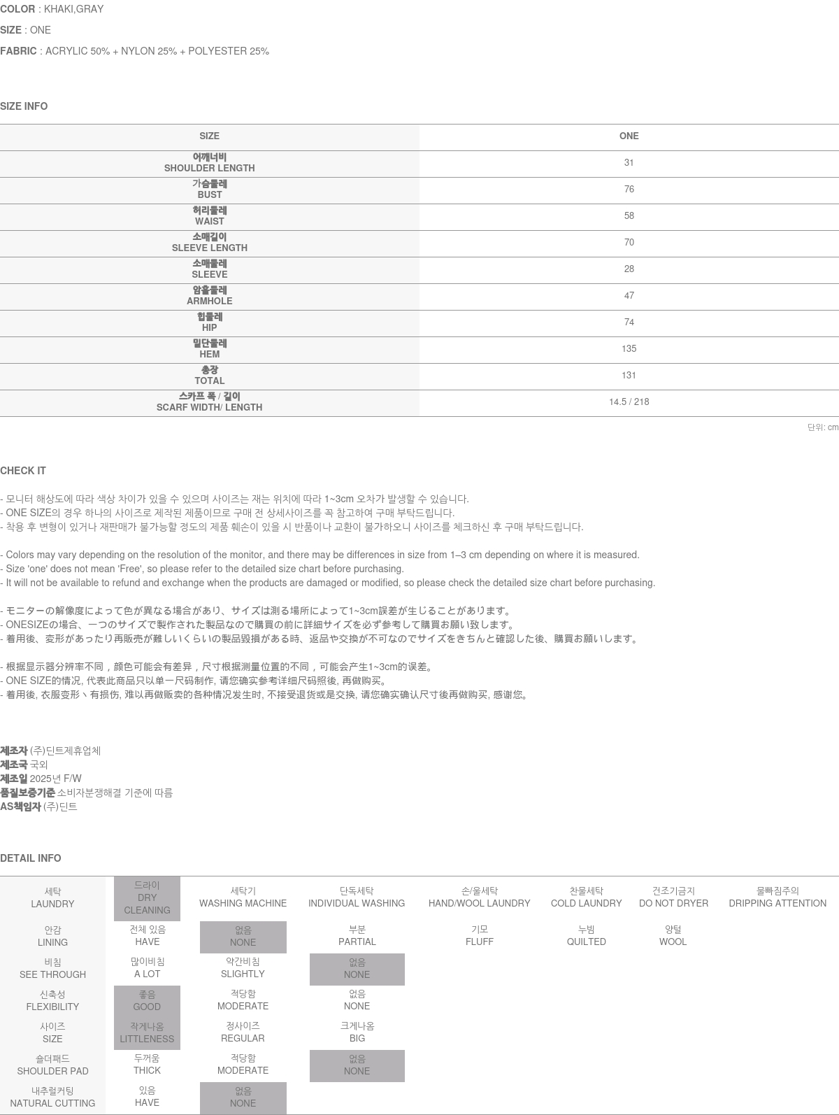 • DINT的所有商品, 使用一般洗滌或是烘乾機, 皆有可能成爲變形或是商品損傷的原因, 建議您使用乾洗.