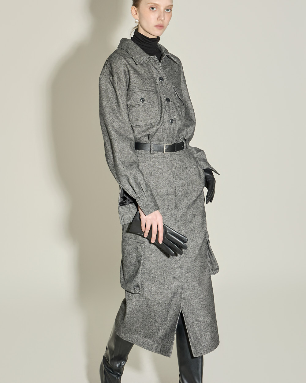在端庄沉稳的整体氛围中融入工装口袋细节,