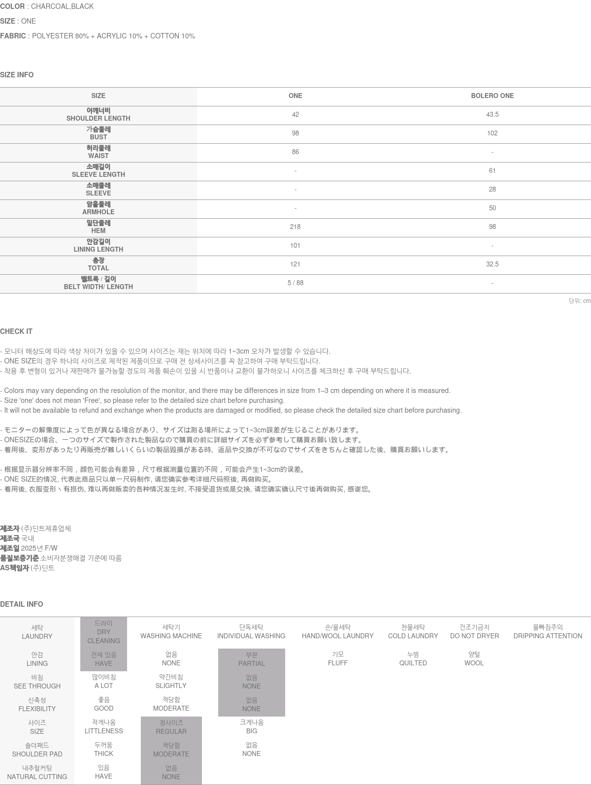 174CM 模特穿着 ONE 尺码,CHARCOAL 颜色。