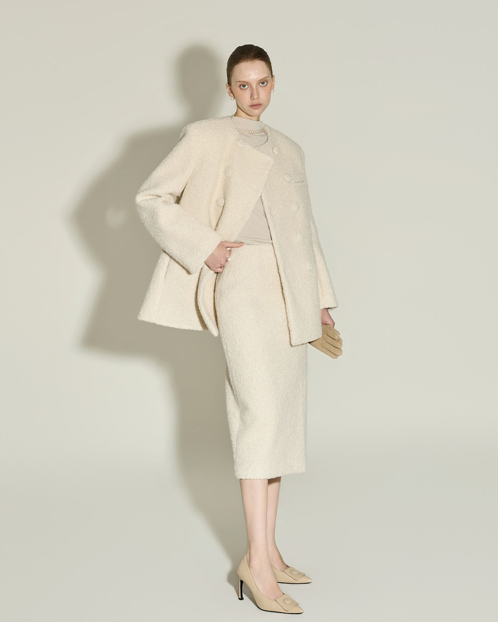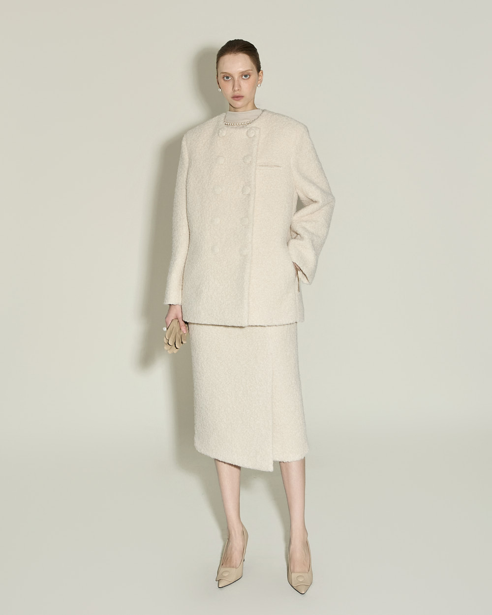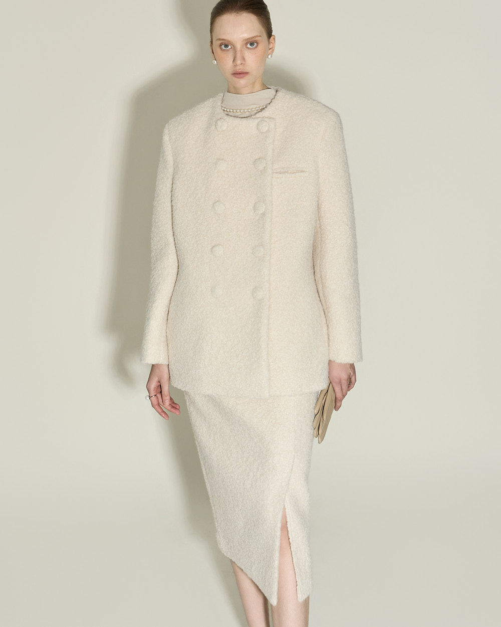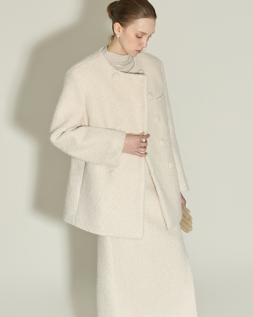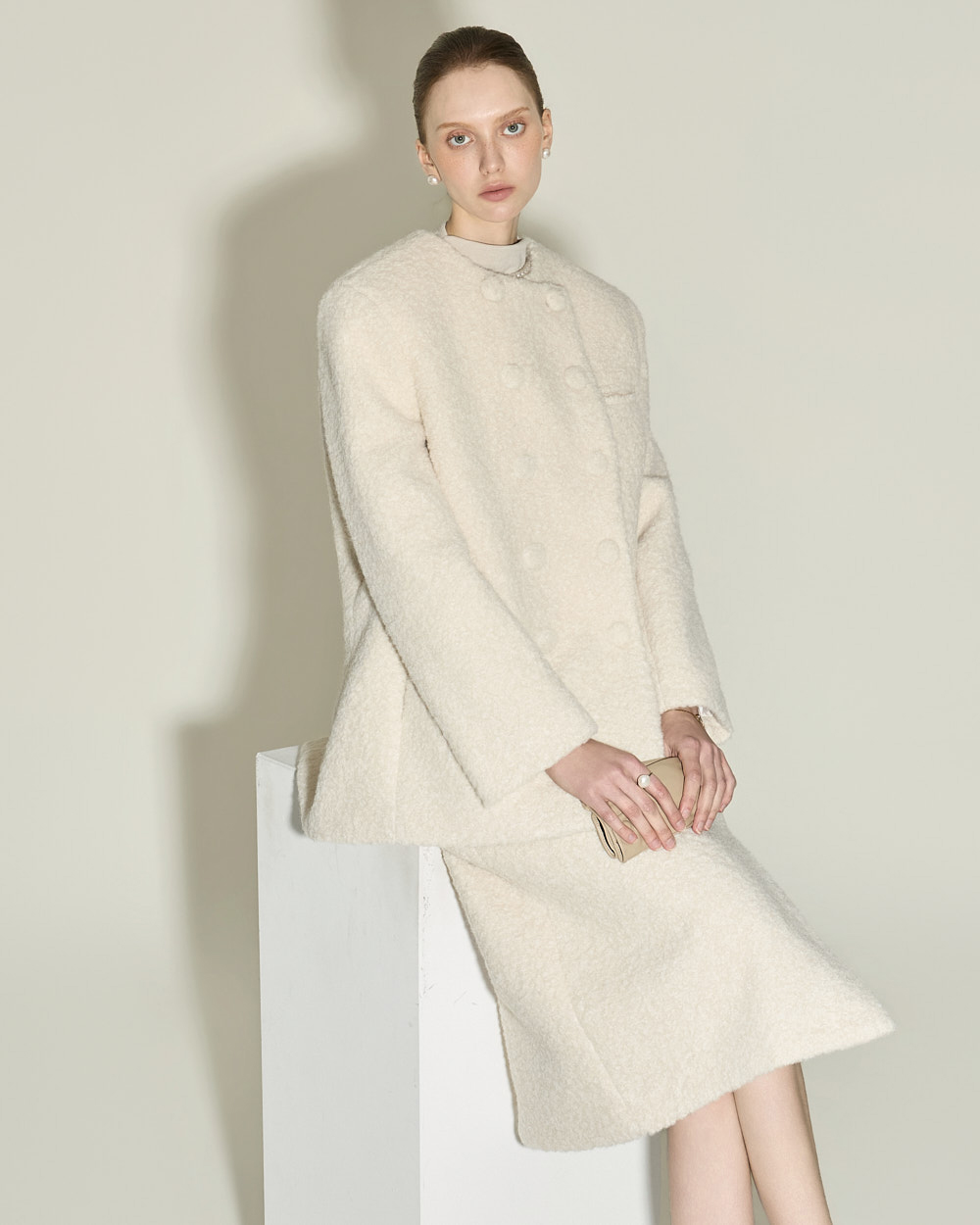 174CM 模特穿着 ONE 尺码,IVORY 颜色。