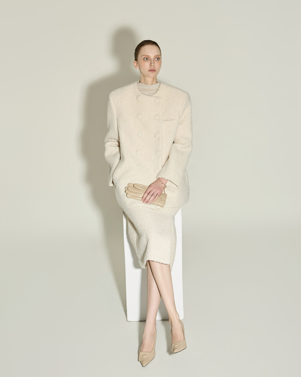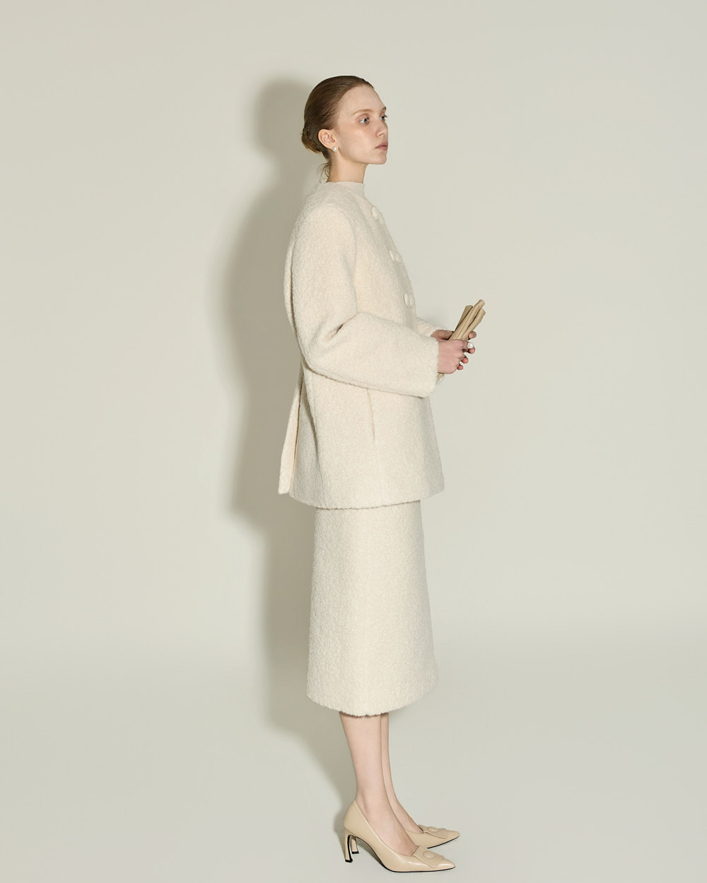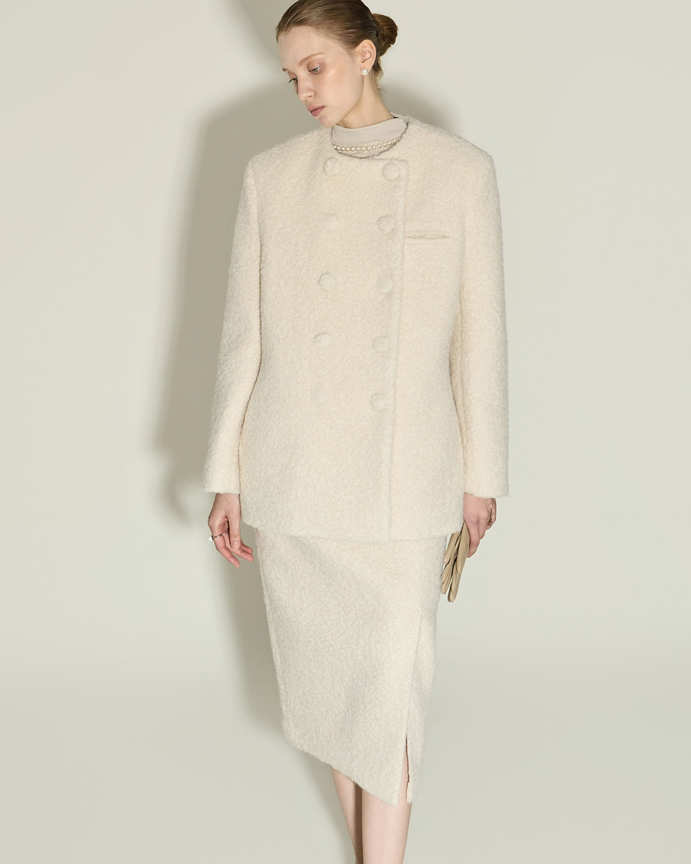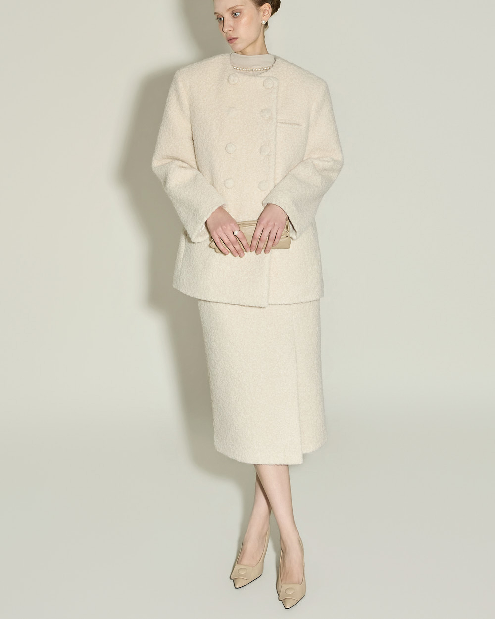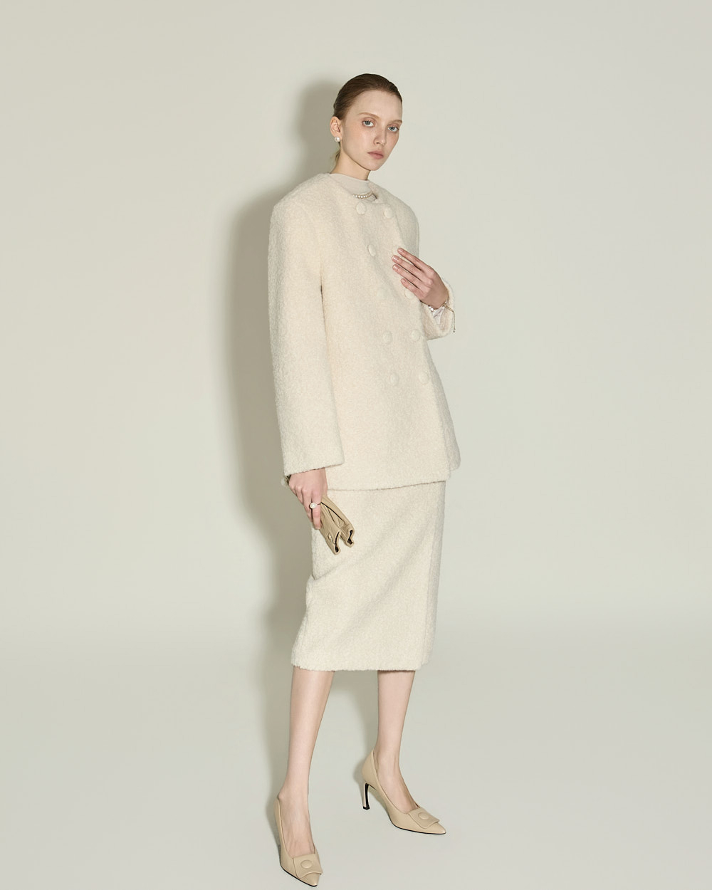 174CM 模特穿着 ONE 尺码,IVORY 颜色。