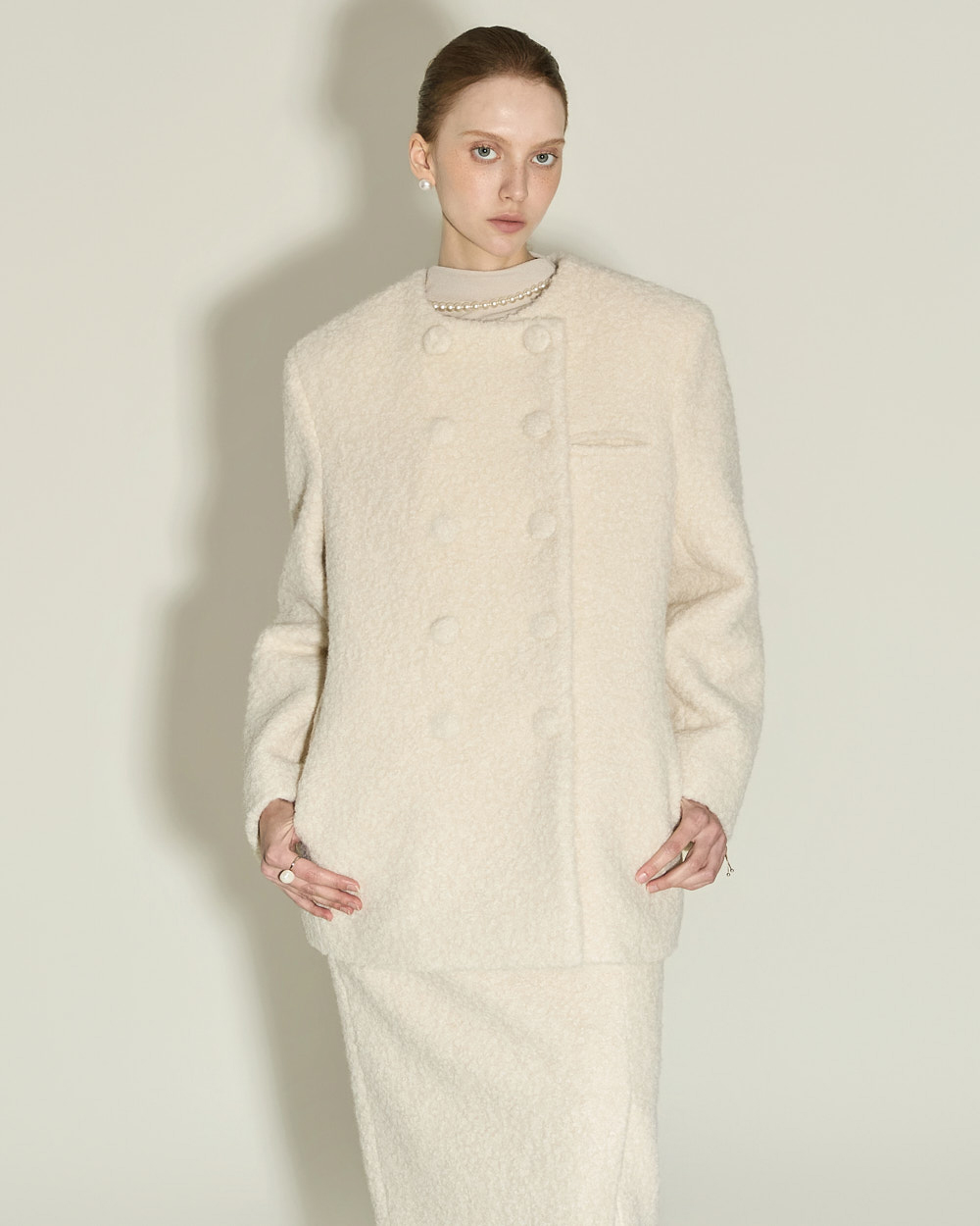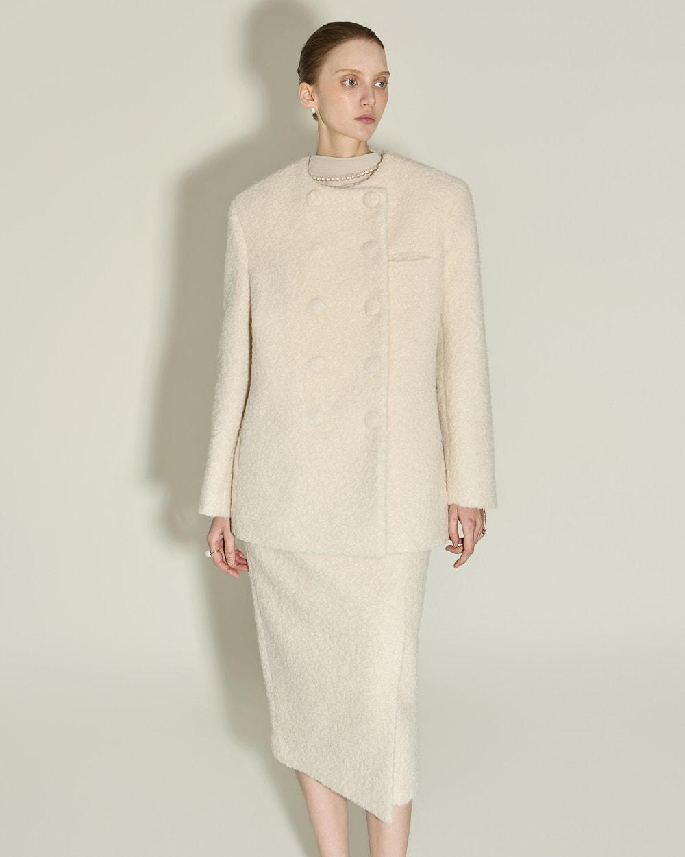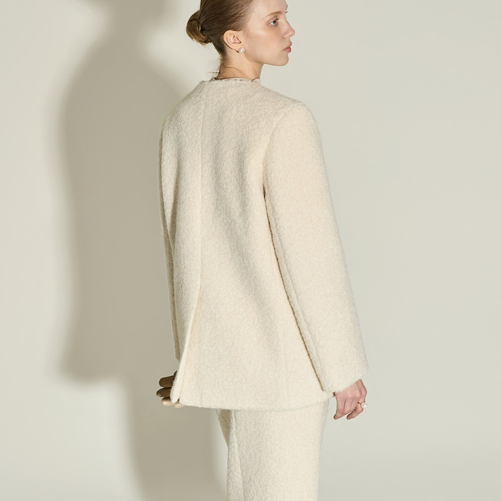 极简氛围的布克无领夹克。