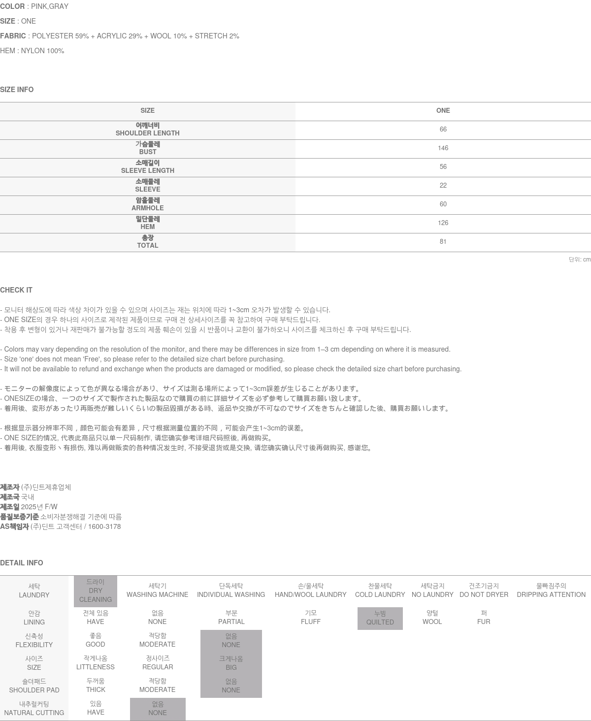 171CM 模特穿着 ONE 尺码,GRAY 颜色。