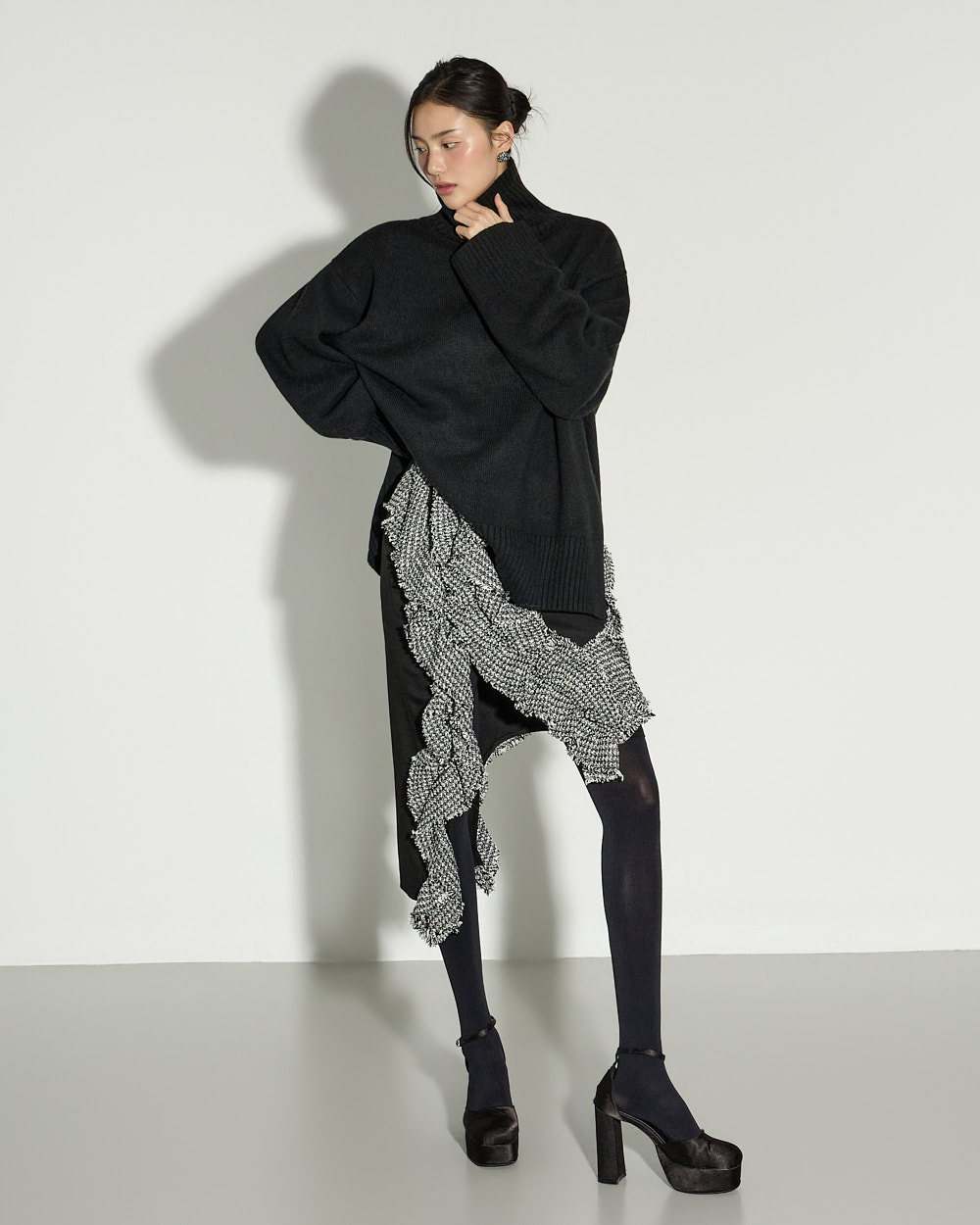 171CM 模特穿着 ONE 尺码,BLACK 颜色。