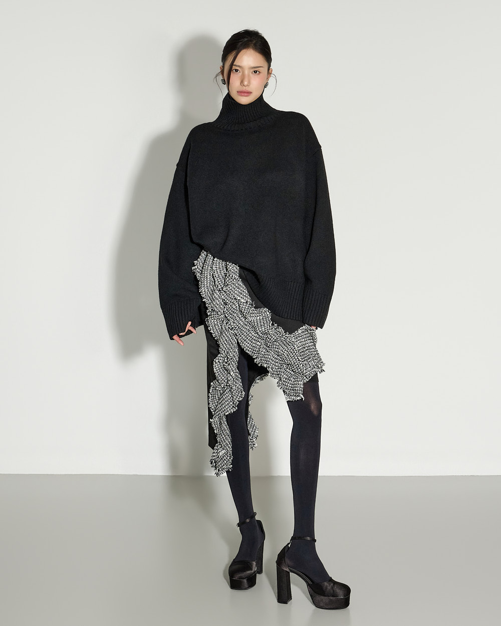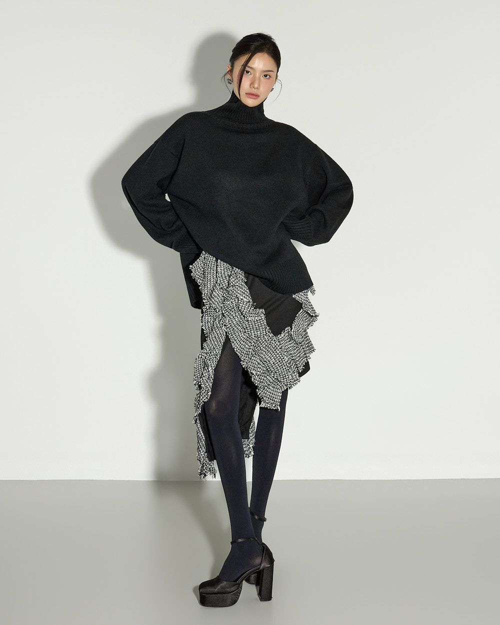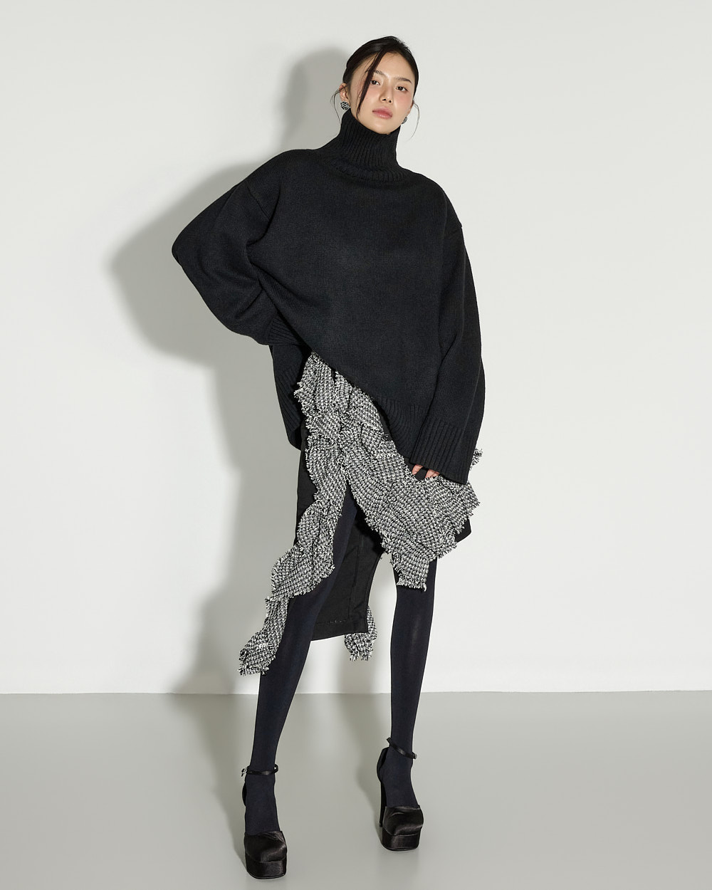 搭配荷叶边细节,使整体造型不显单调,层次感十足。