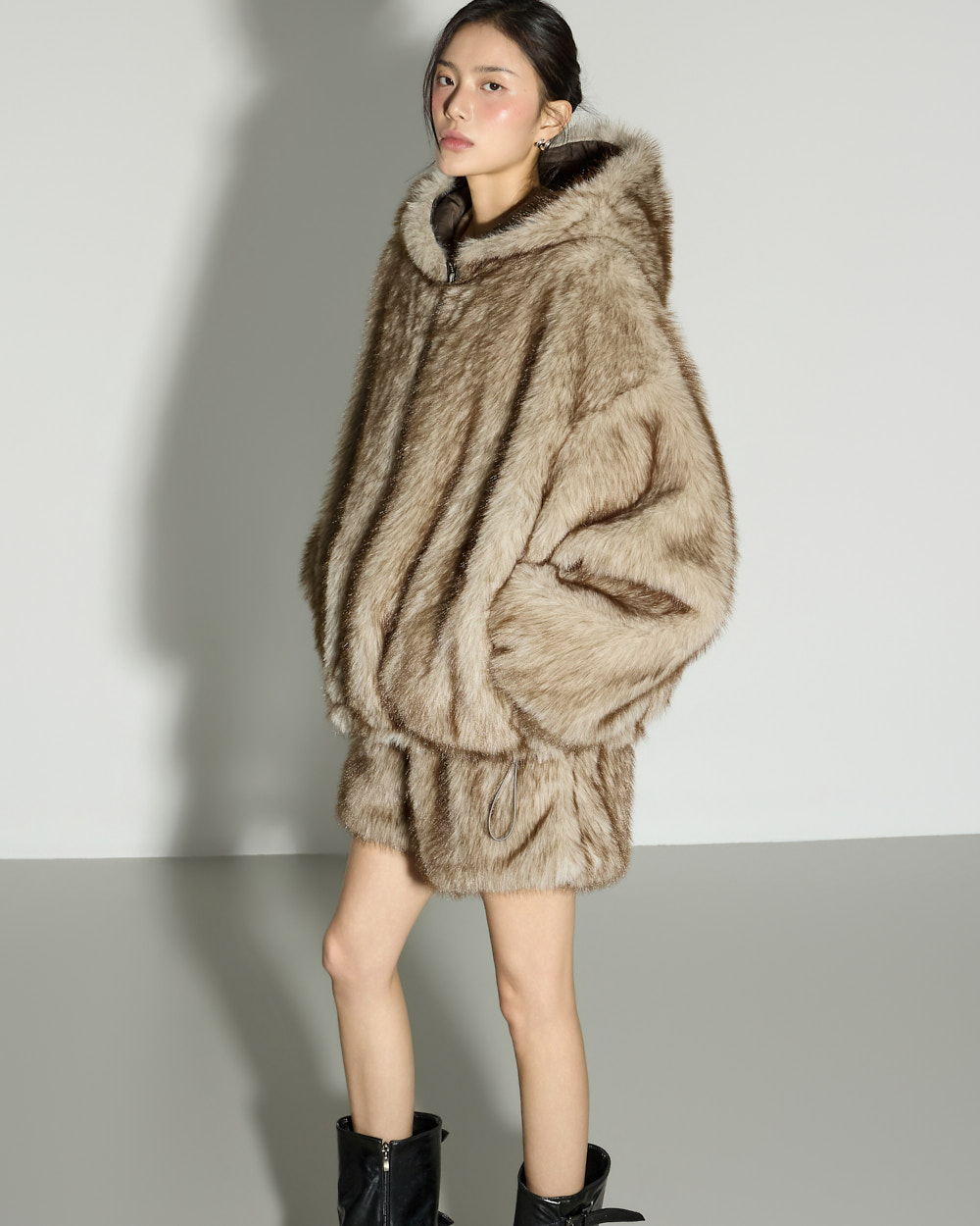 模特身高 171CM,穿 ONE 尺码,颜色为米色。