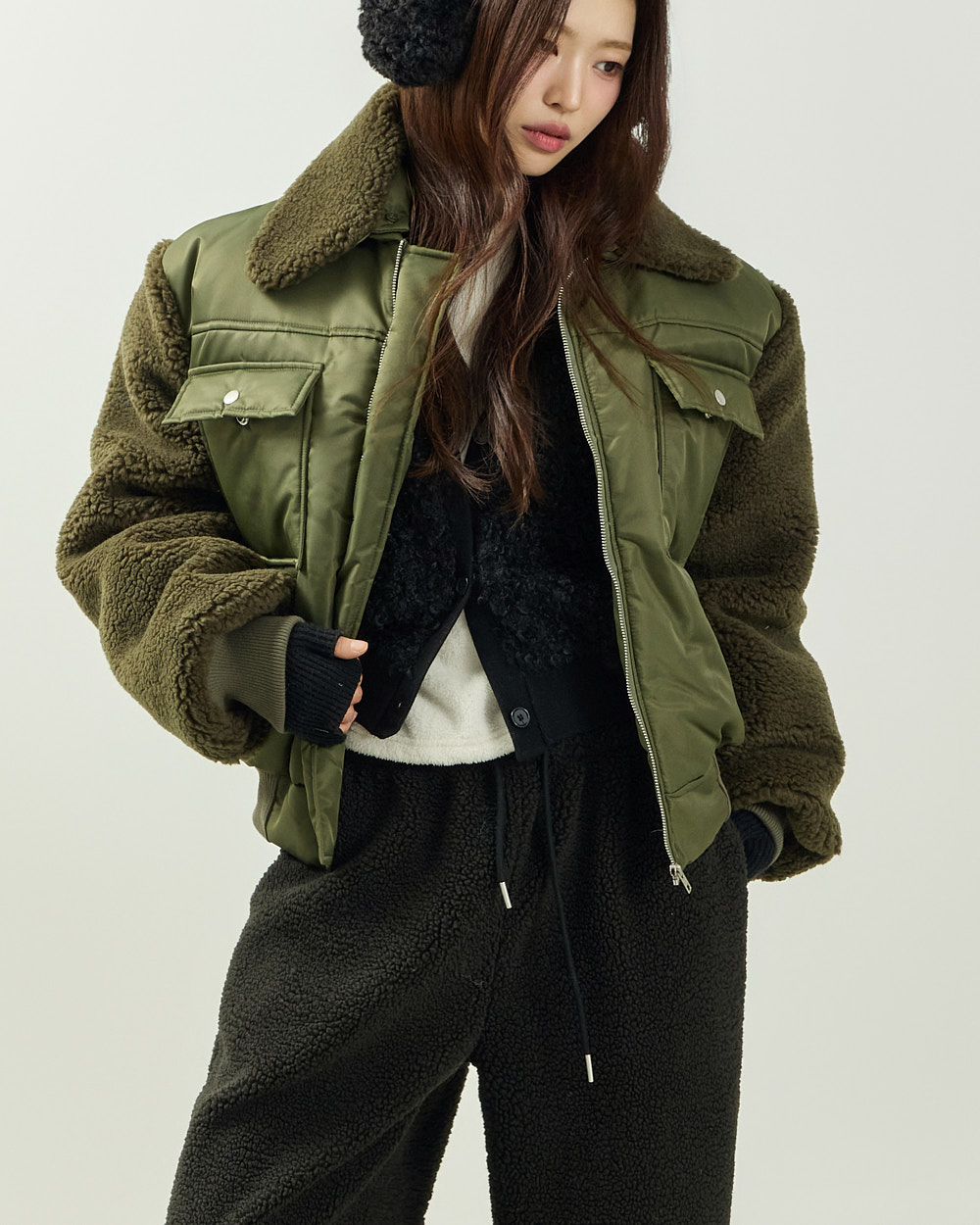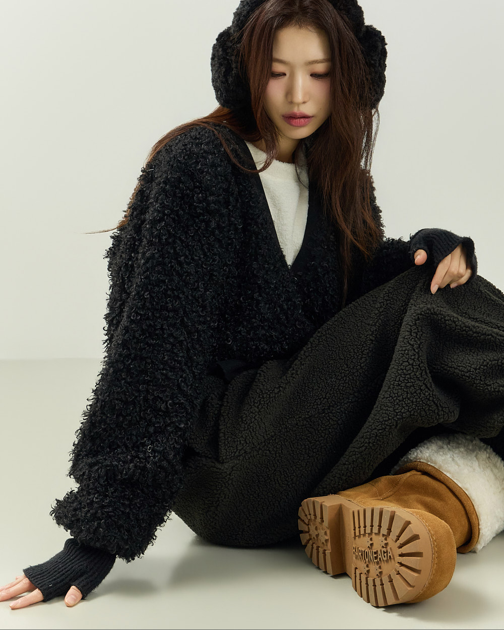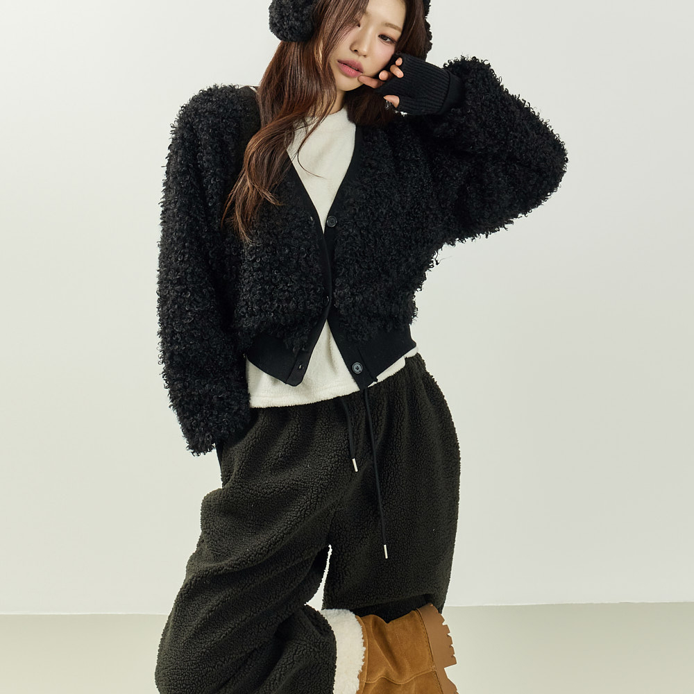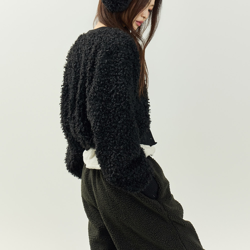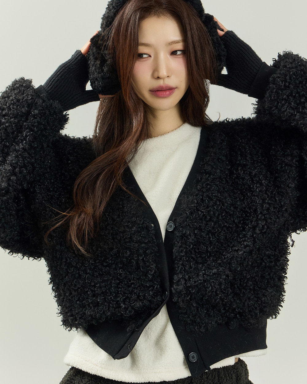 这是一款展现休闲氛围的羊羔绒起绒短款开衫。