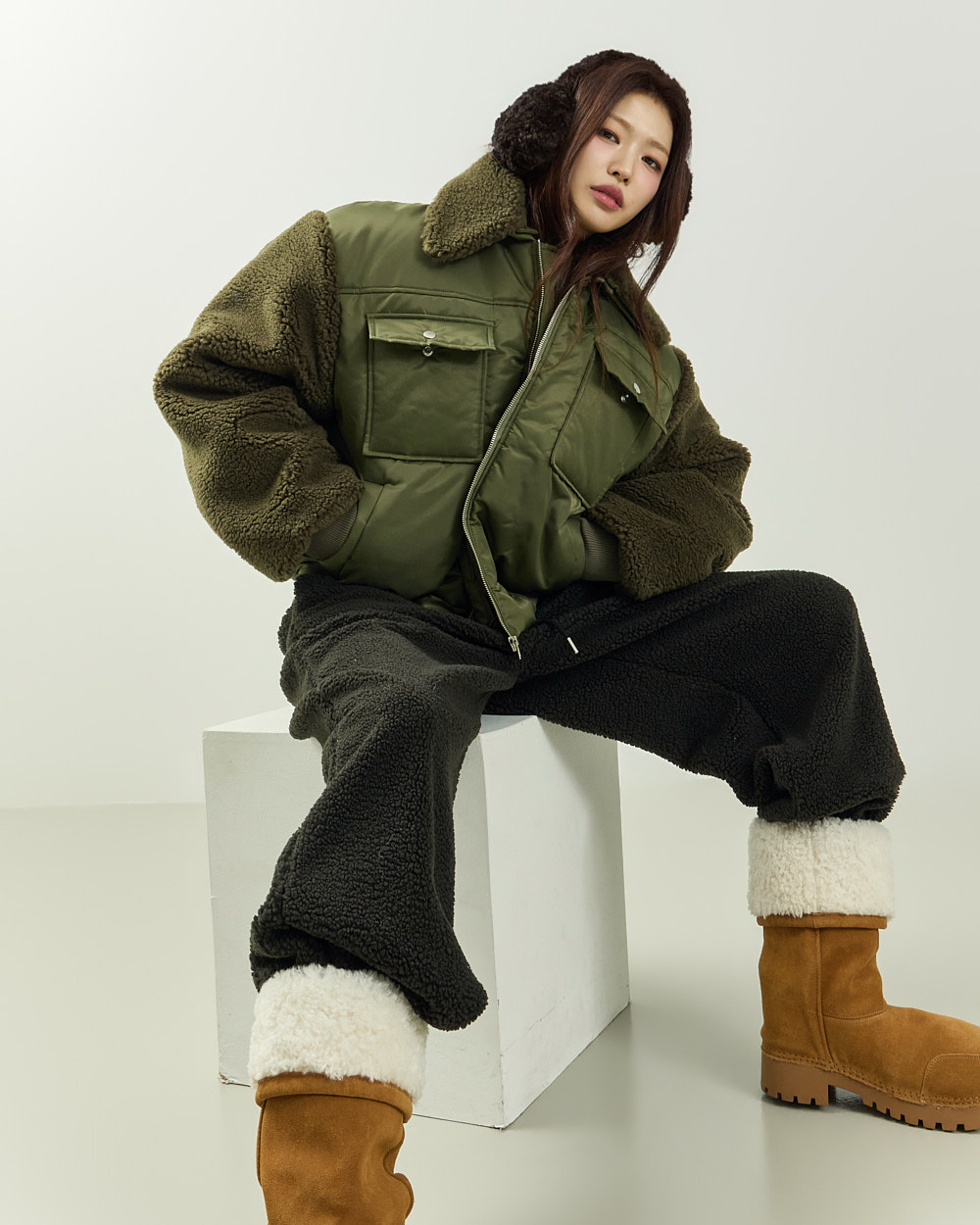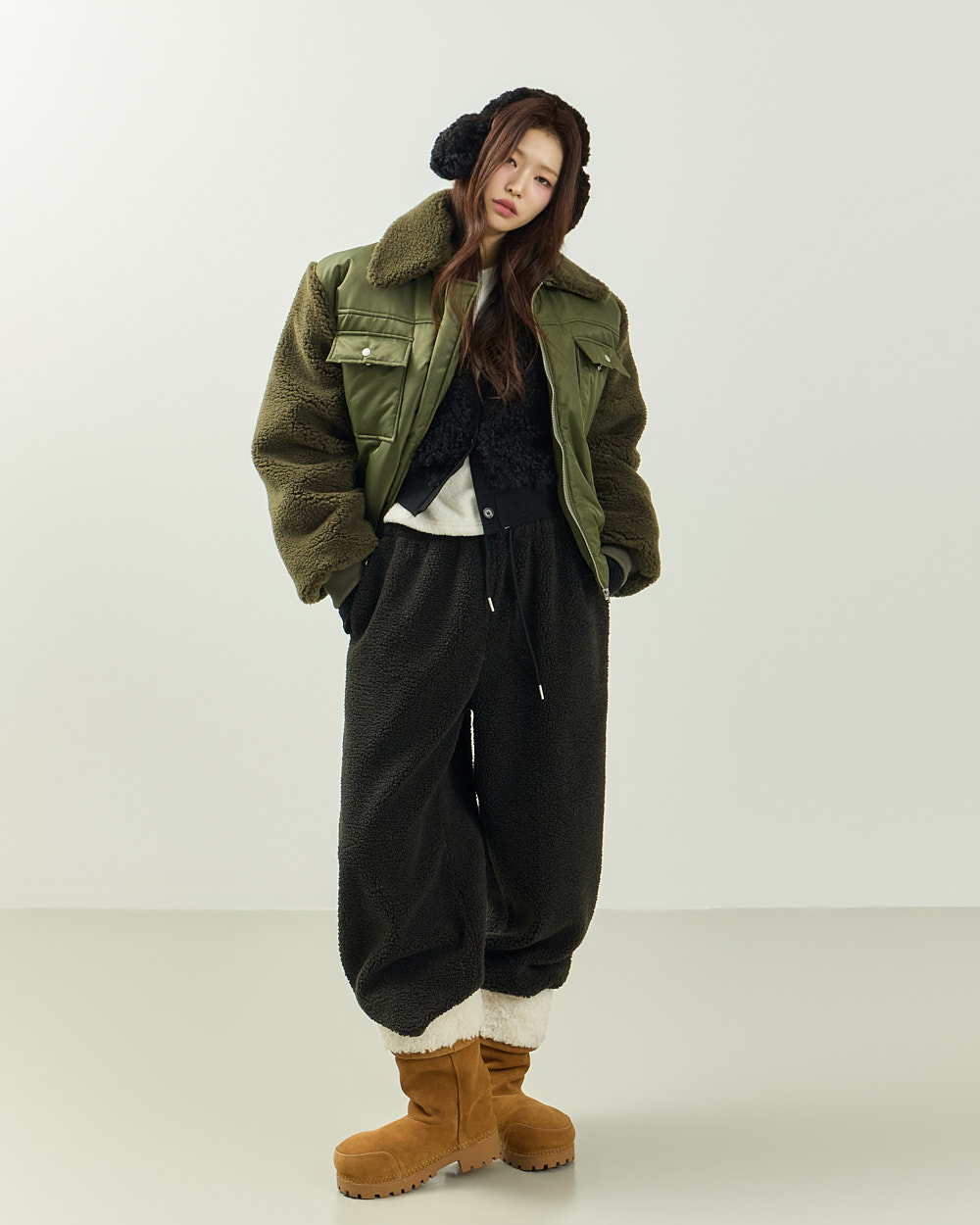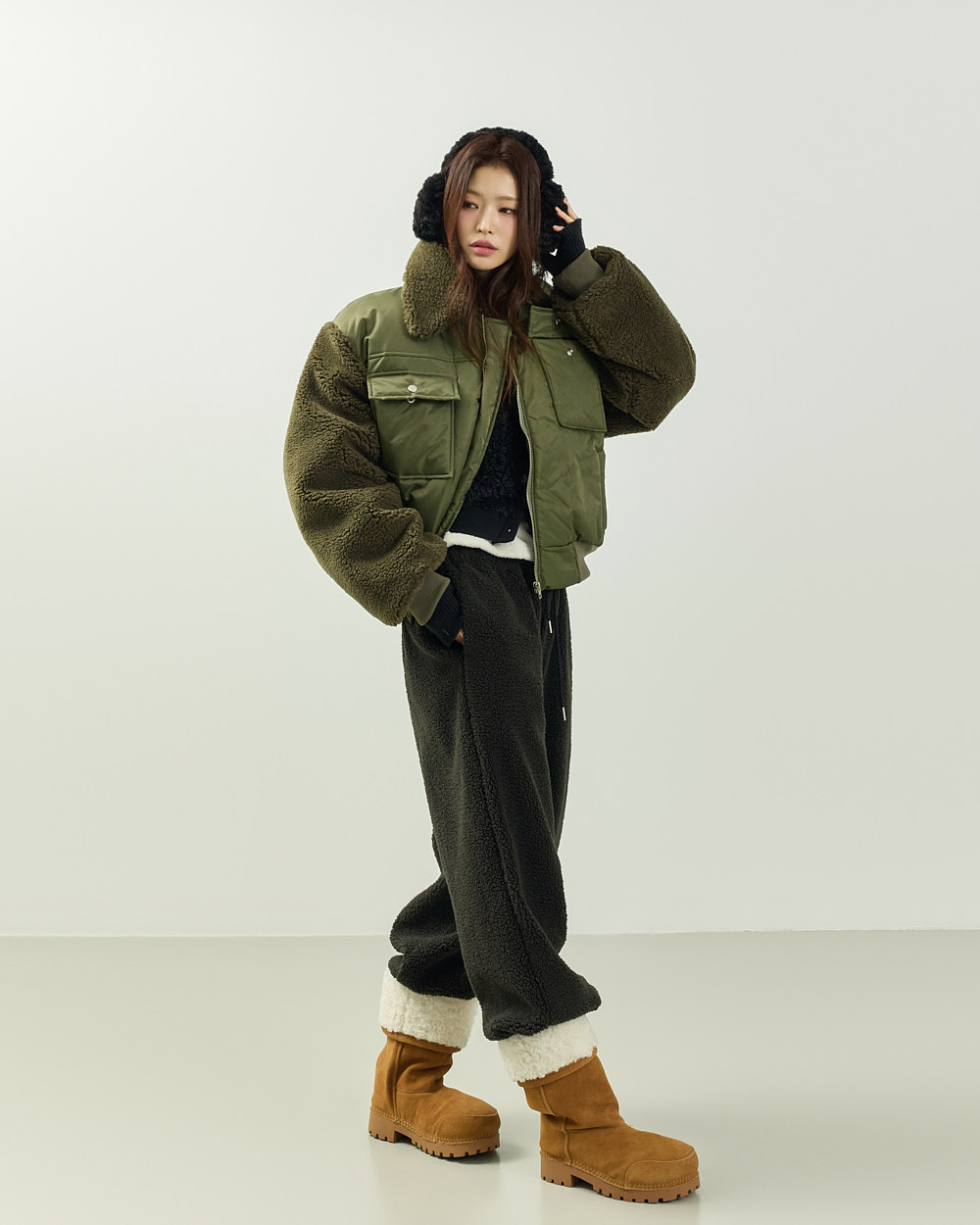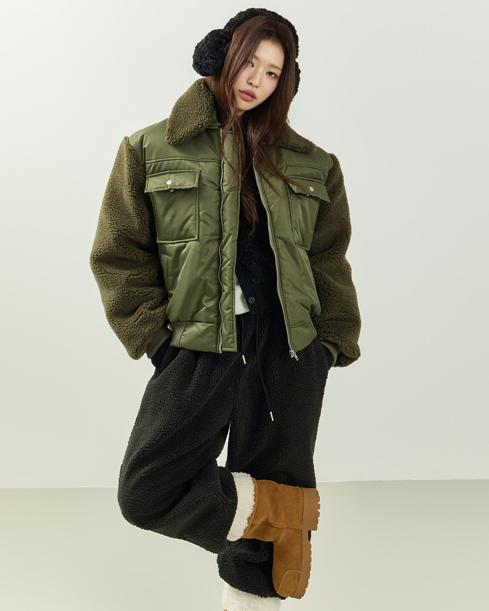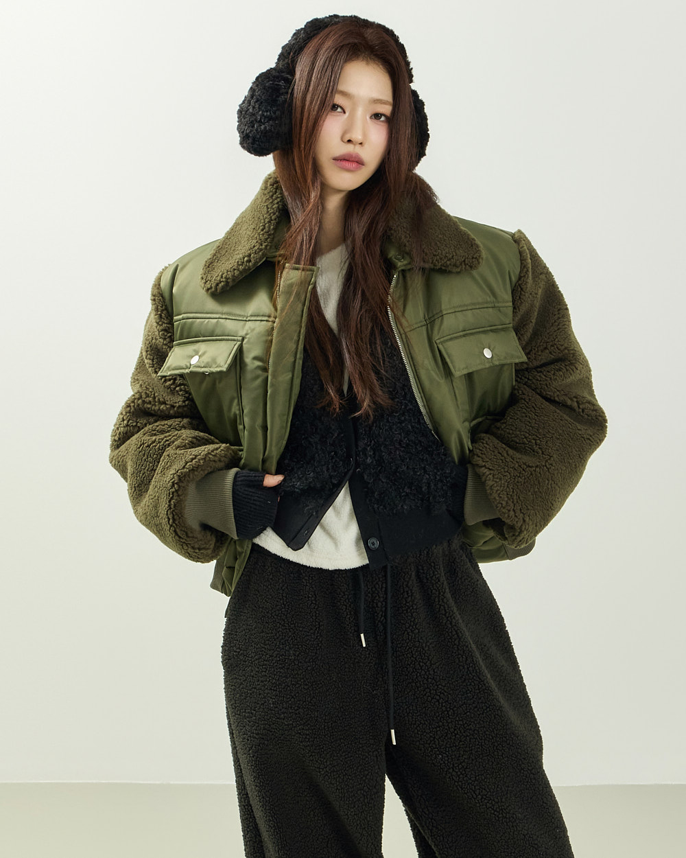 这是一款展现休闲氛围的羊羔绒起绒短款开衫。