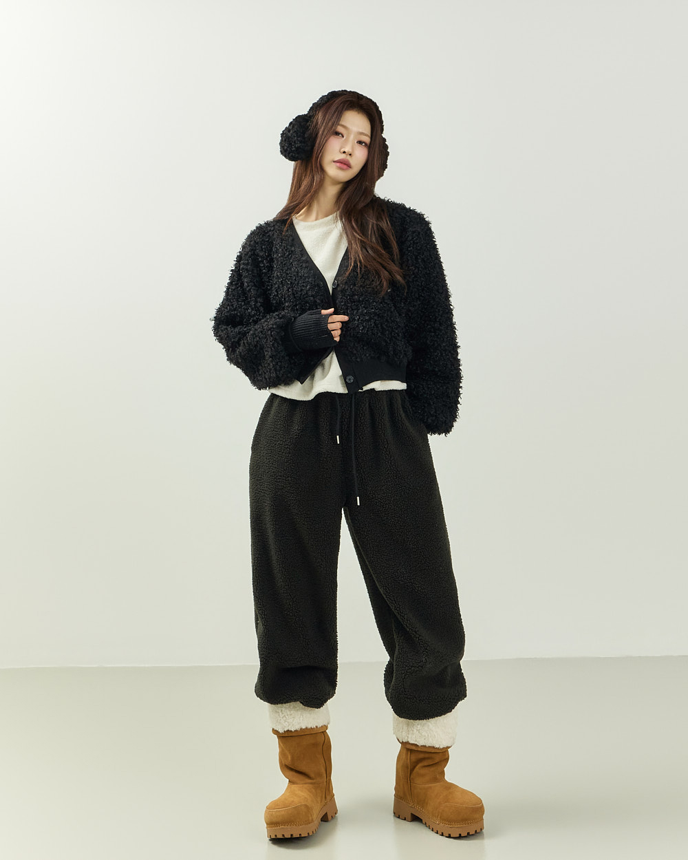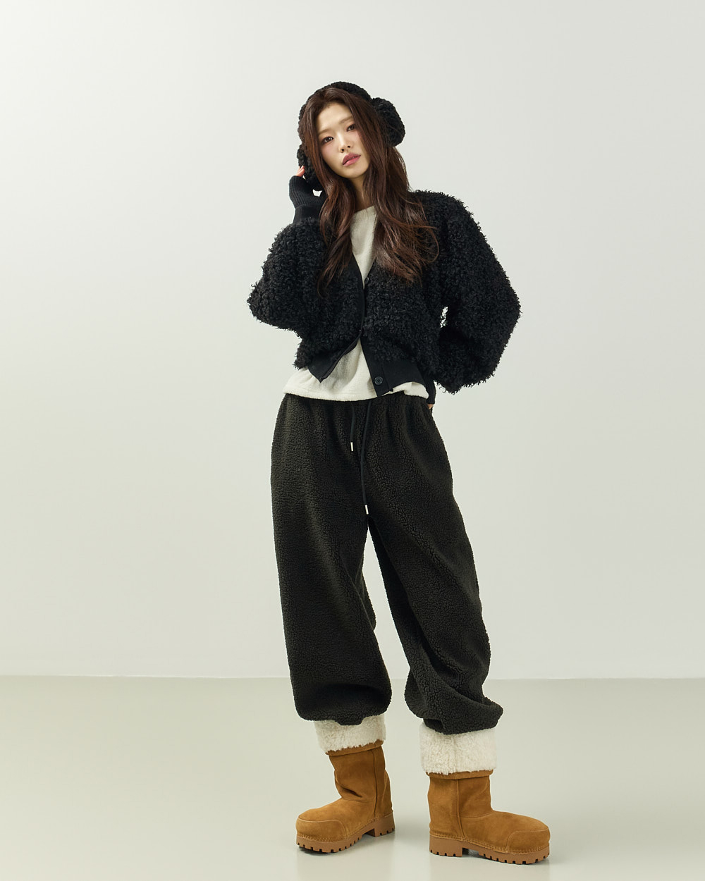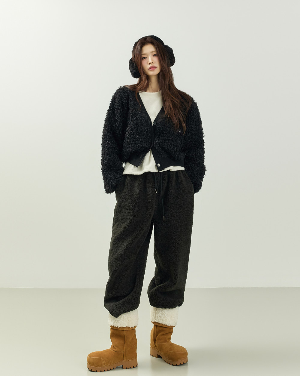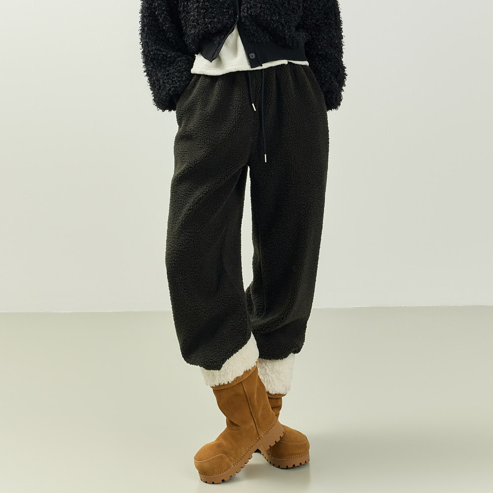 宽松垂坠的裤型搭配裤脚松紧收口,