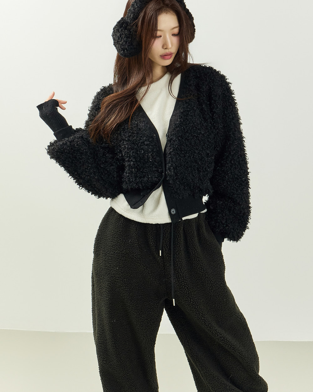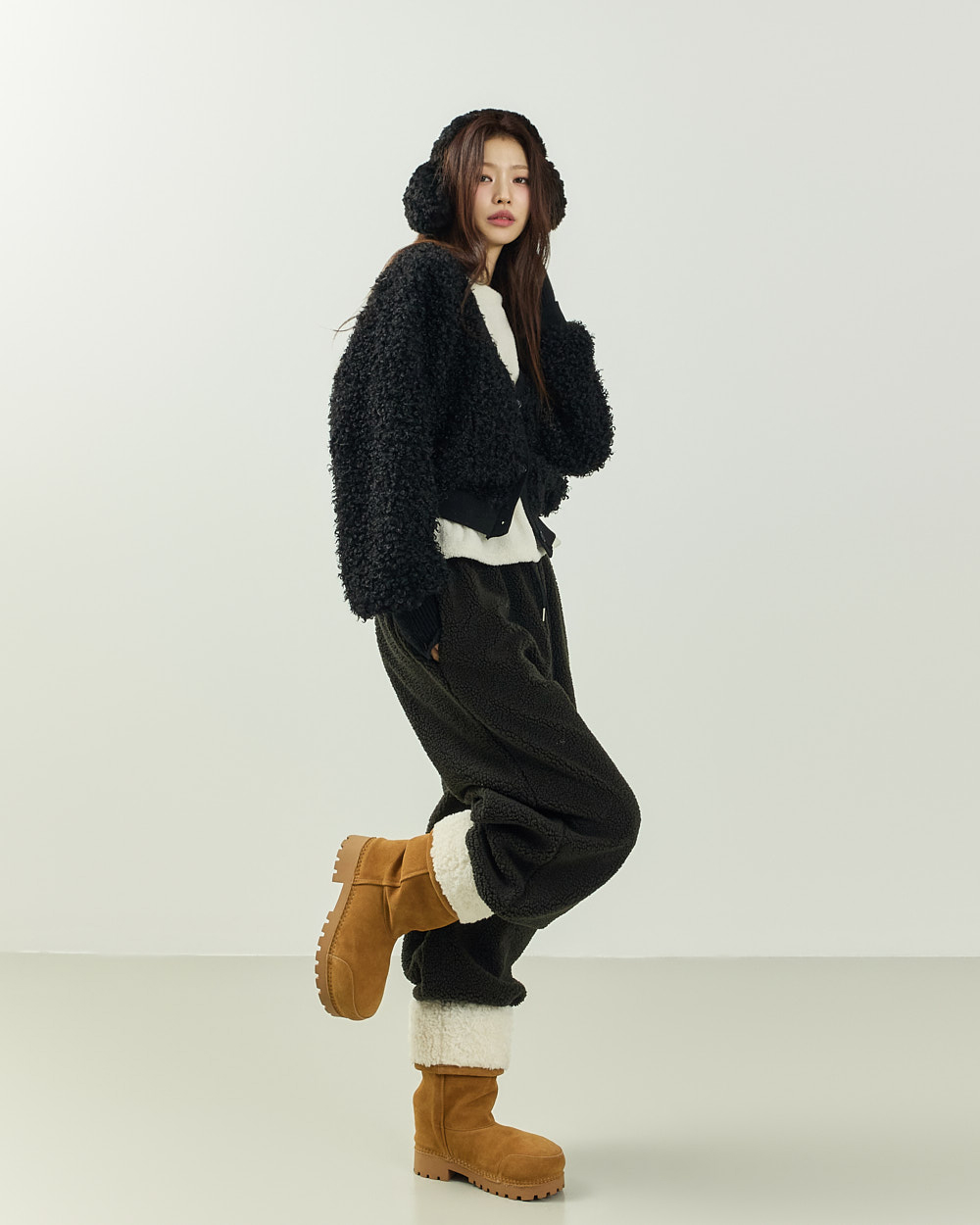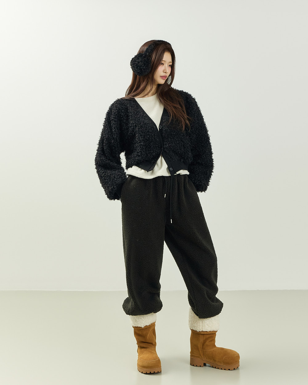 宽松垂坠的裤型搭配裤脚松紧收口,