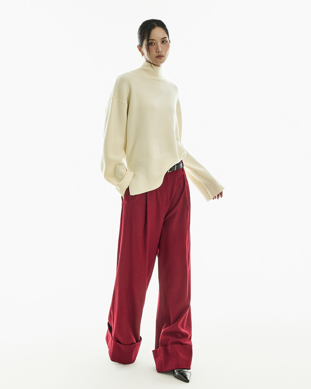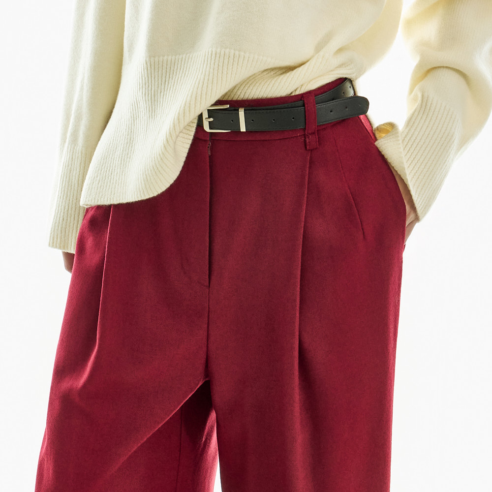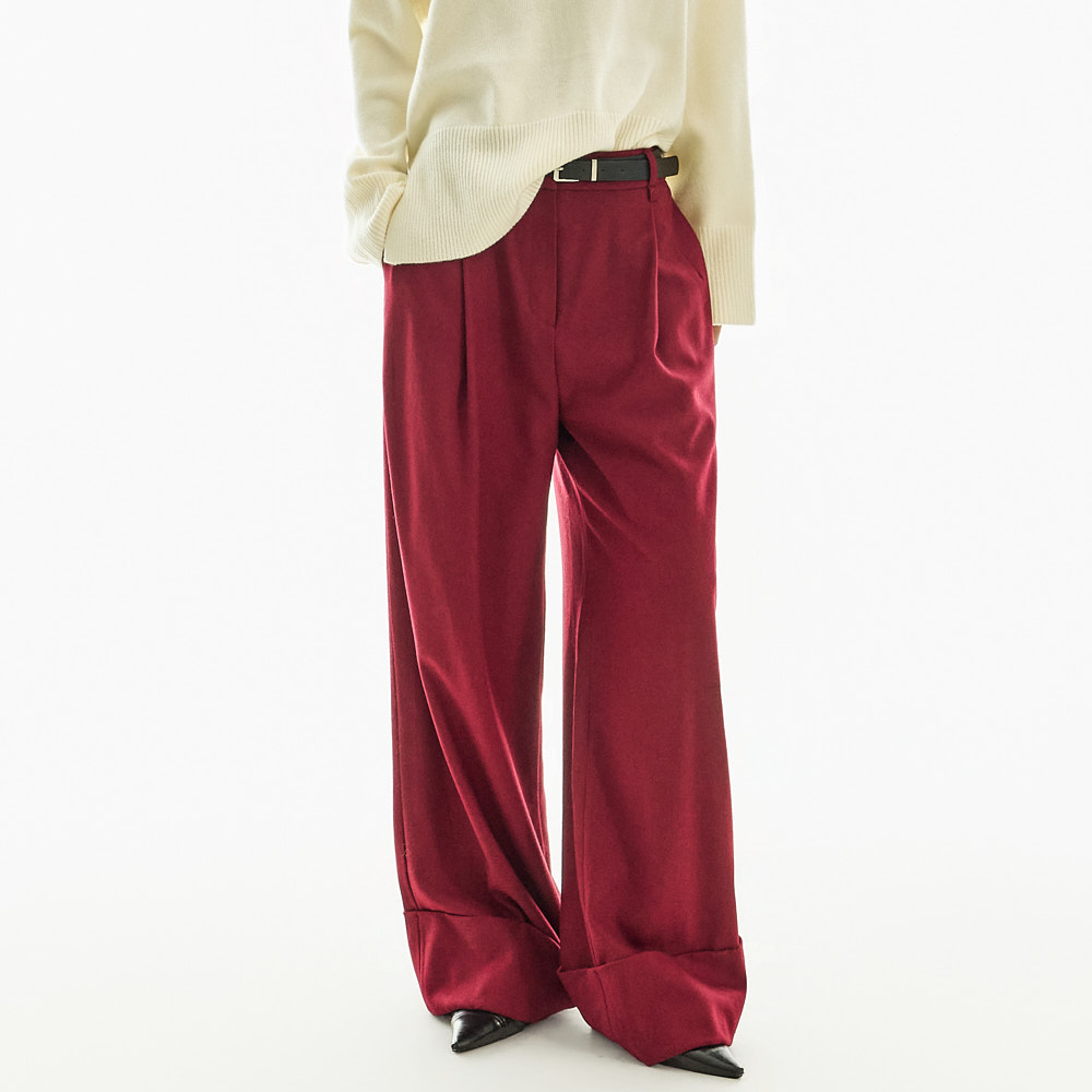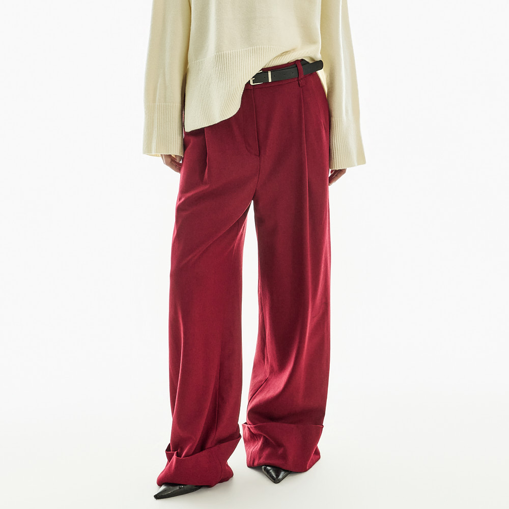 宽松阔腿版型自然垂落,前侧褶皱设计使腿部看起来修长纤细。