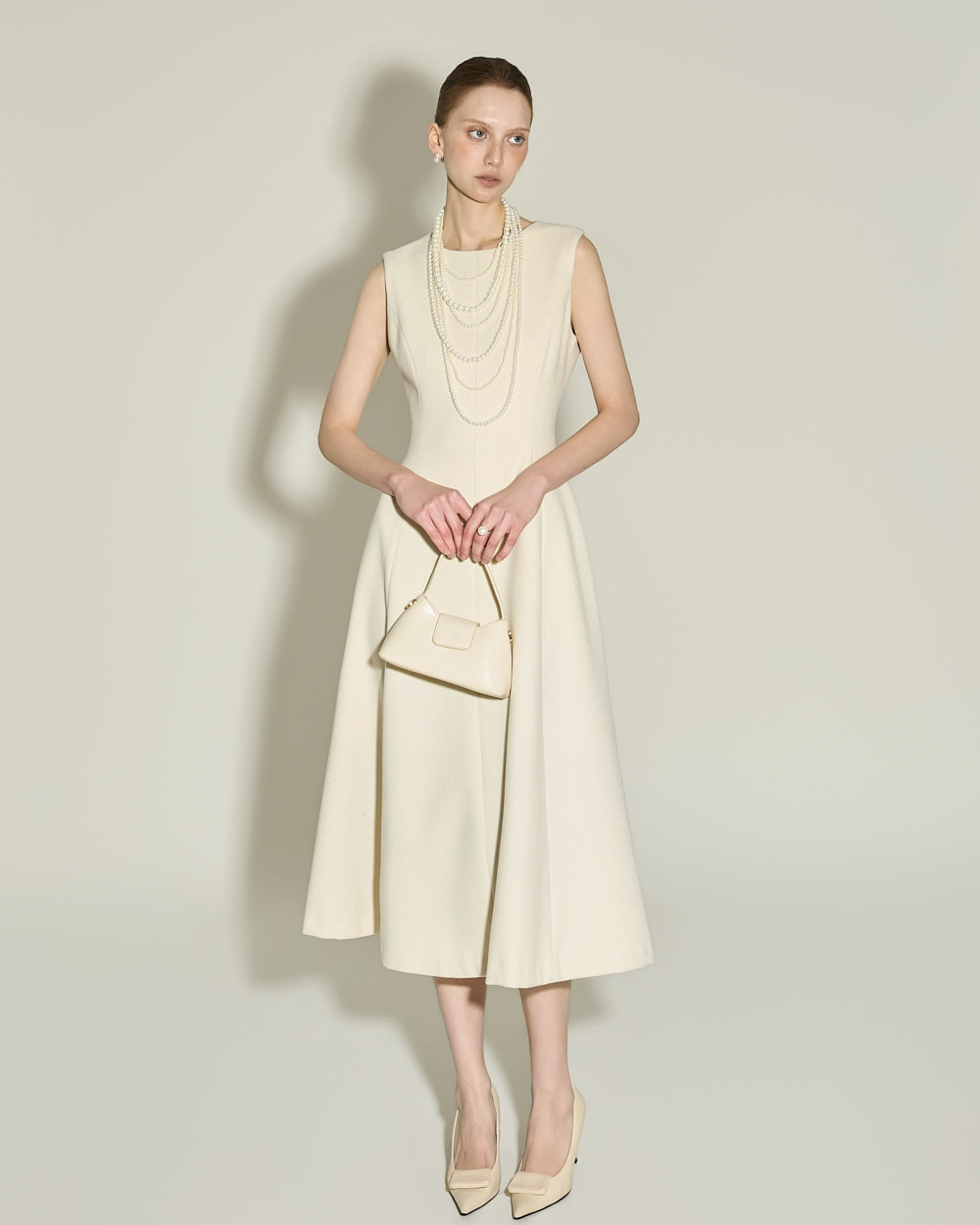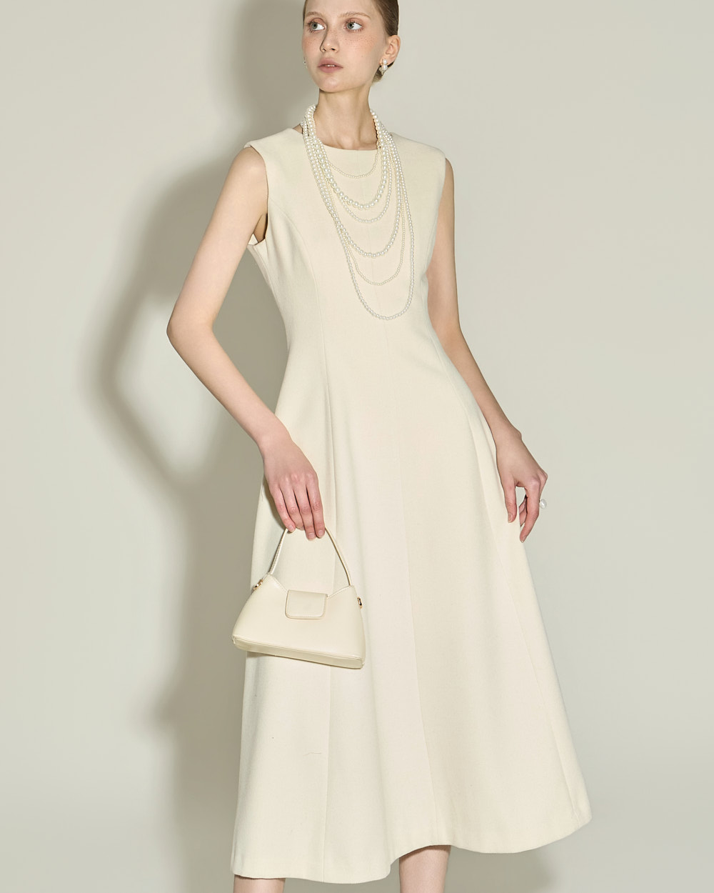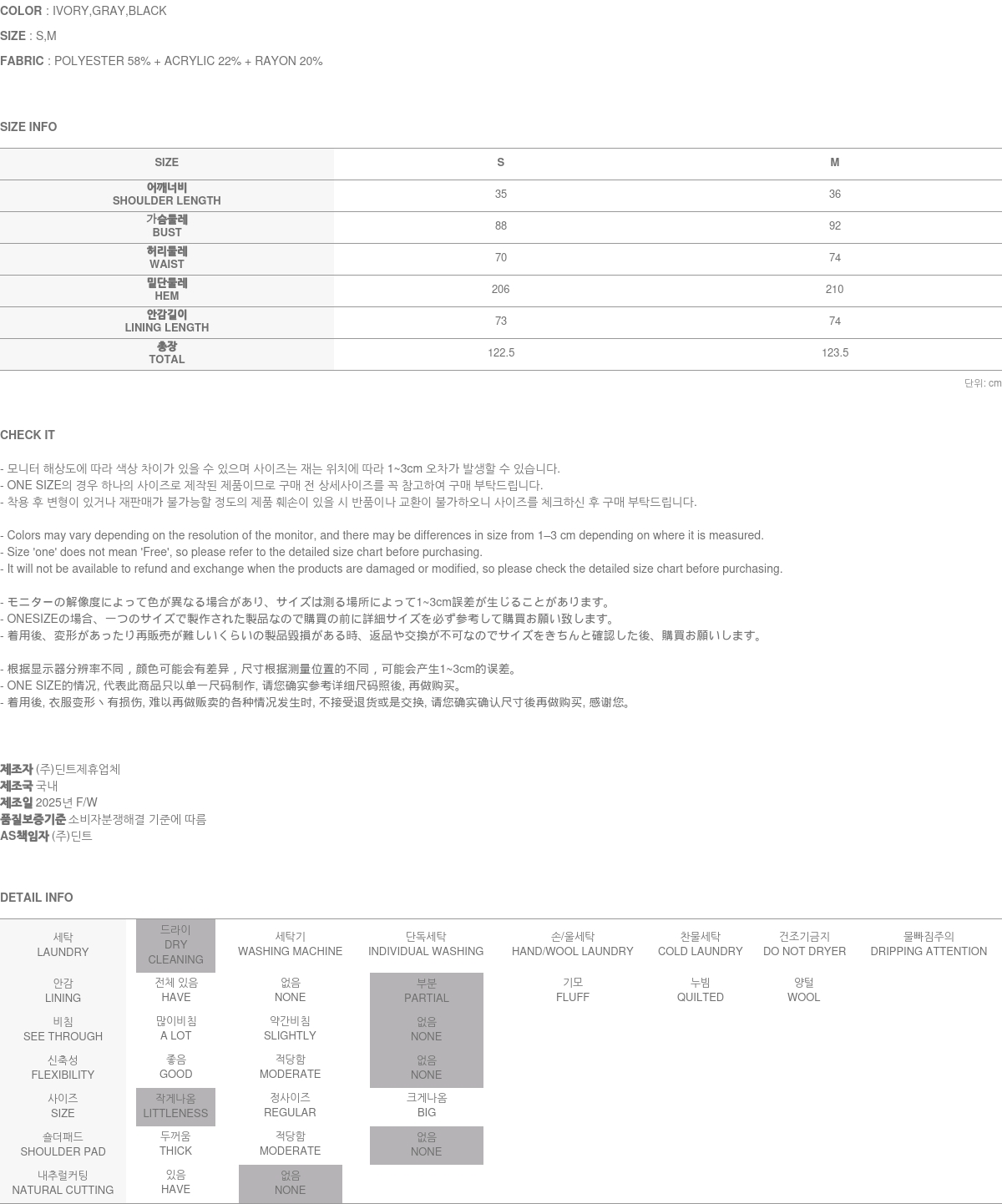 174CM 模特穿着 S 码,IVORY 颜色。