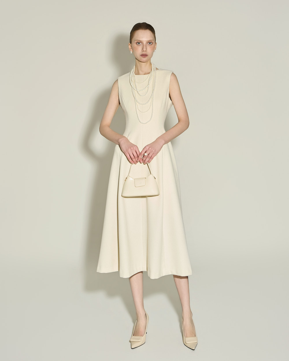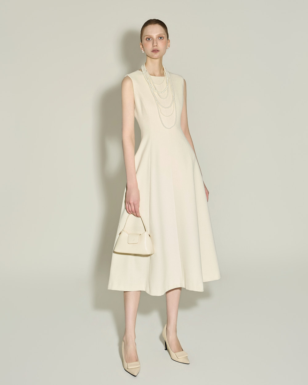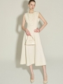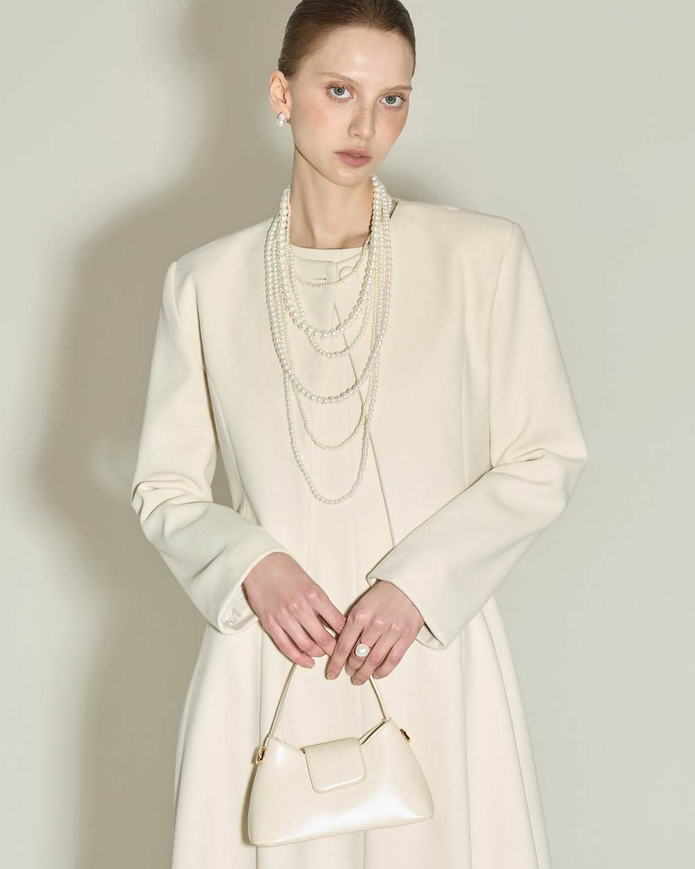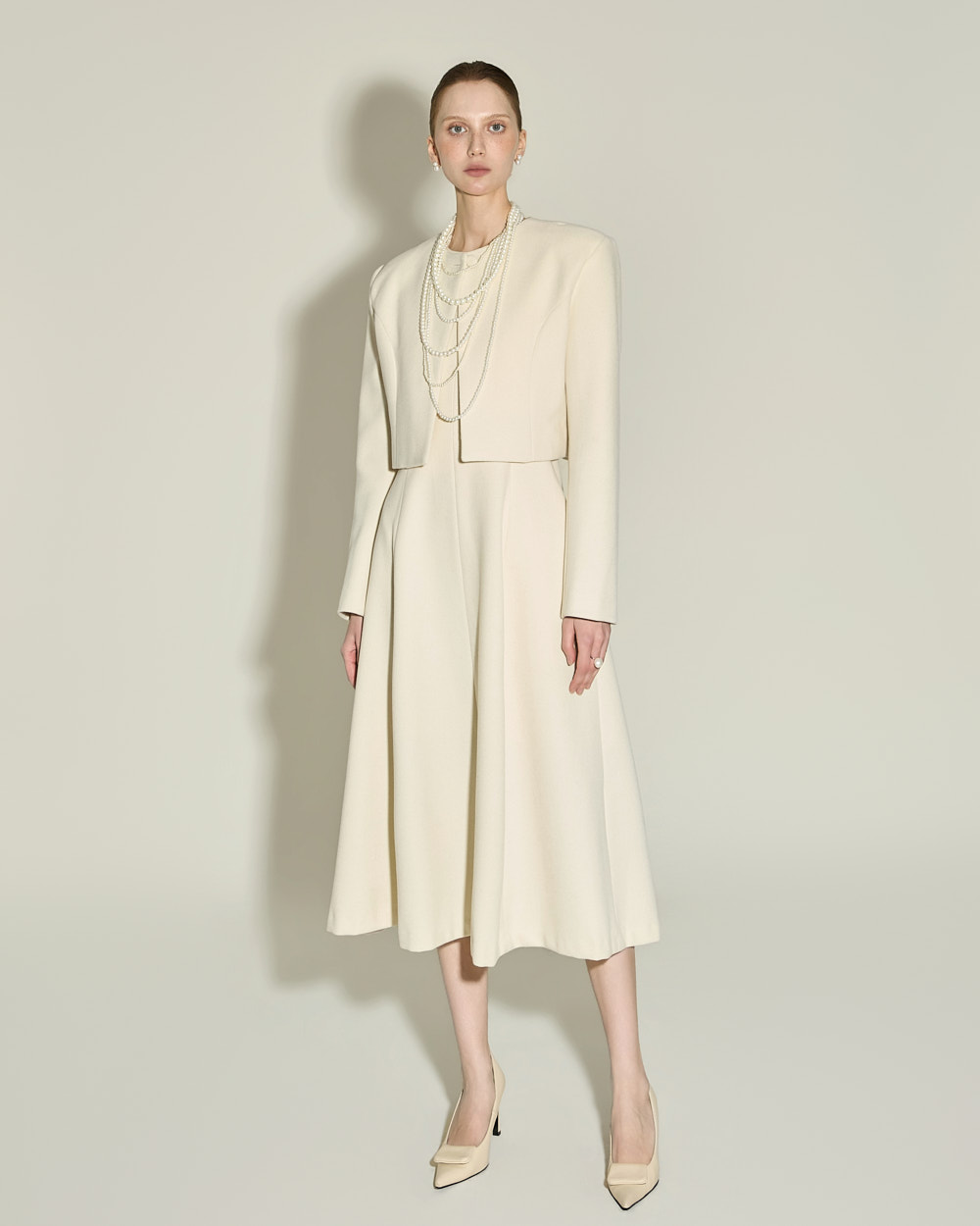 外套为整体内衬设计,连衣裙为局部内衬,穿着效果干净利落。