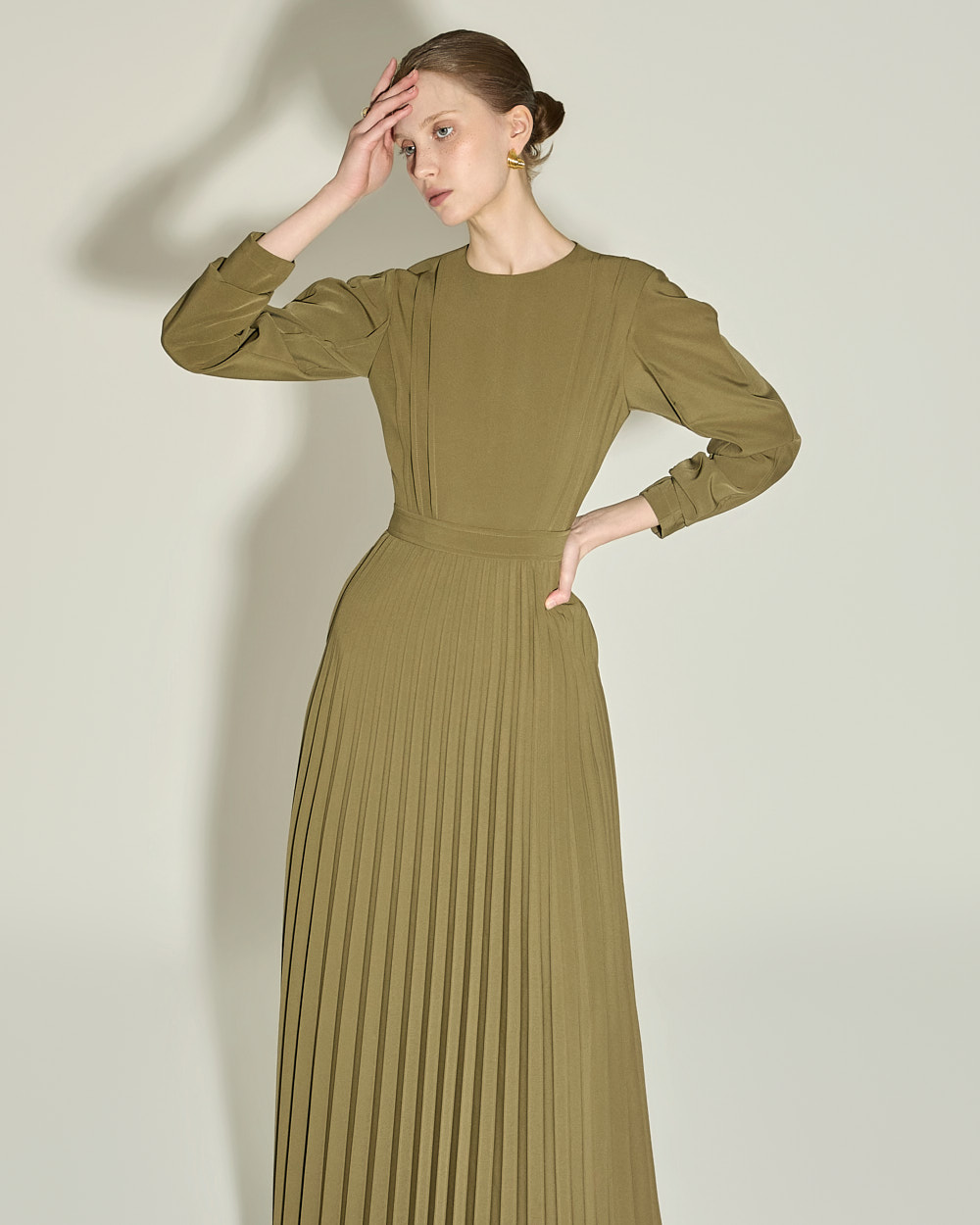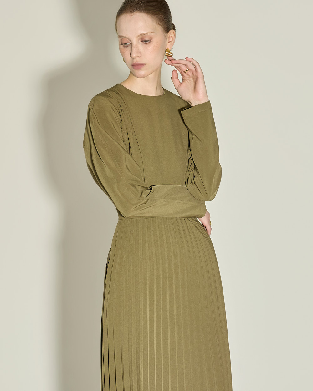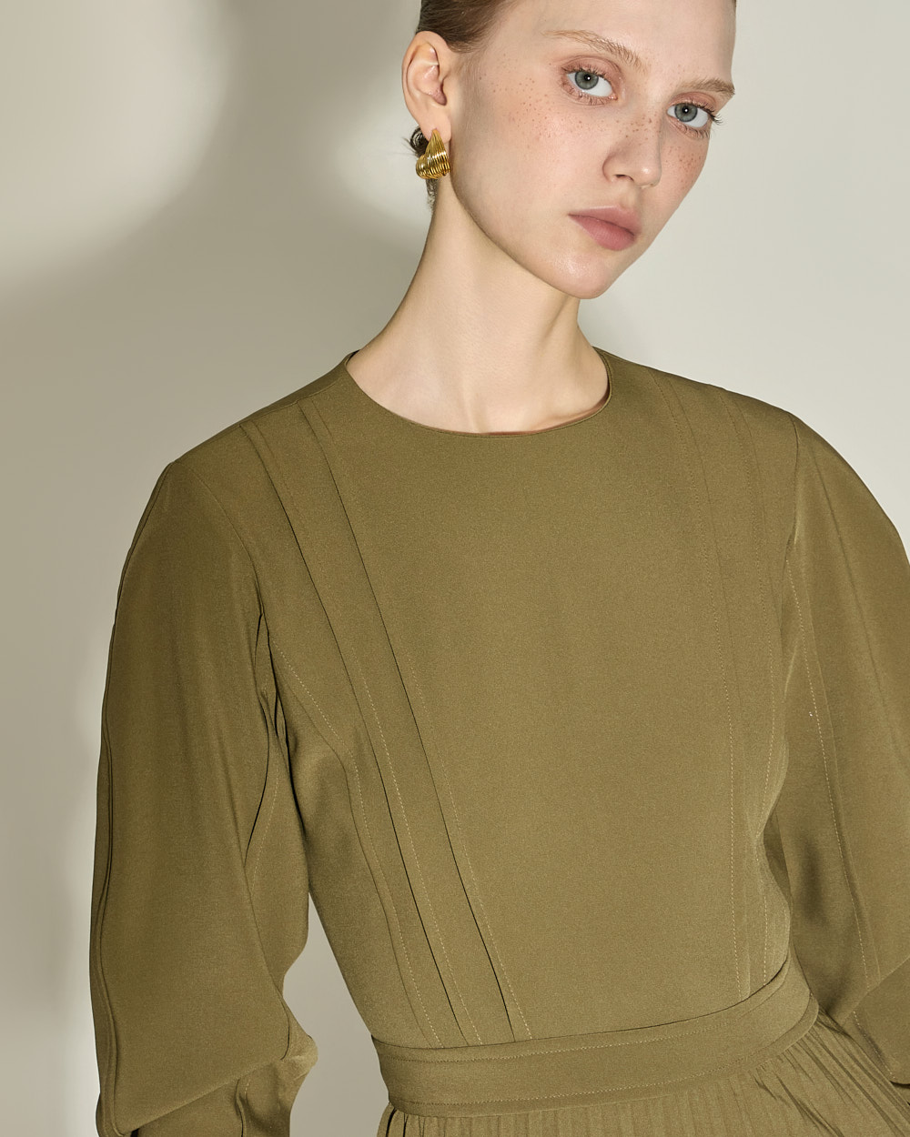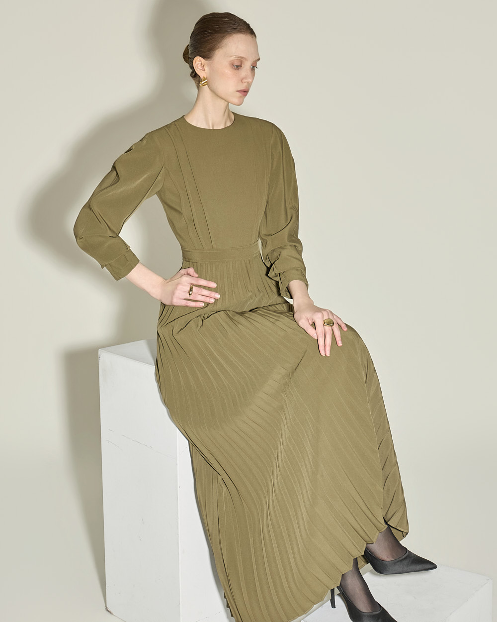 腰线以下自然展开的细密百褶,