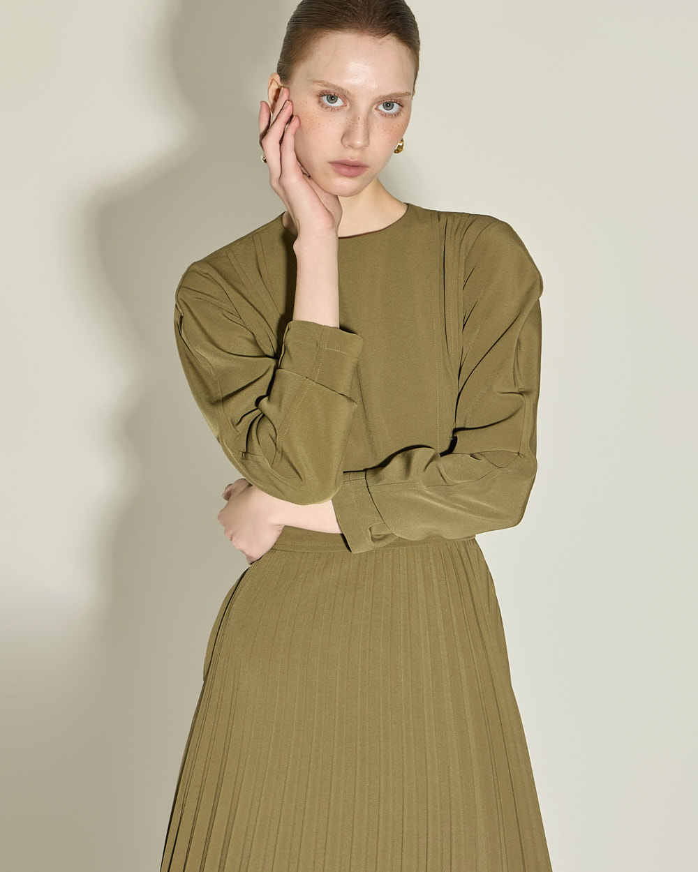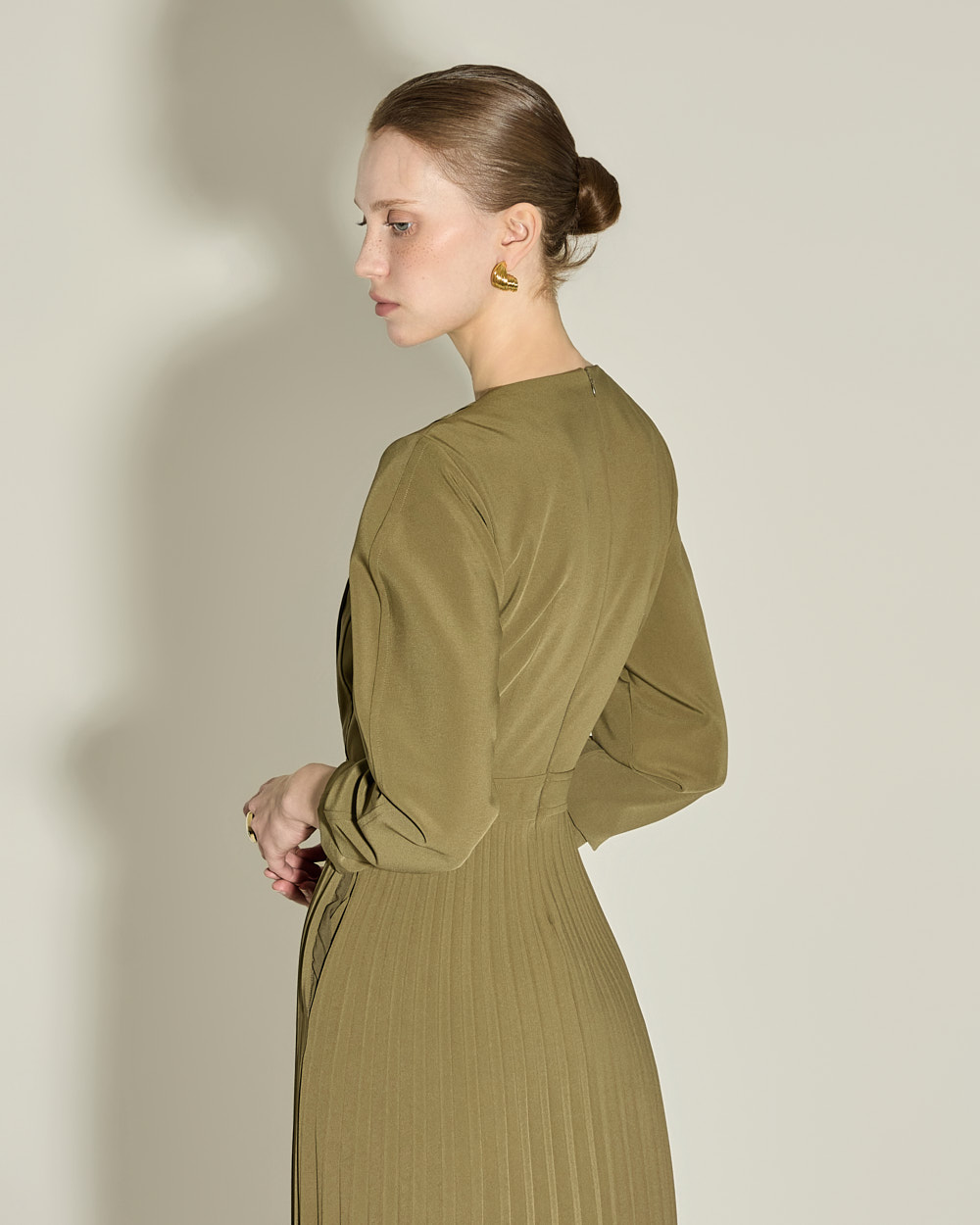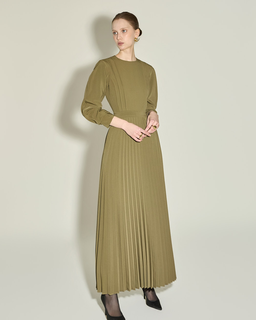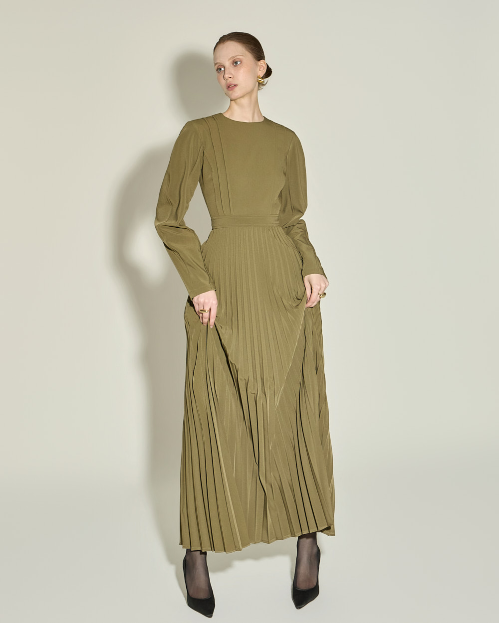 腰线以下自然展开的细密百褶,