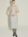 连衣裙为无袖设计,中长长度的 H 型轮廓,