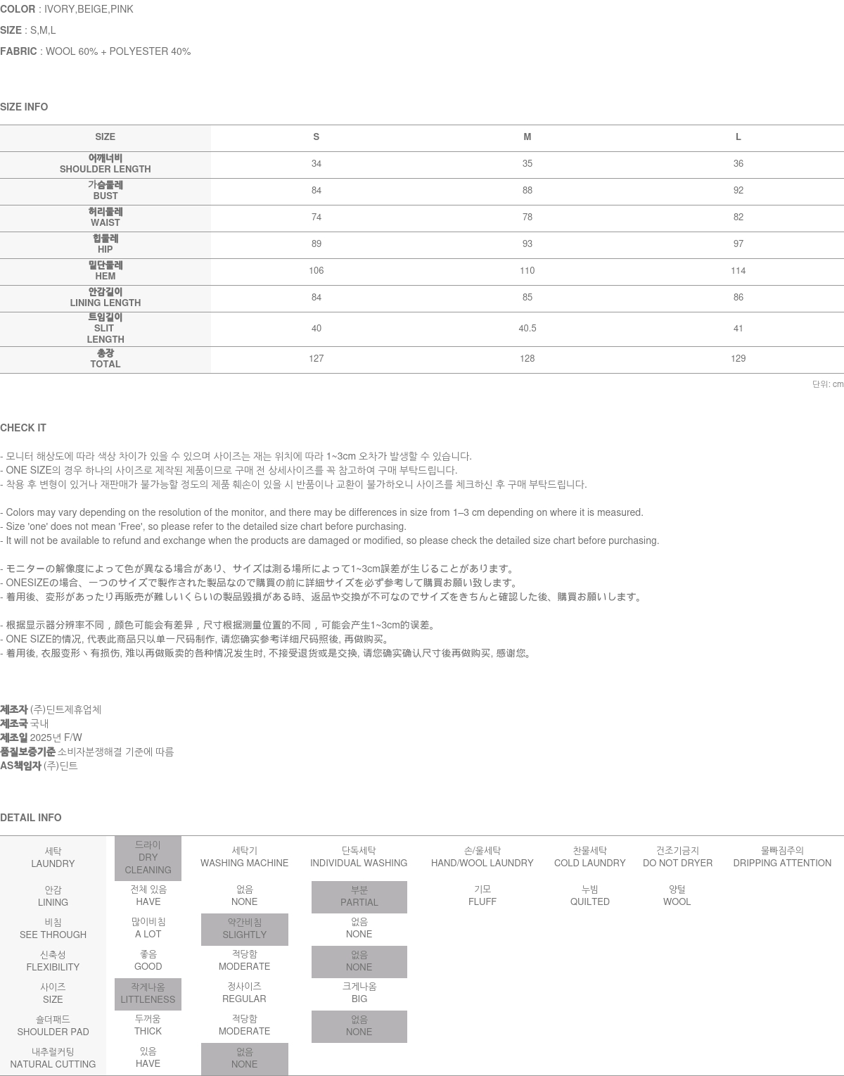 • DINT的所有商品, 使用一般洗滌或是烘乾機, 皆有可能成爲變形或是商品損傷的原因, 建議您使用乾洗.