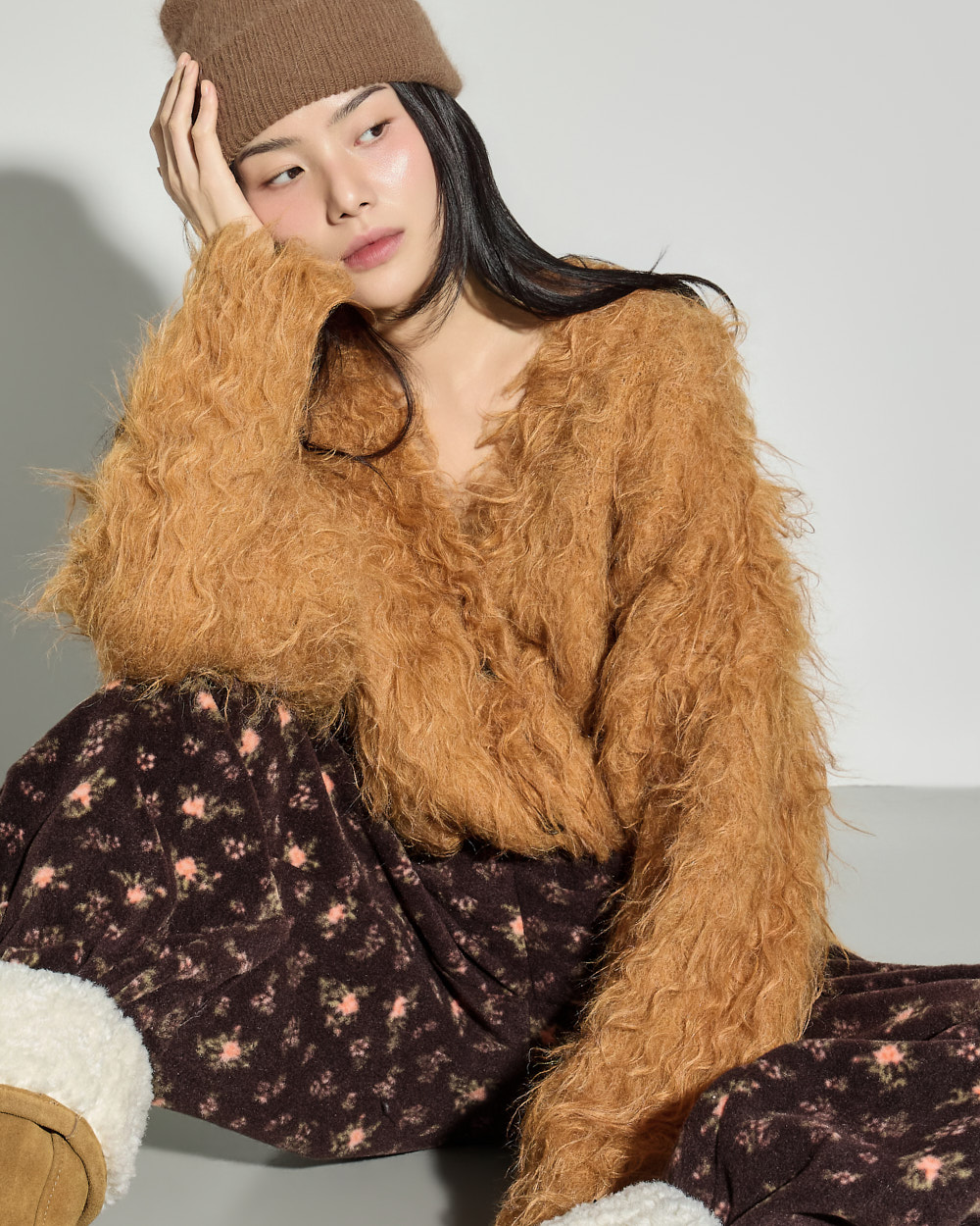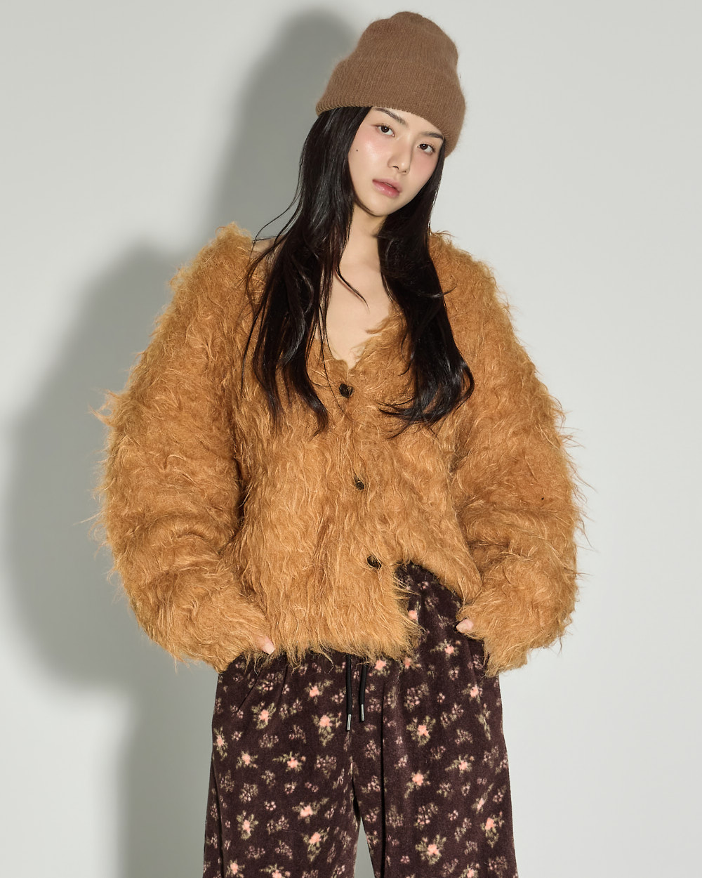 171CM 模特穿着 ONE 尺码,BROWN 颜色。