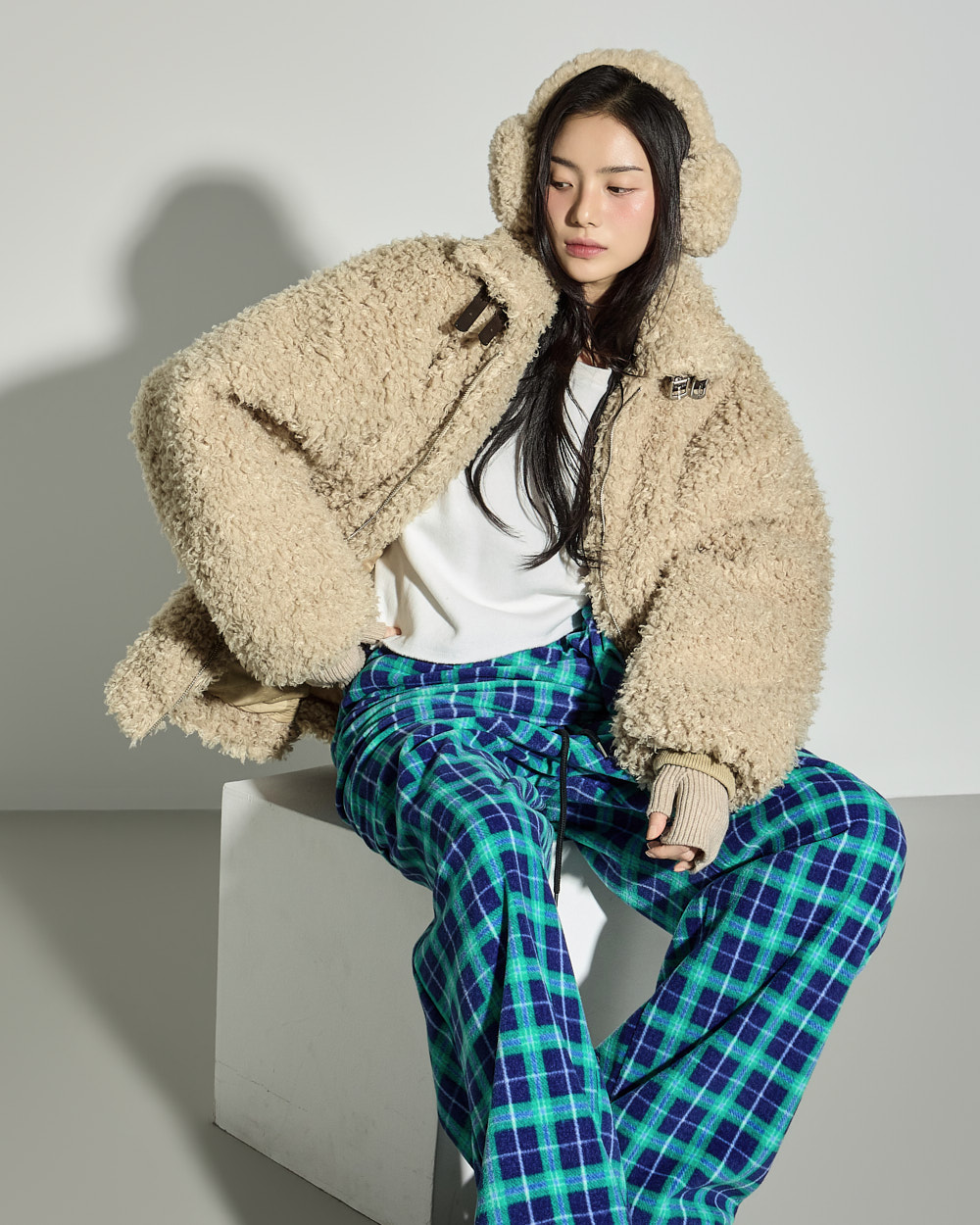 171CM 模特穿着 ONE 尺码,BEIGE 颜色。