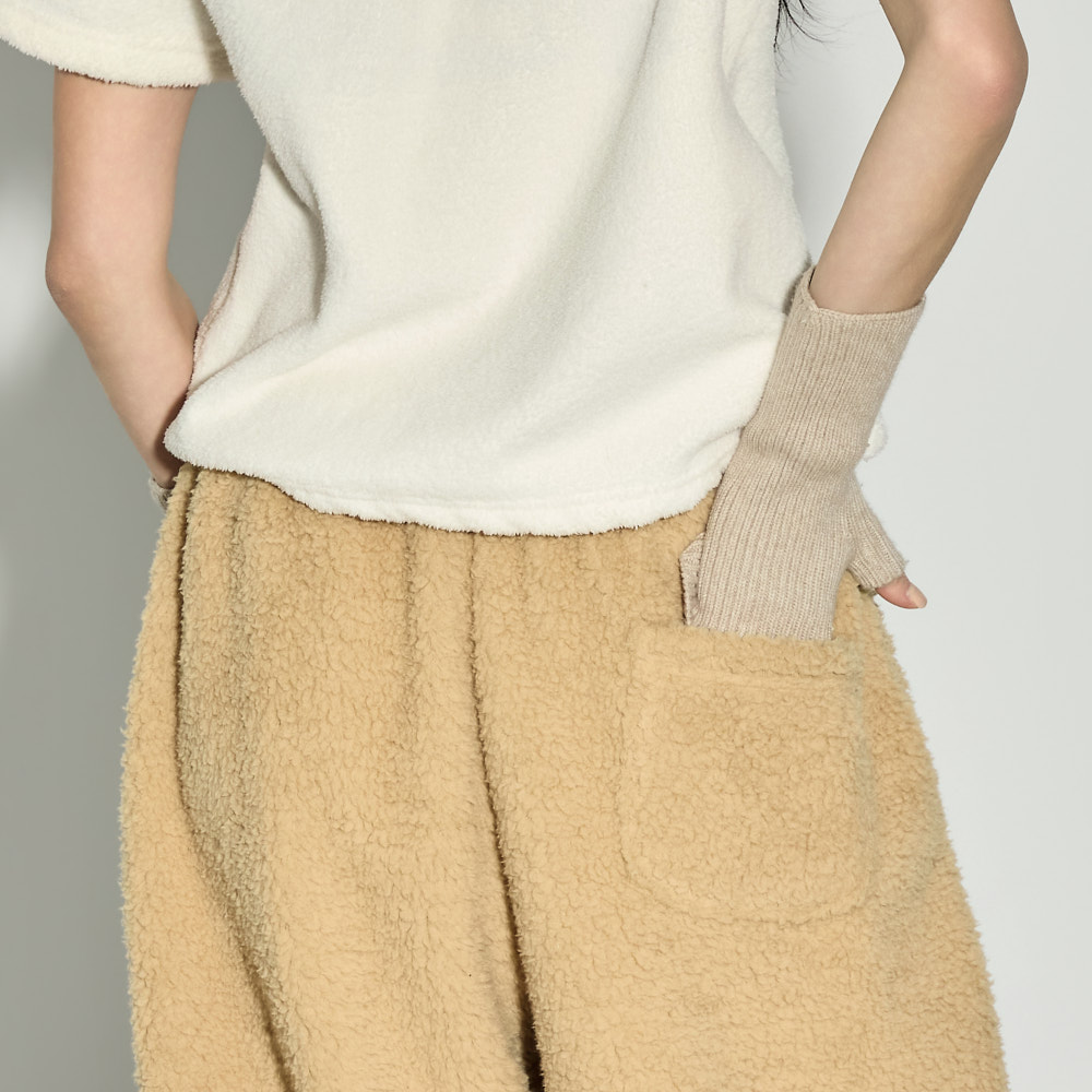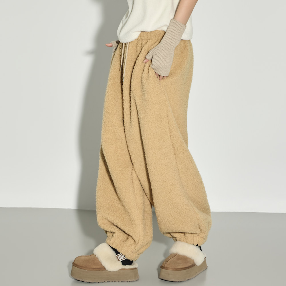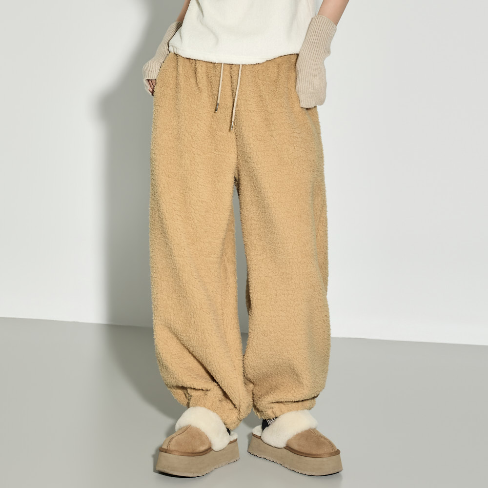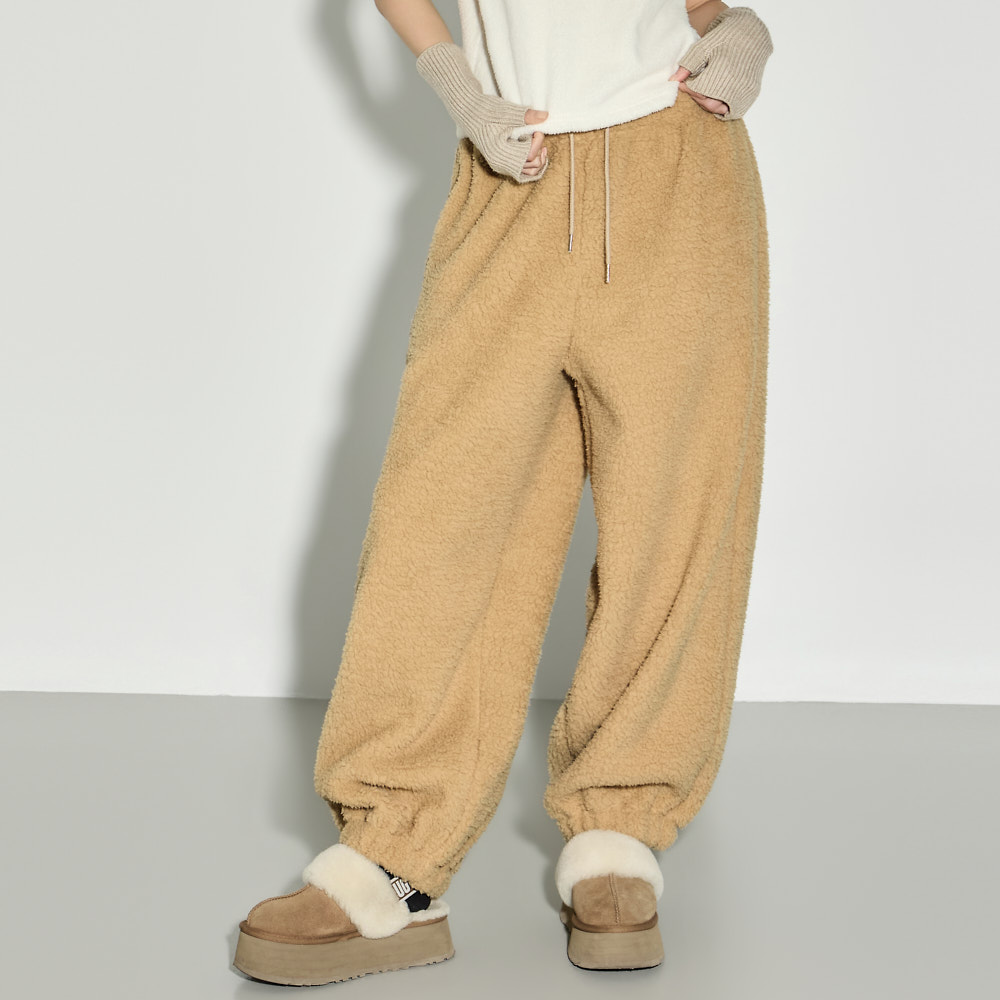 充满温暖休闲氛围的抓绒运动裤。