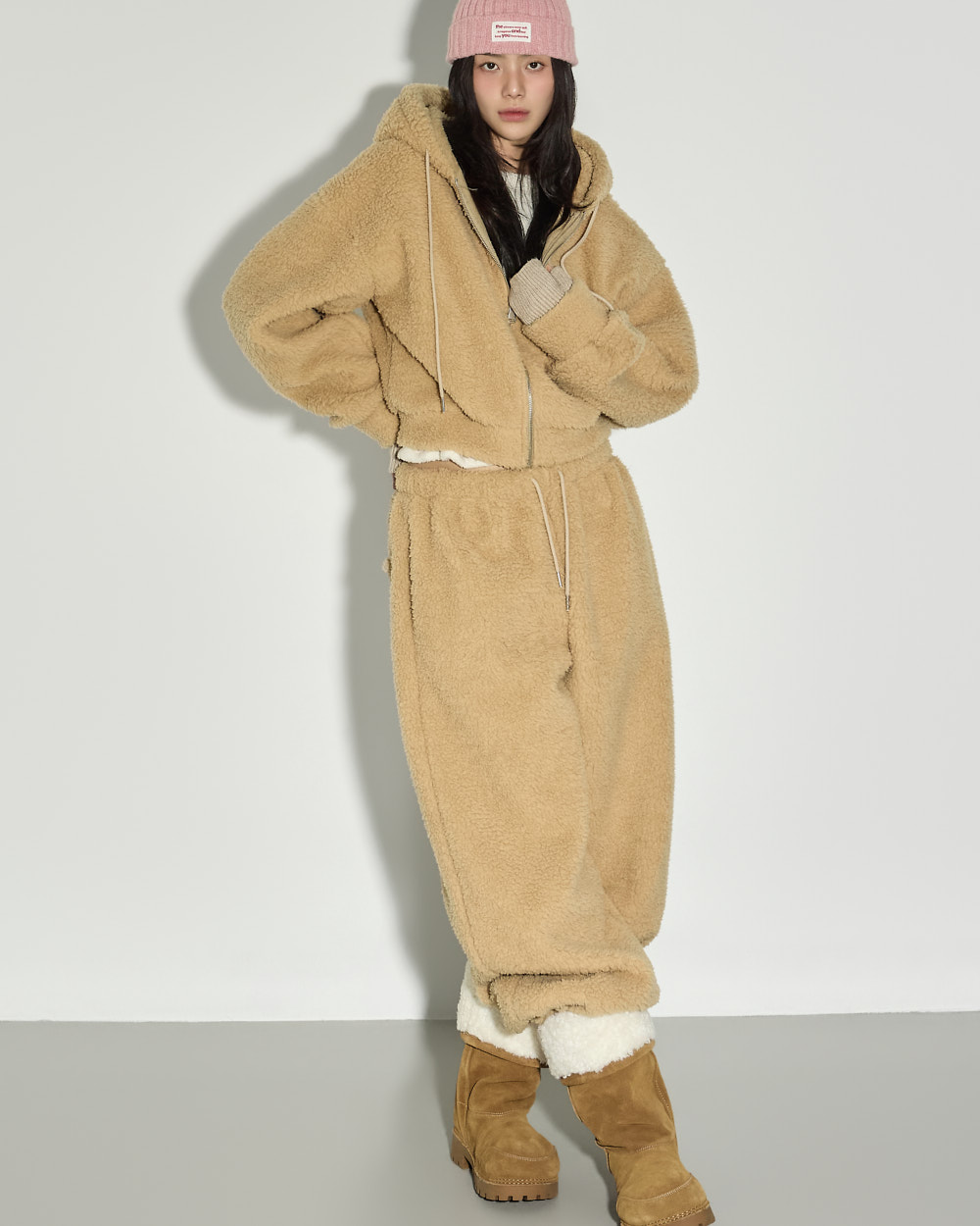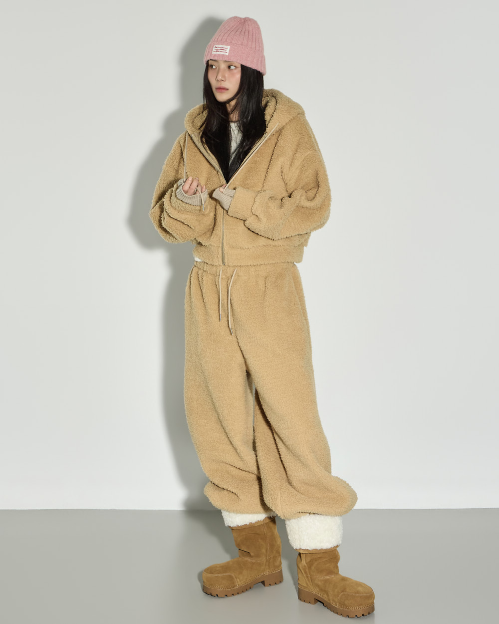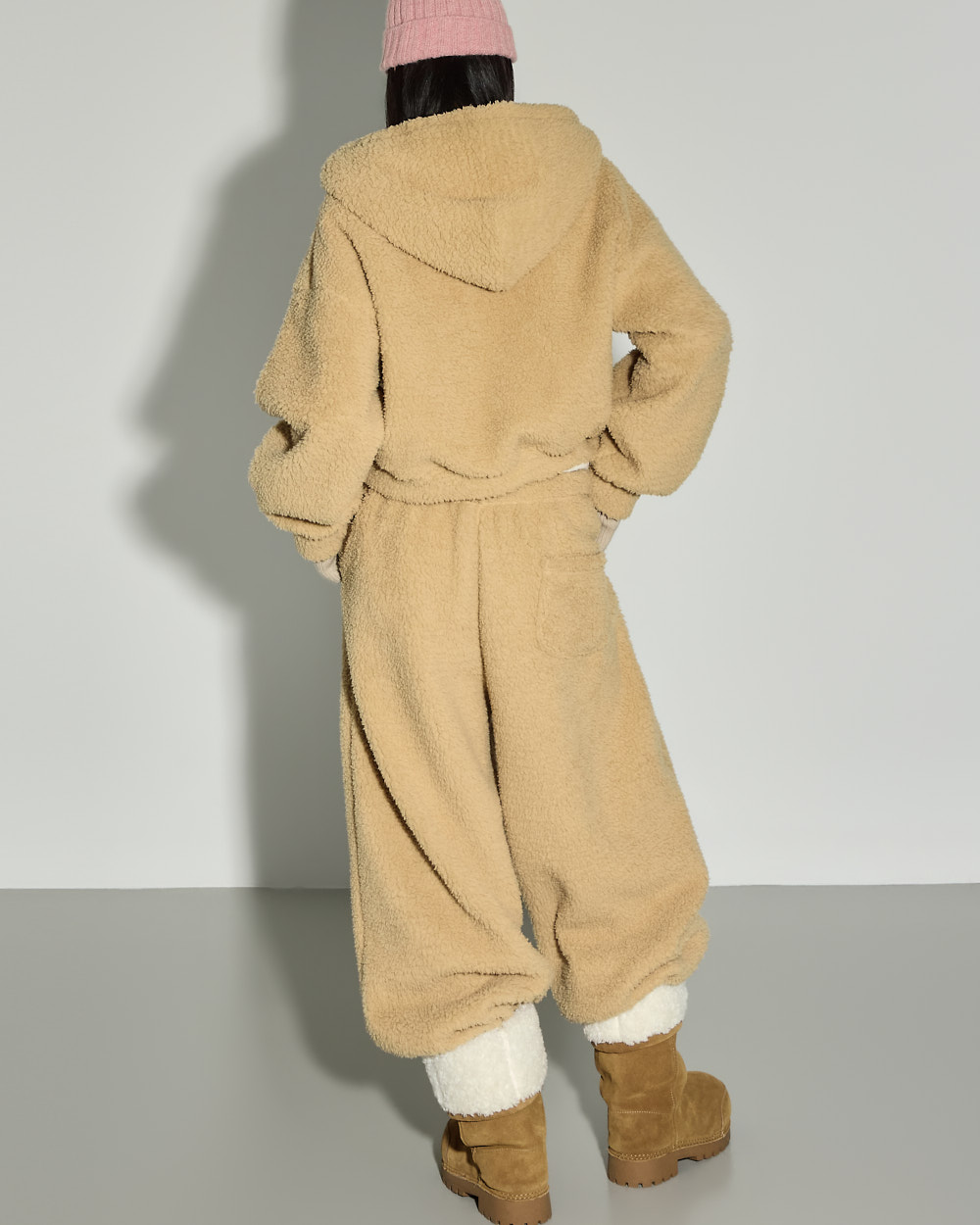 充满温暖休闲氛围的抓绒运动裤。