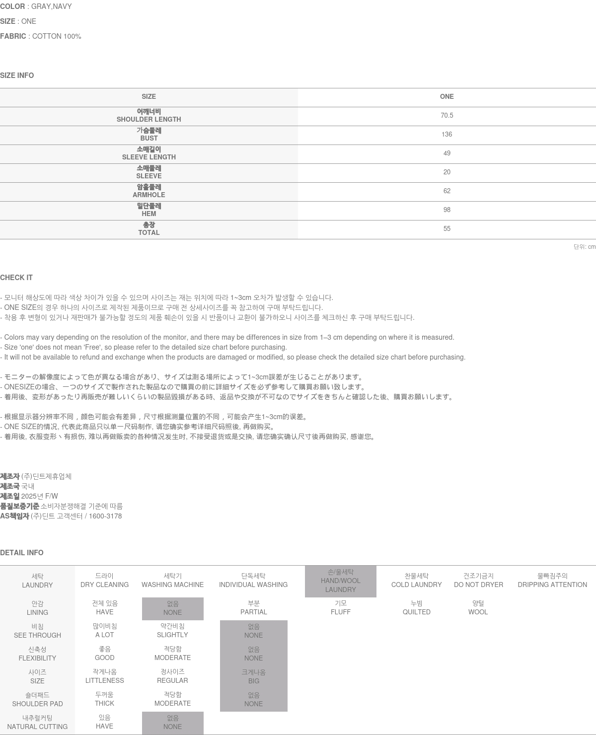 • DINT的所有商品, 使用一般洗滌或是烘乾機, 皆有可能成爲變形或是商品損傷的原因, 建議您使用乾洗.