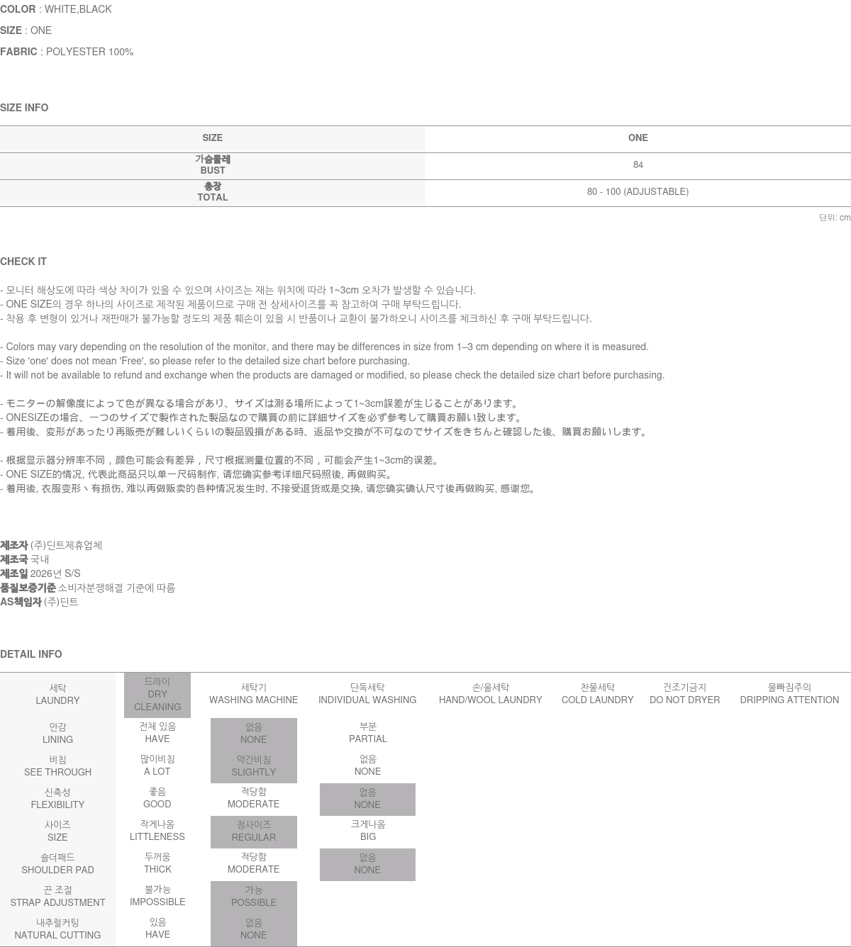 • DINT的所有商品, 使用一般洗滌或是烘乾機, 皆有可能成爲變形或是商品損傷的原因, 建議您使用乾洗.