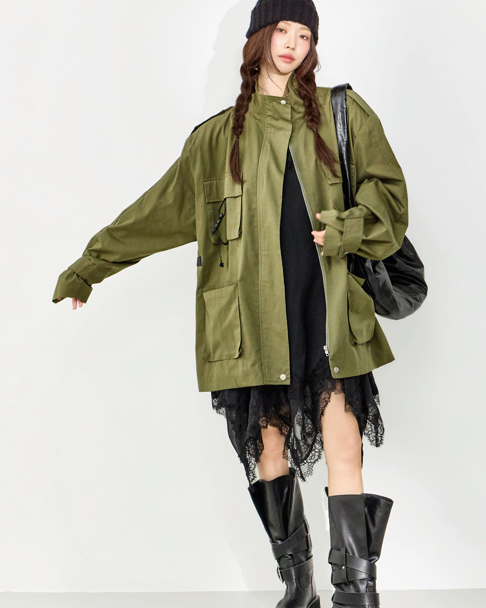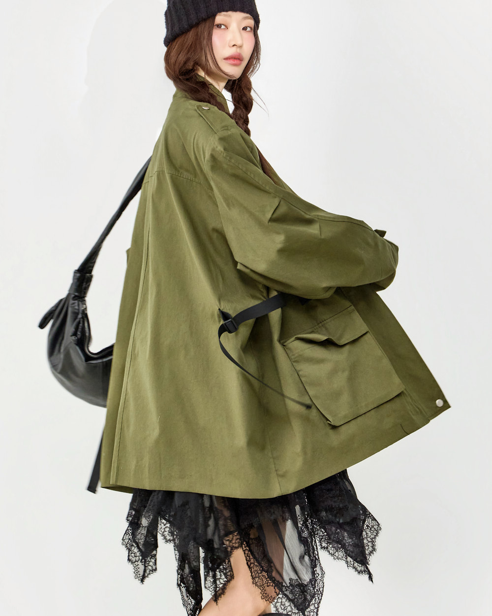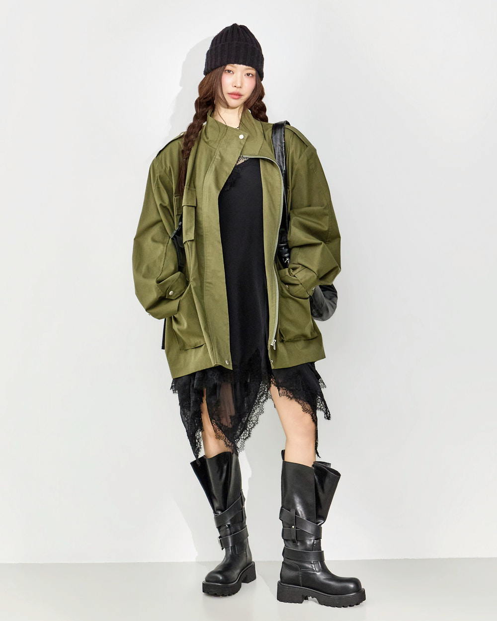 171CM 模特穿着 ONE 尺码,BLACK 颜色。