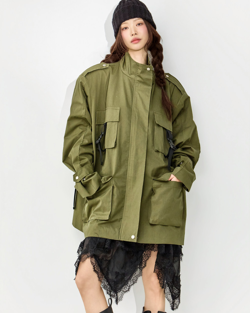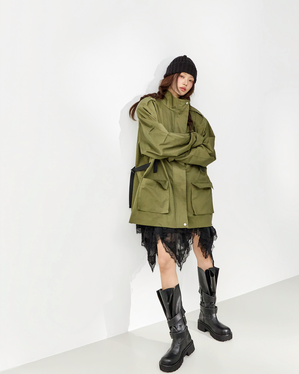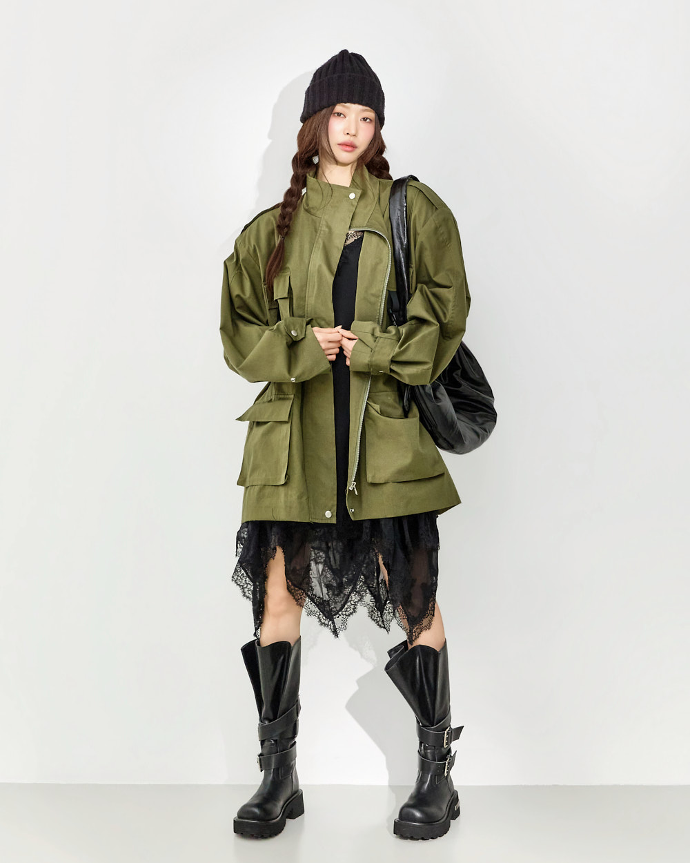 171CM 模特穿着 ONE 尺码,BLACK 颜色。