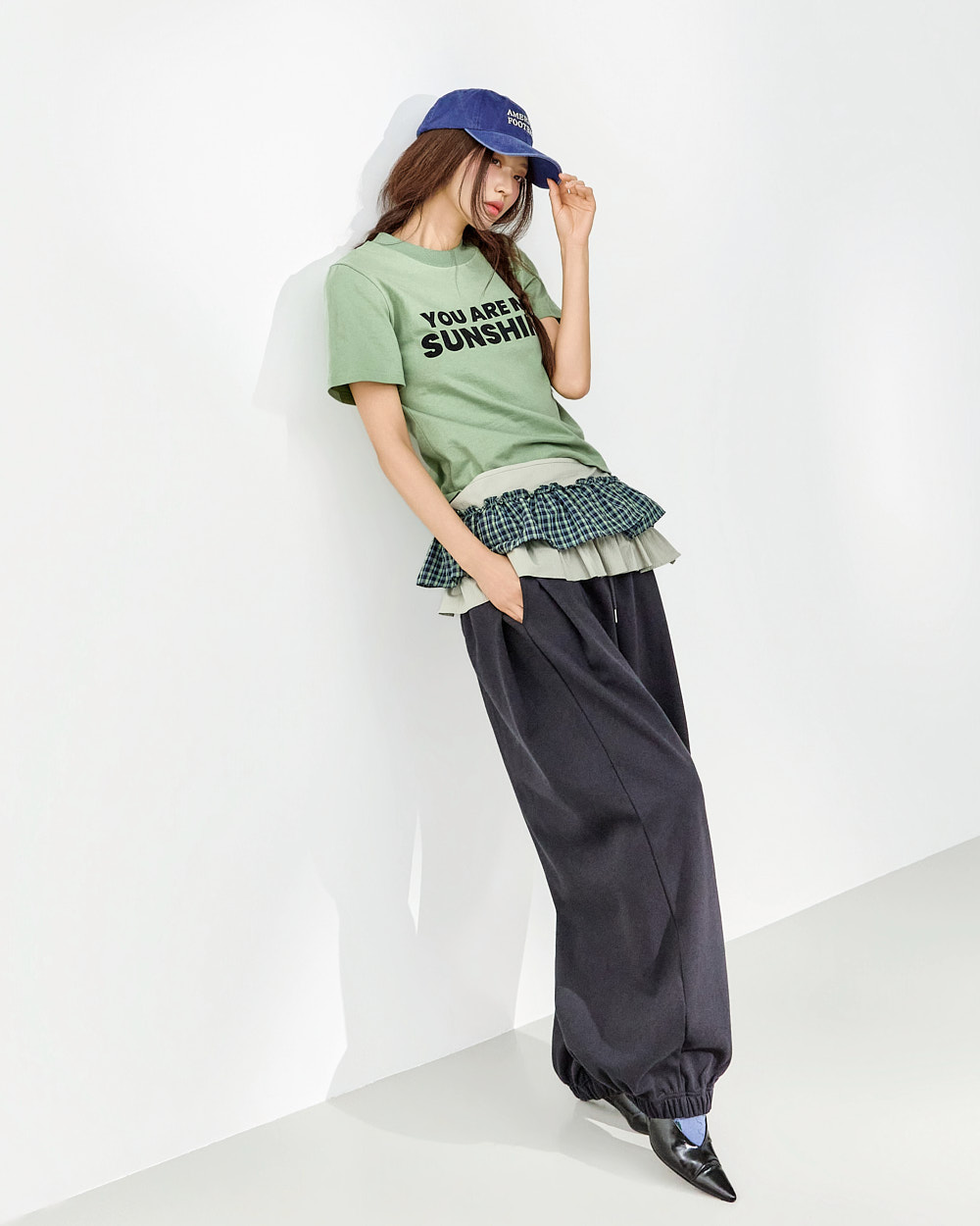 下摆采用松紧带收口设计,打造束脚版型,提升活动便利性。