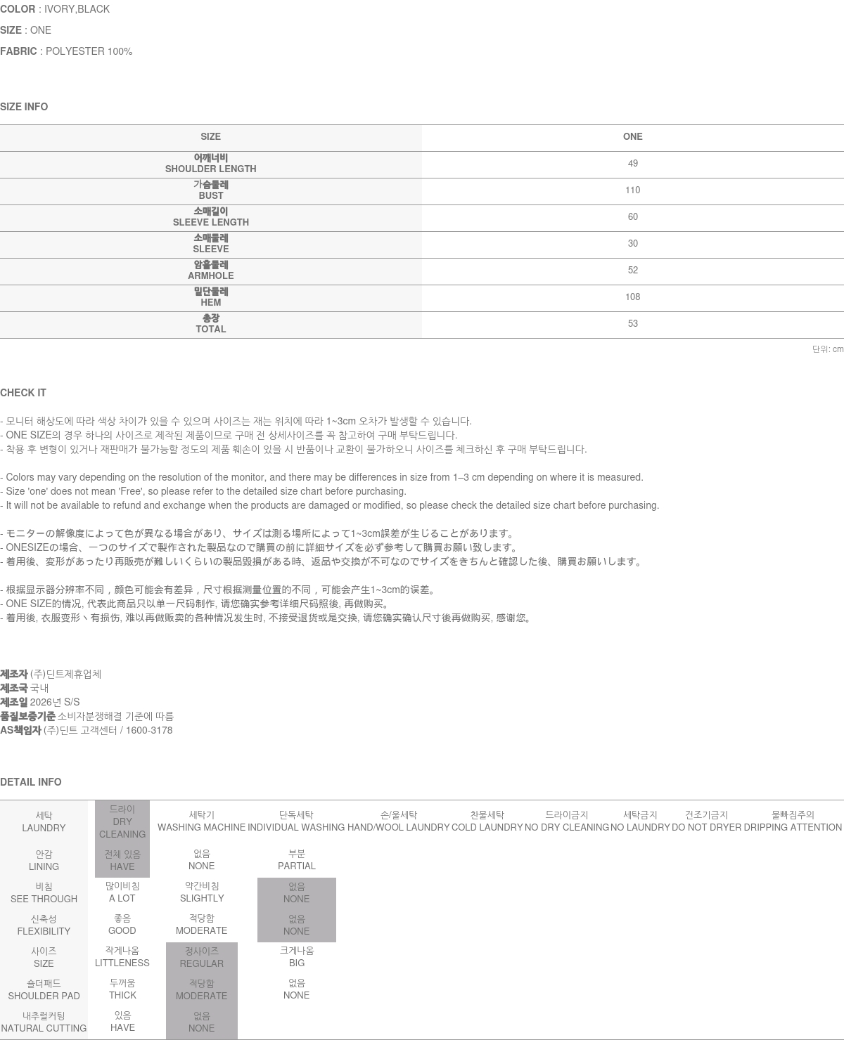 171CM 模特穿着 ONE 尺码,IVORY 颜色。