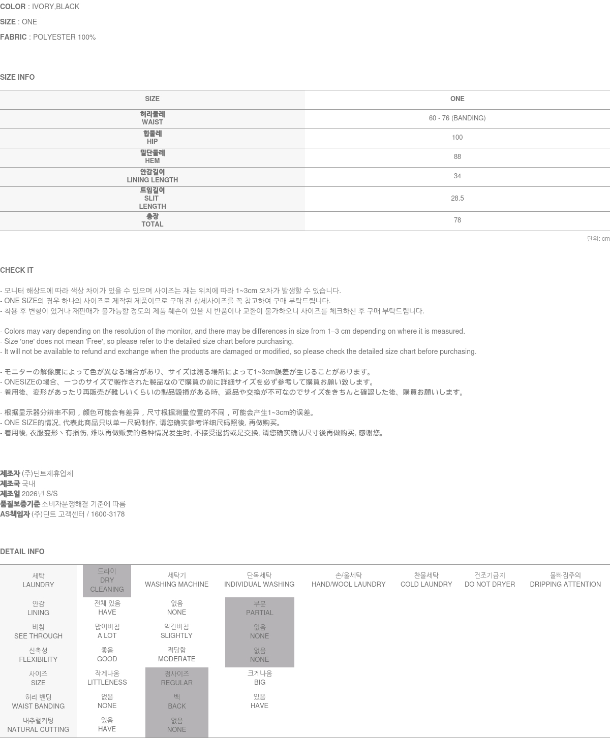 • DINT的所有商品, 使用一般洗滌或是烘乾機, 皆有可能成爲變形或是商品損傷的原因, 建議您使用乾洗.