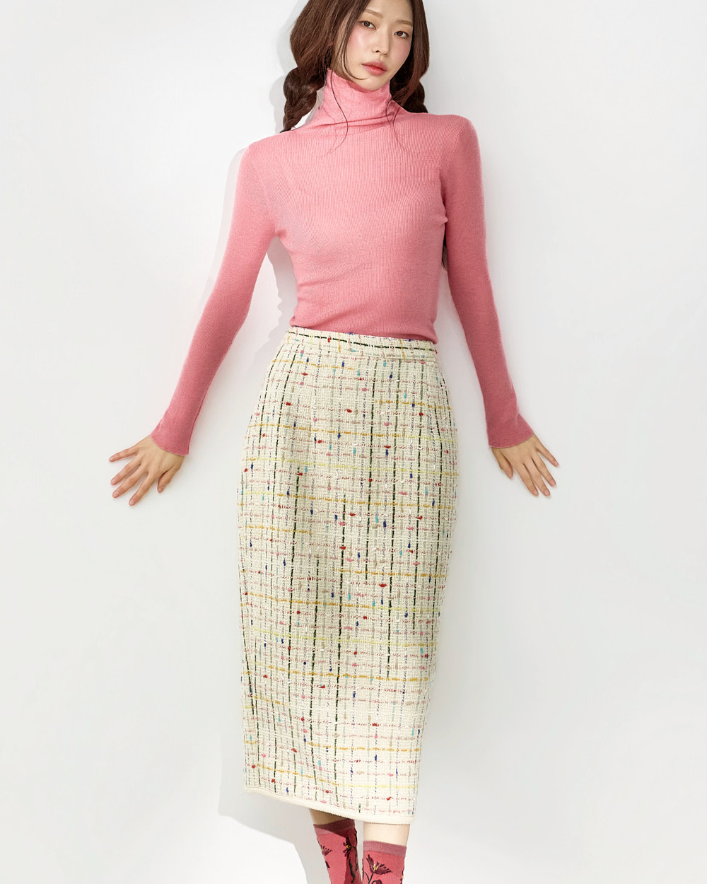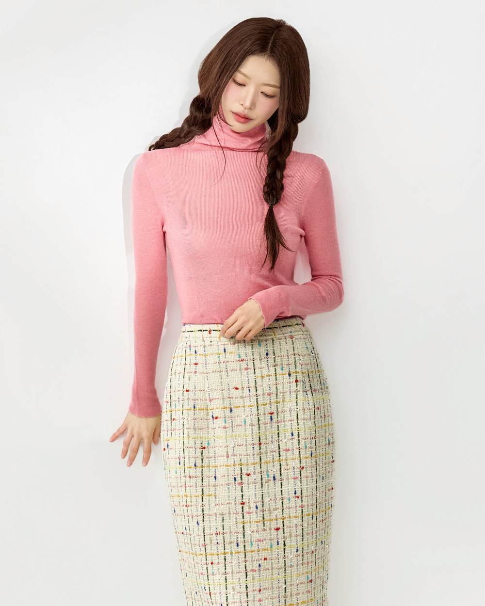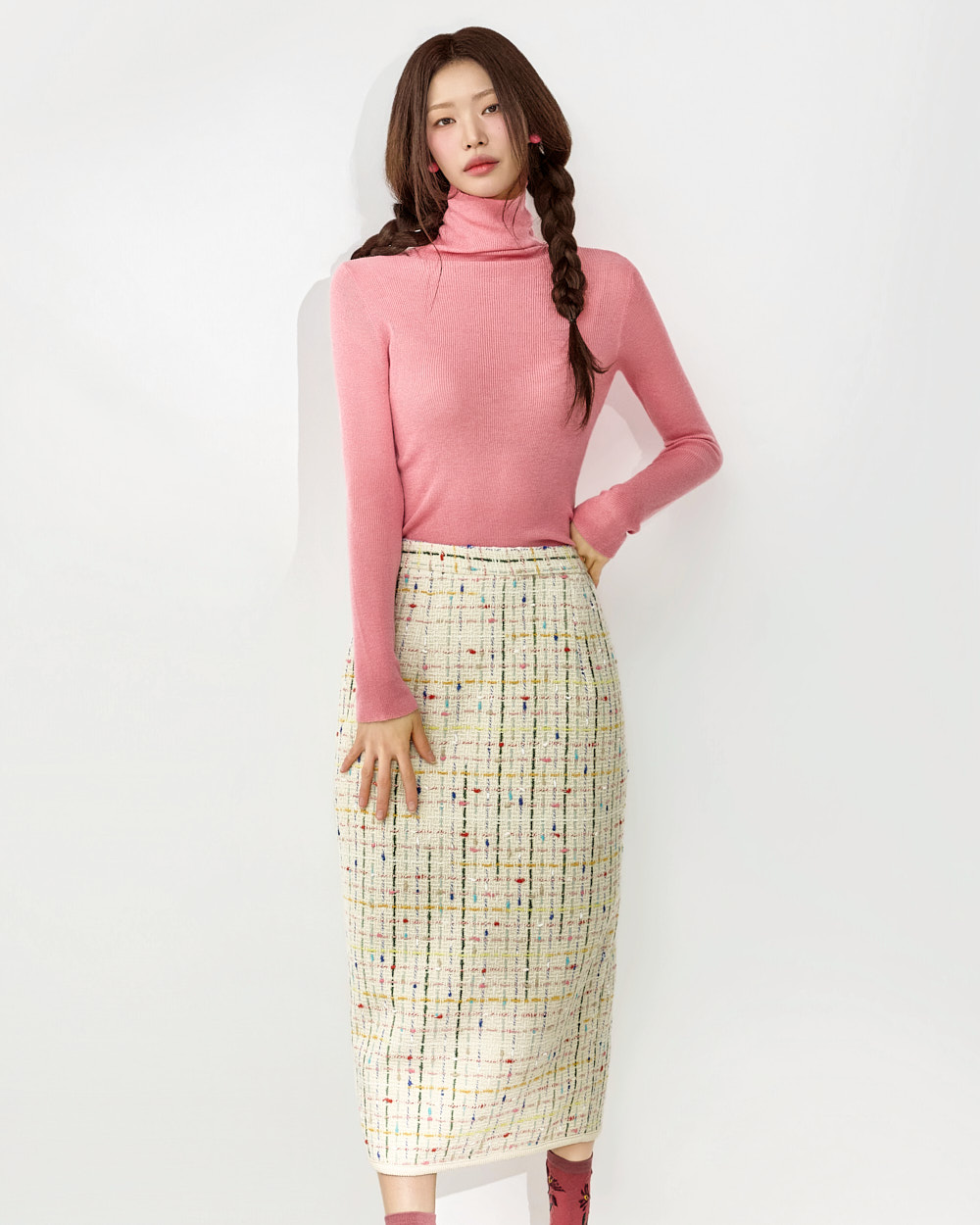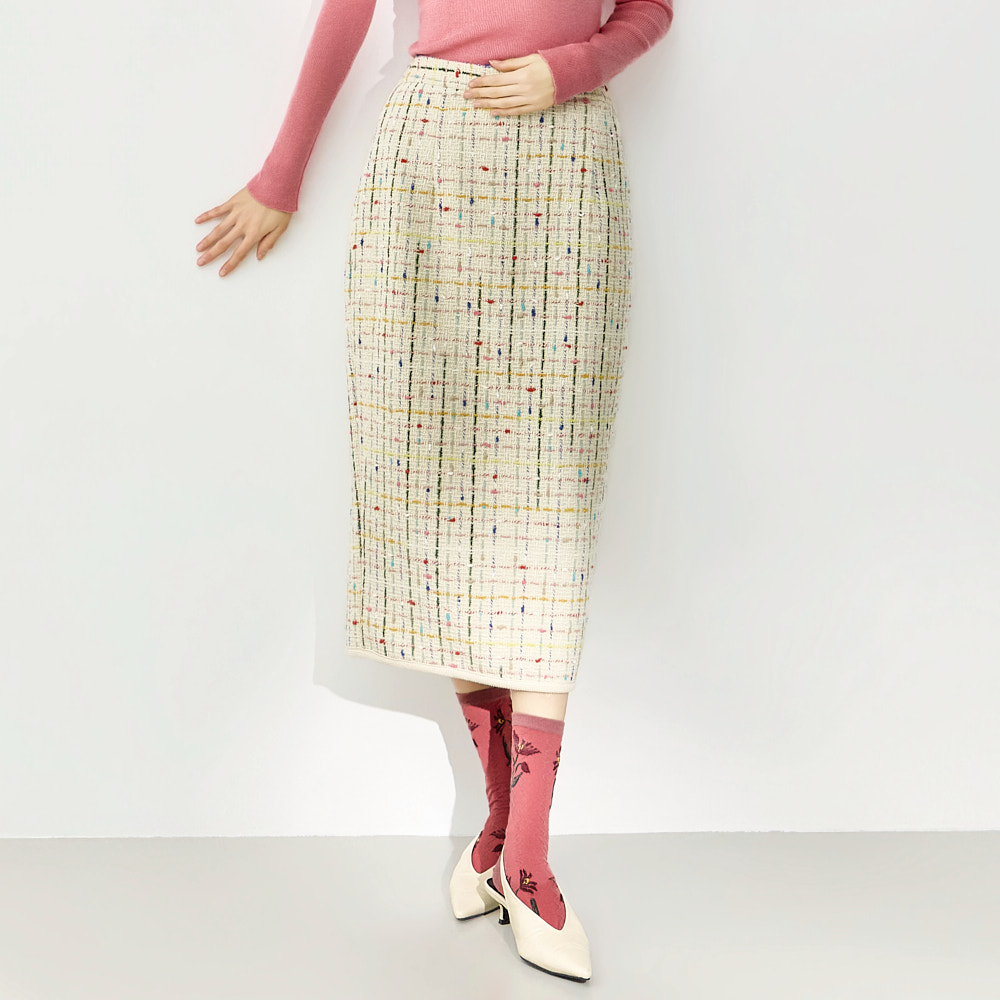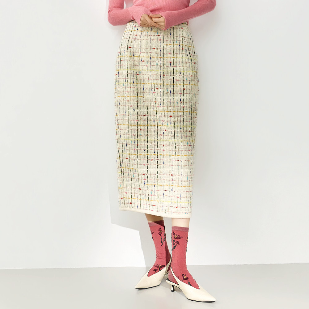 这是一款充满现代休闲氛围的粗花呢半身裙。