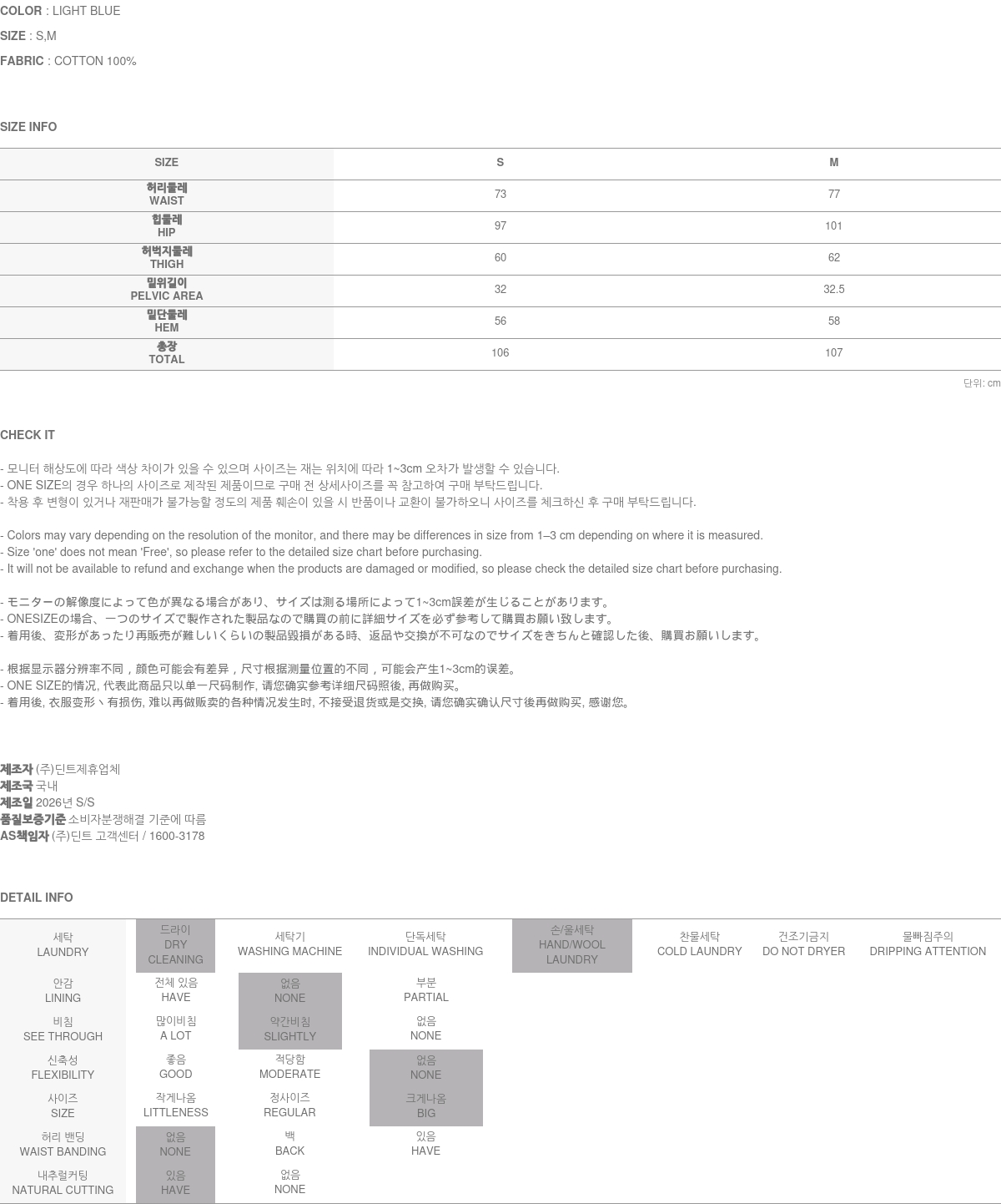 • 丹寧商品的部分, 商品特徵上洗滌時有可能會掉色, 着用時請多加留意.