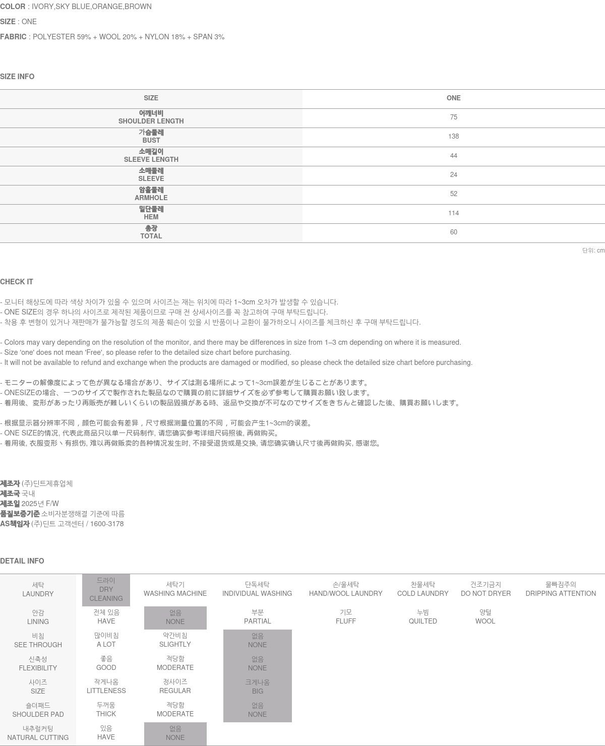 • DINT的所有商品, 使用一般洗滌或是烘乾機, 皆有可能成爲變形或是商品損傷的原因, 建議您使用乾洗.