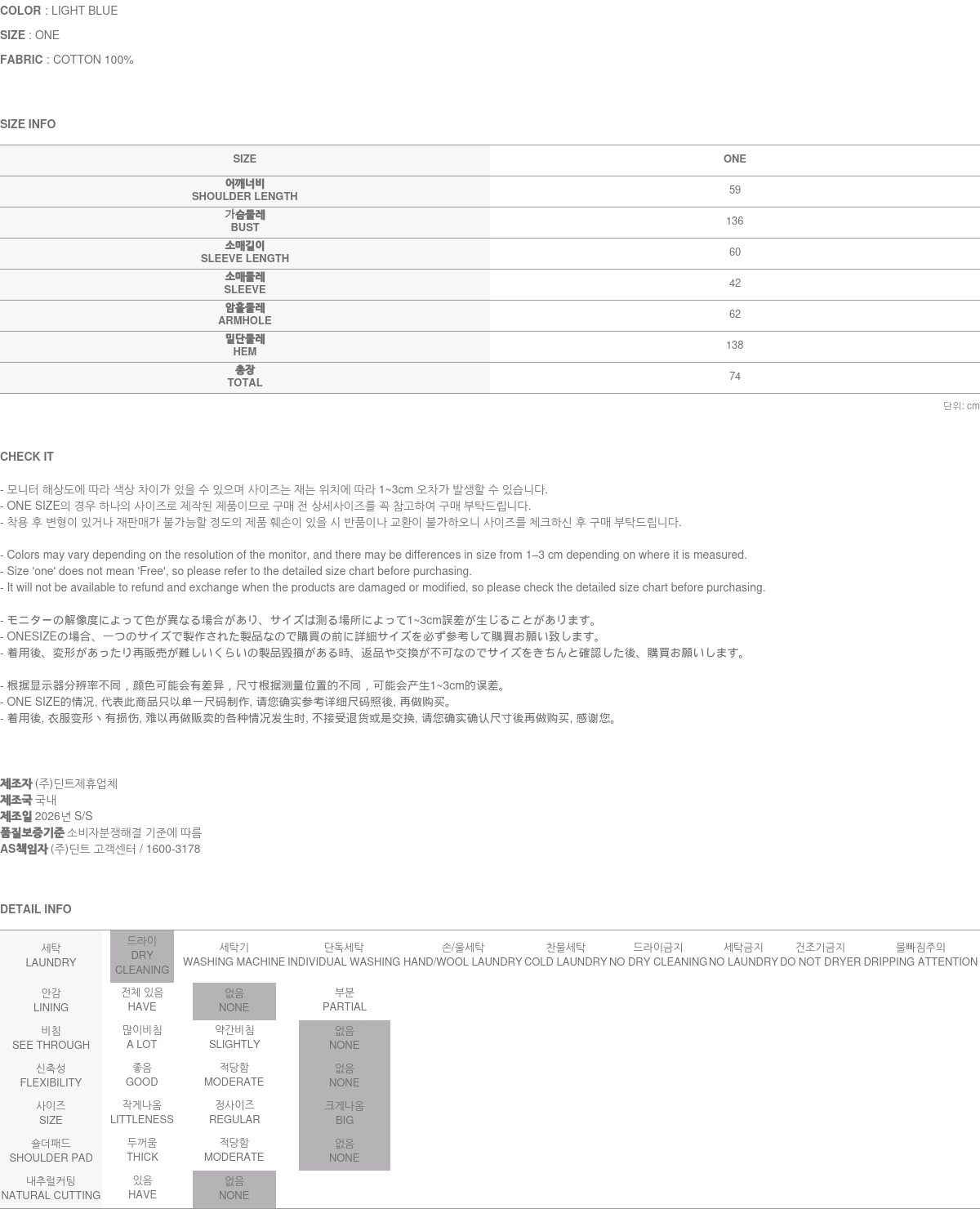 • DINT的所有商品, 使用一般洗滌或是烘乾機, 皆有可能成爲變形或是商品損傷的原因, 建議您使用乾洗.