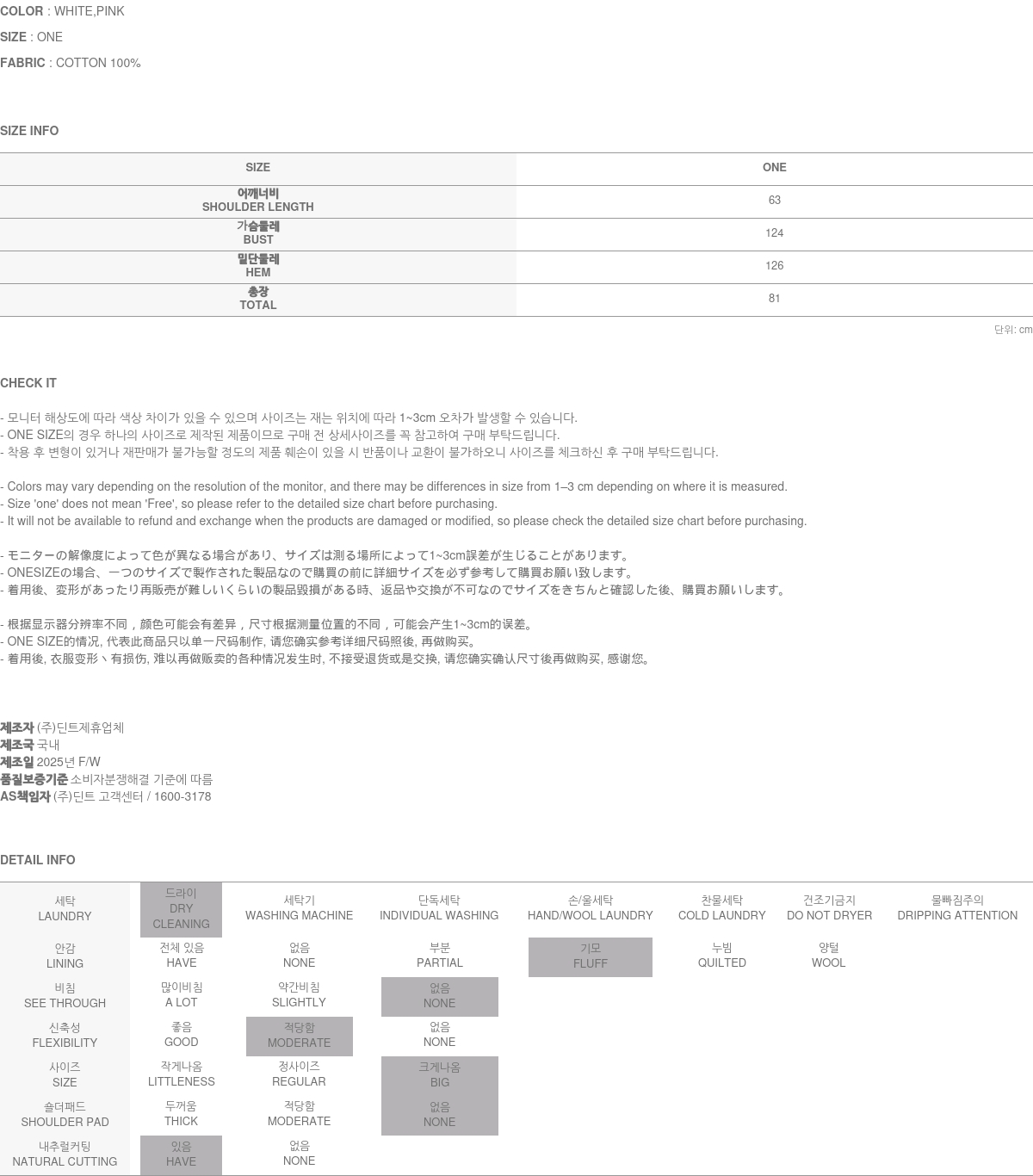 • DINT的所有商品, 使用一般洗滌或是烘乾機, 皆有可能成爲變形或是商品損傷的原因, 建議您使用乾洗.