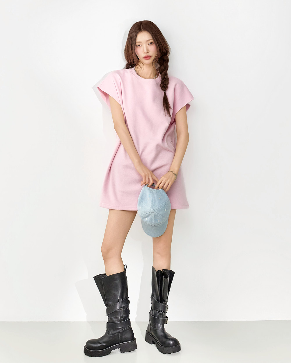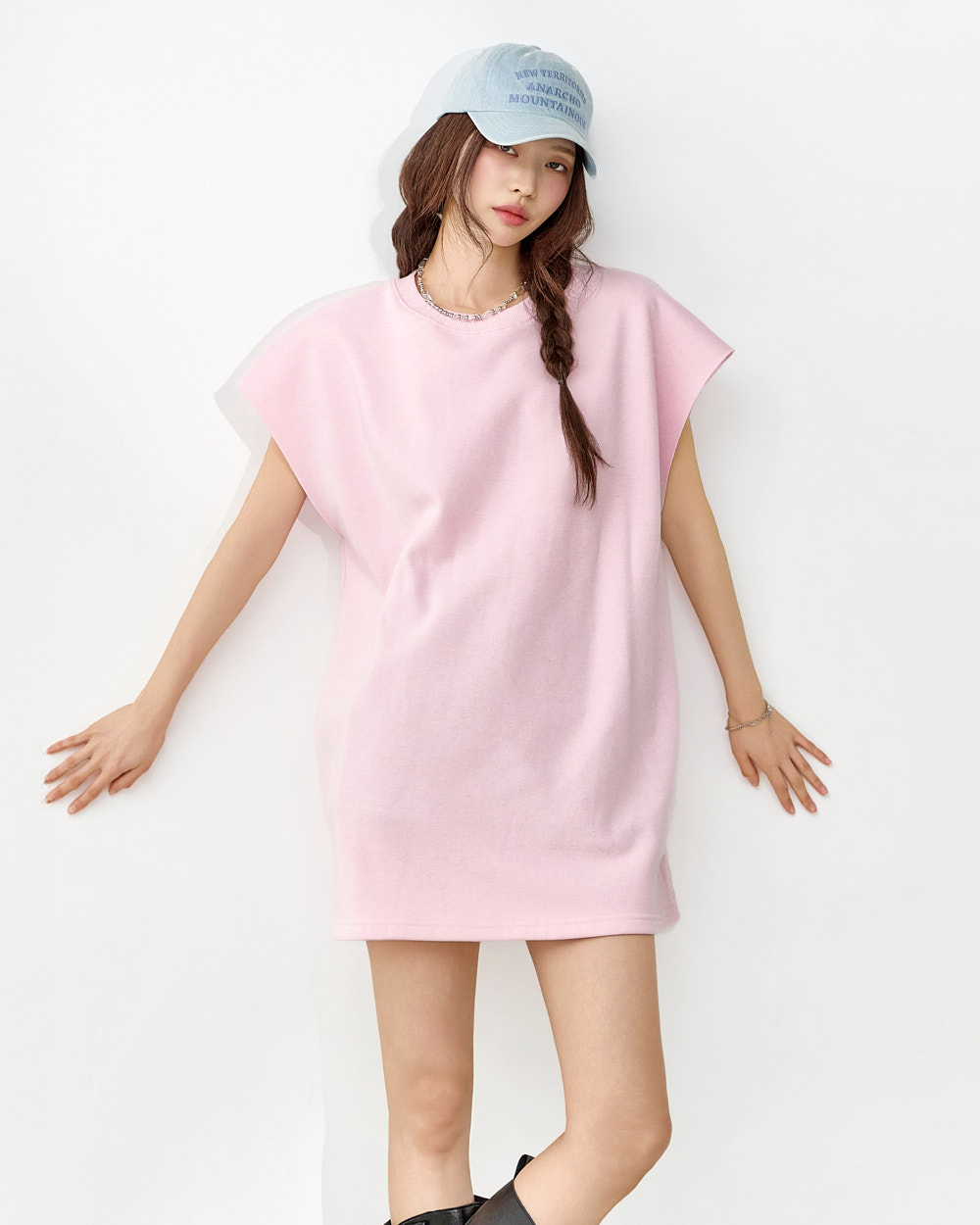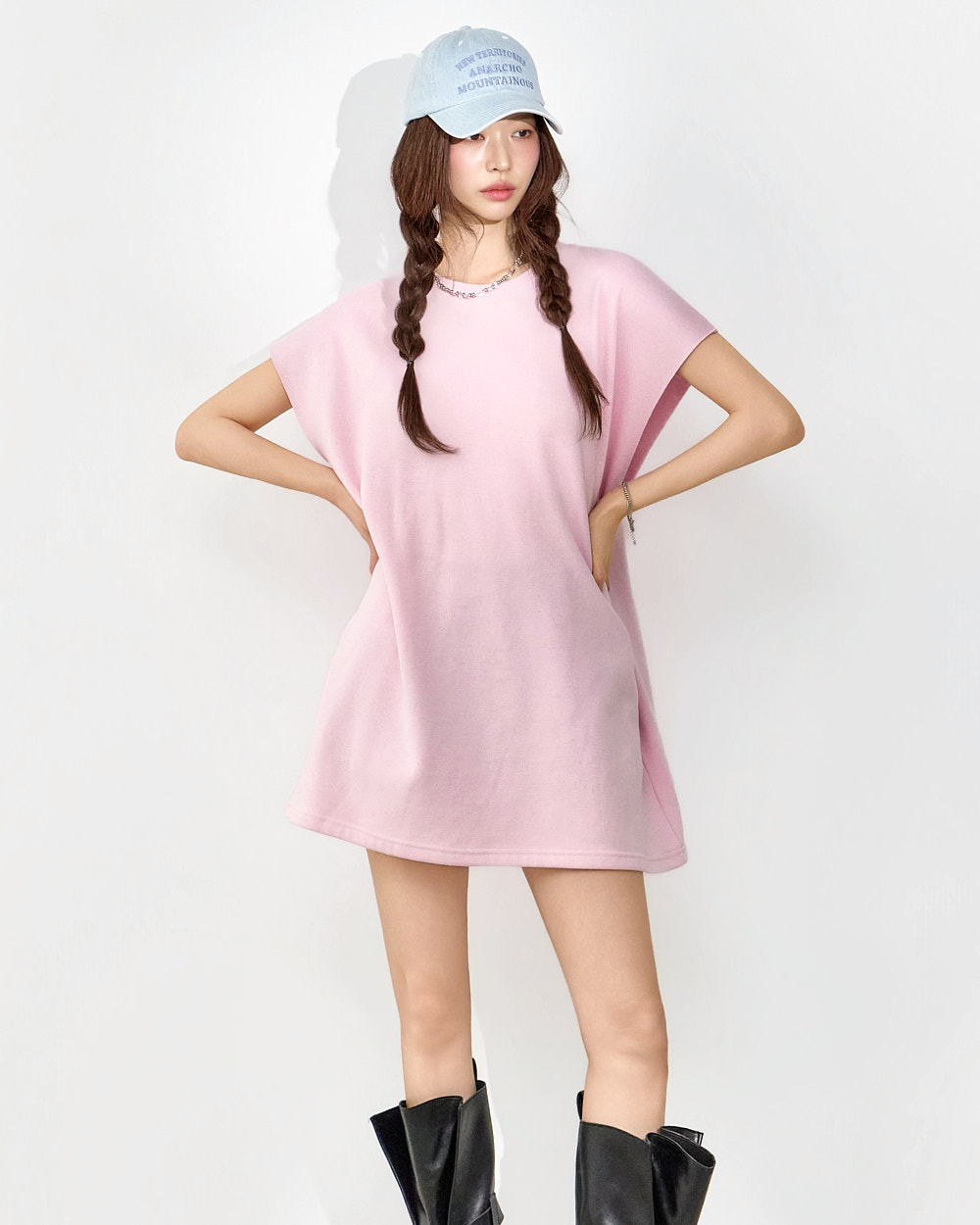171CM 模特穿着 ONE 尺码,粉色。