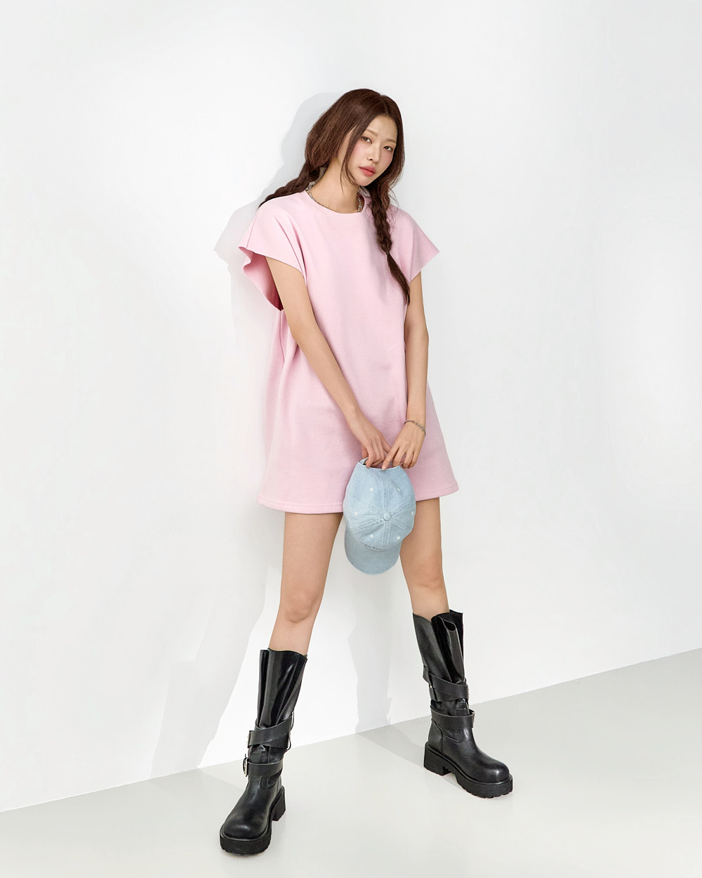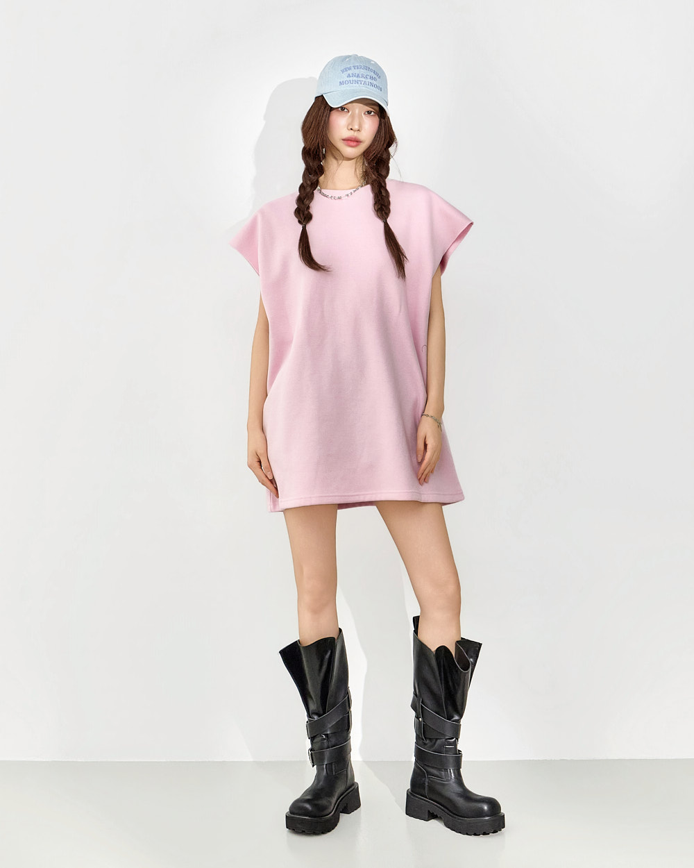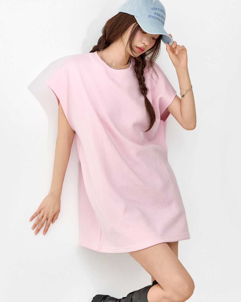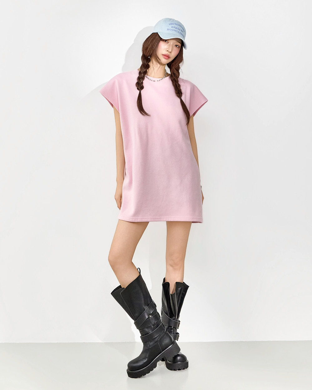 171CM 模特穿着 ONE 尺码,粉色。