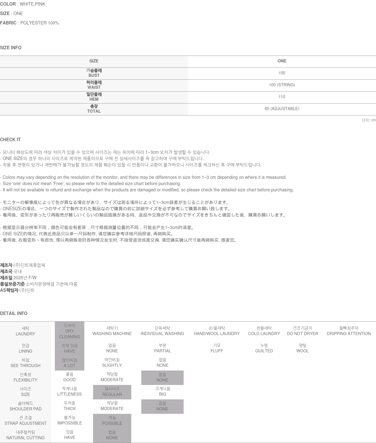 • DINT的所有商品, 使用一般洗滌或是烘乾機, 皆有可能成爲變形或是商品損傷的原因, 建議您使用乾洗.
