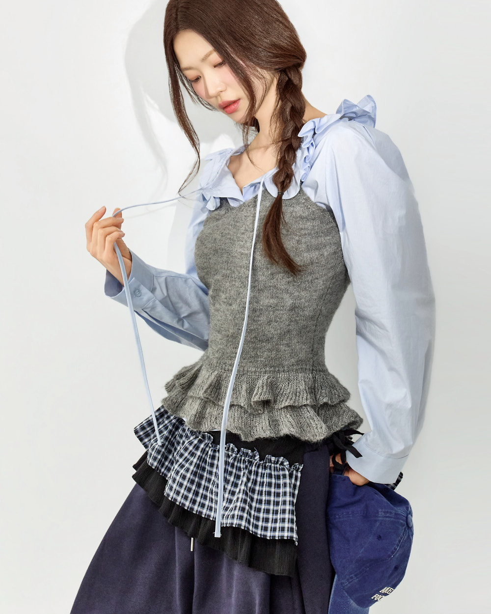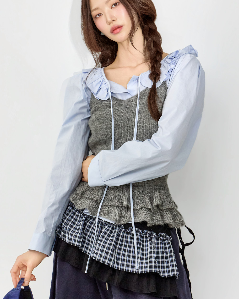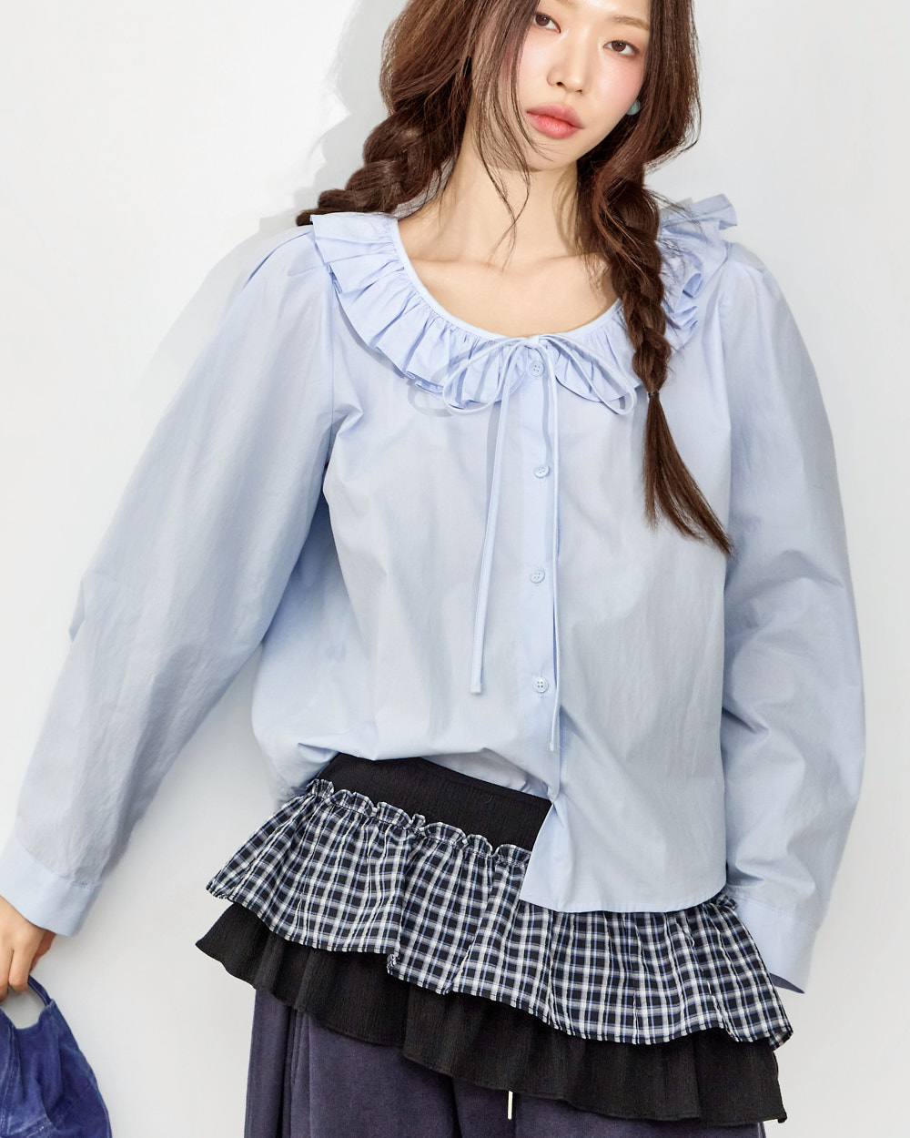 171CM 模特穿着 ONE 尺码,SKY BLUE 颜色。