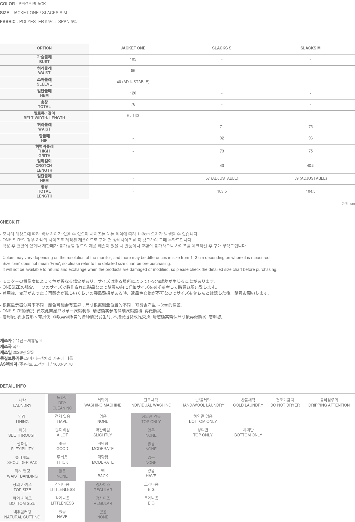 [ SET 할인 구매 상품의 경우 꼭 상,하의를 함께 보내주셔야 교환 및 반품처리가 가능합니다. ]