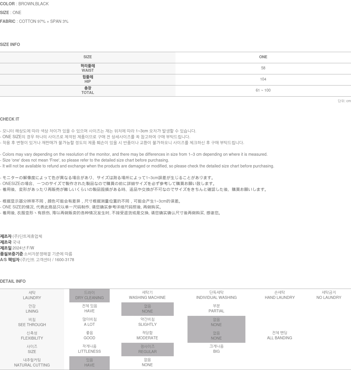 171CM 모델 ONE 사이즈, BROWN 컬러 착용하였습니다.