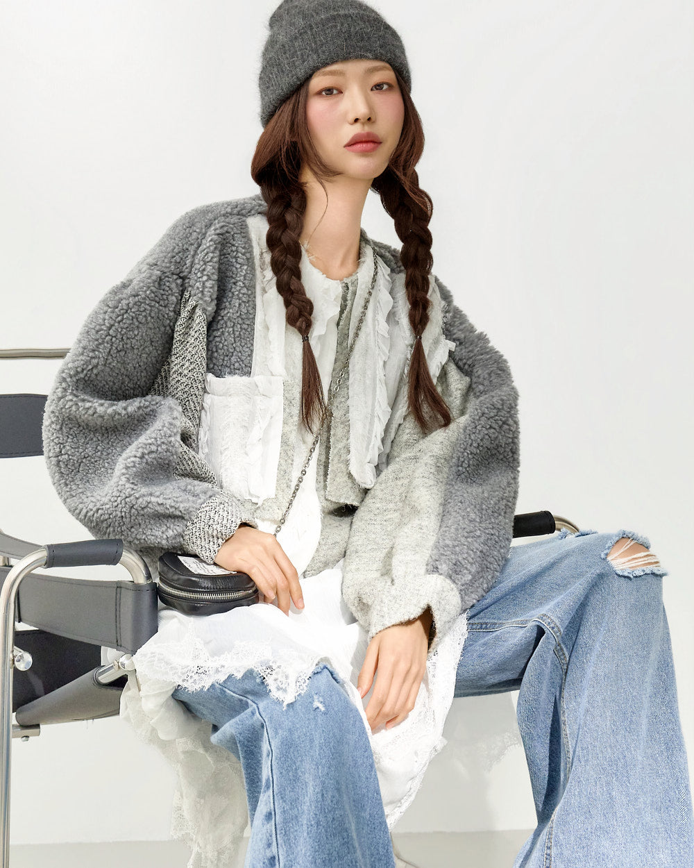 The fabric mix of frill details and knit fabric