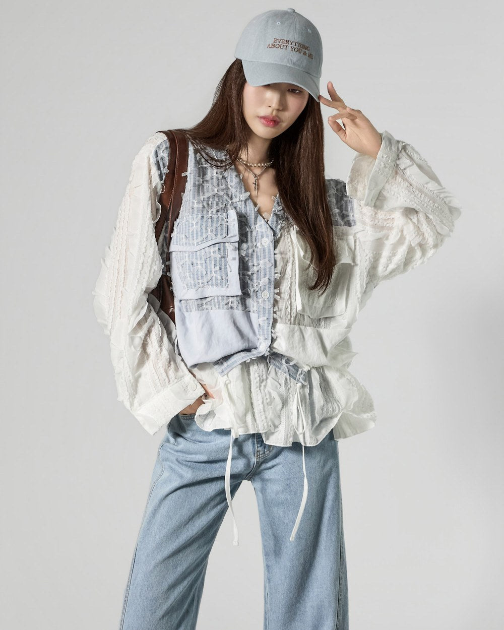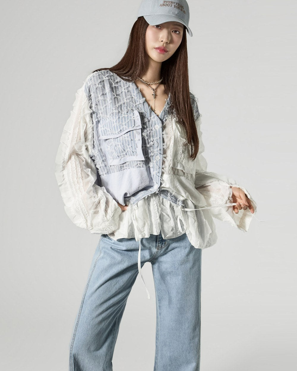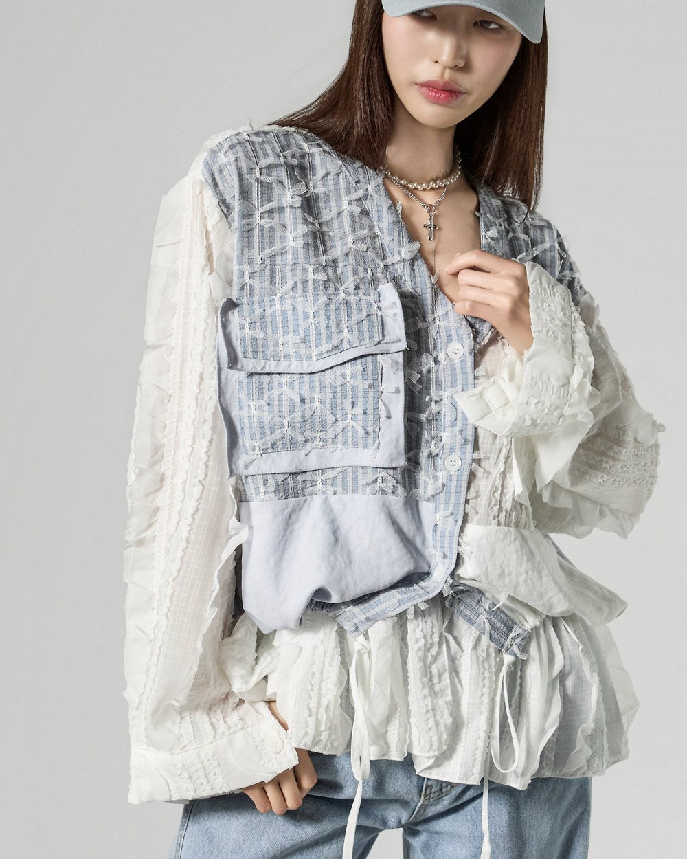 This uniquely designed frilled blouse is perfect for layering,