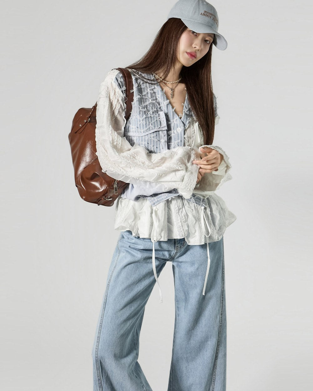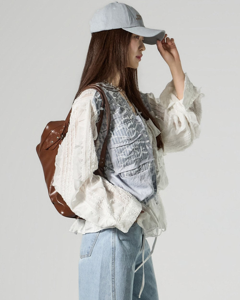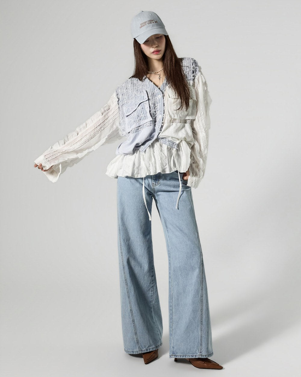 This uniquely designed frilled blouse is perfect for layering,